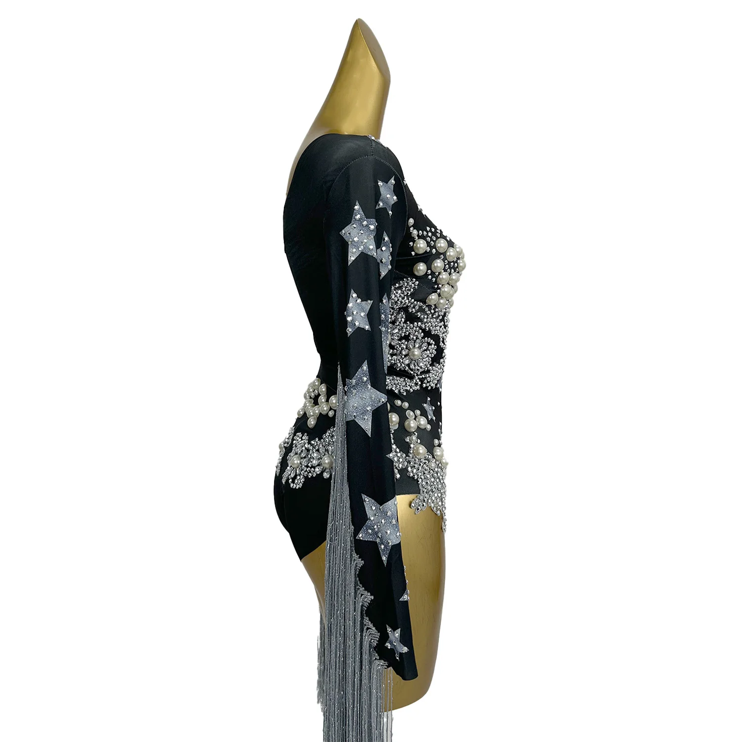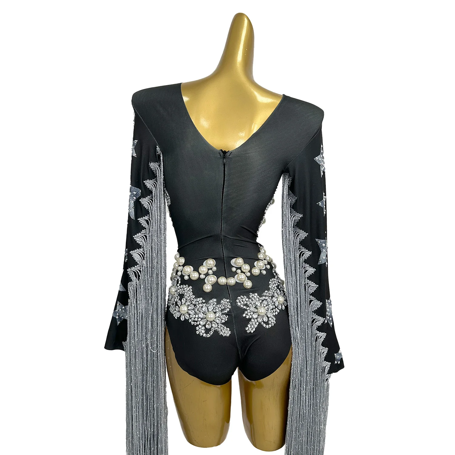 Street Sports Style Jumpsuit Simple Pearl Willow Nail Tassel High Slit Pants Women Beach Swimming Pool Party Dress Starqun