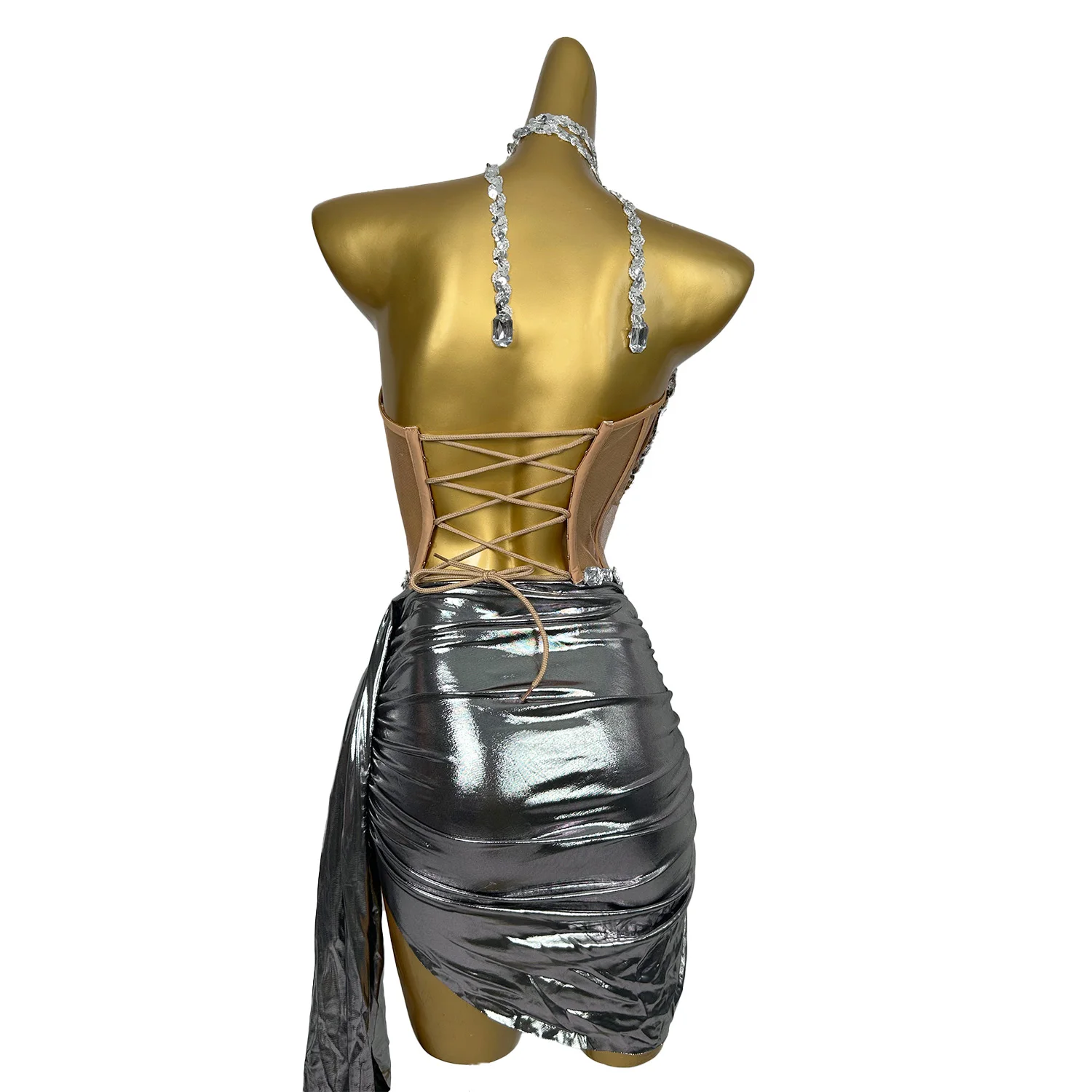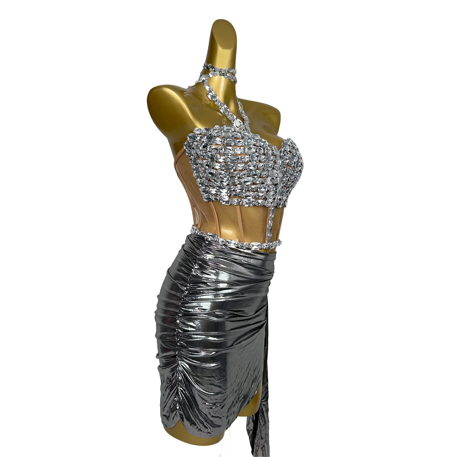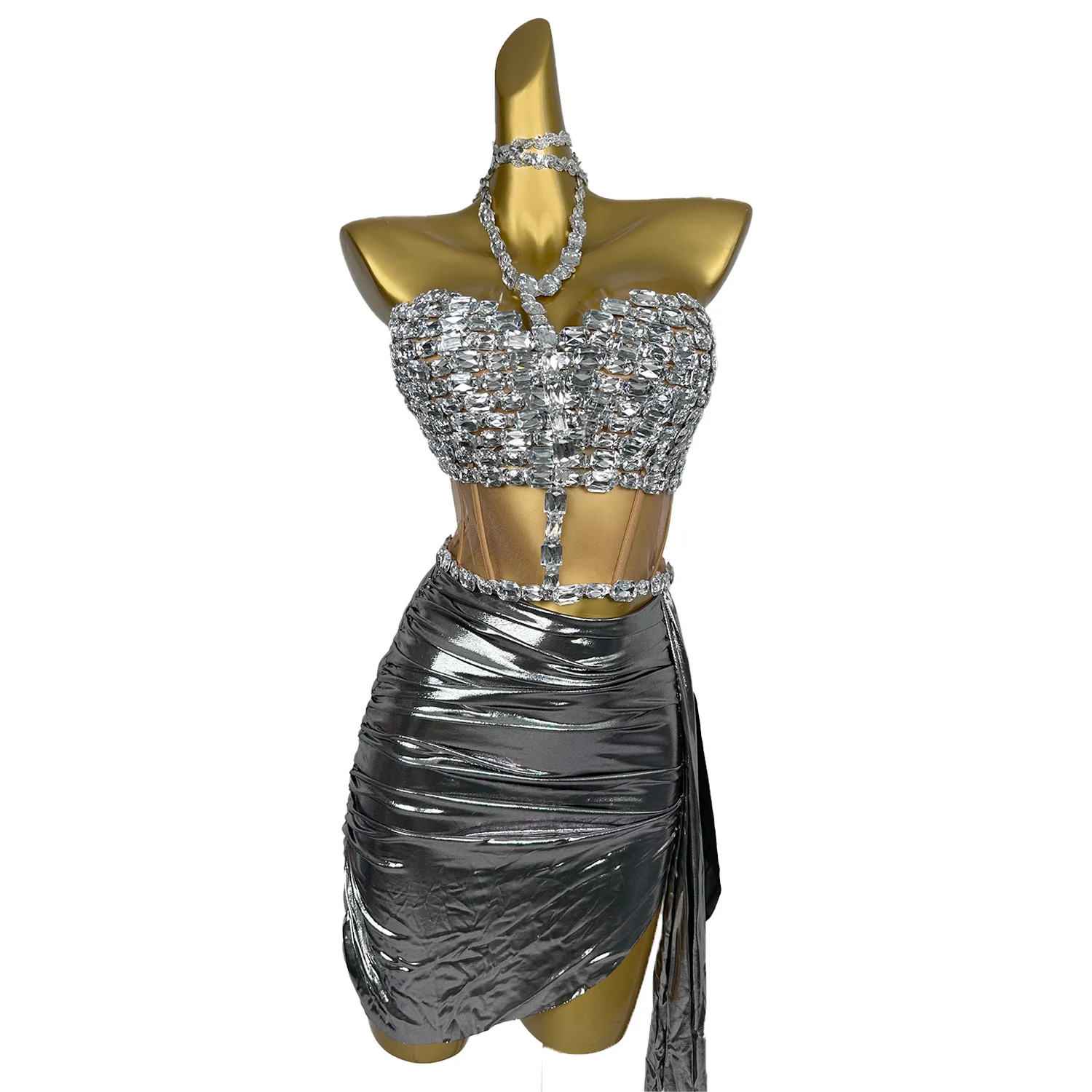 Stunning Dress Set for Women Crystals Stage Wear Dancer Las Vegas Showgirl Drag Queen Outfit Night Clubbing Props Zhuantou