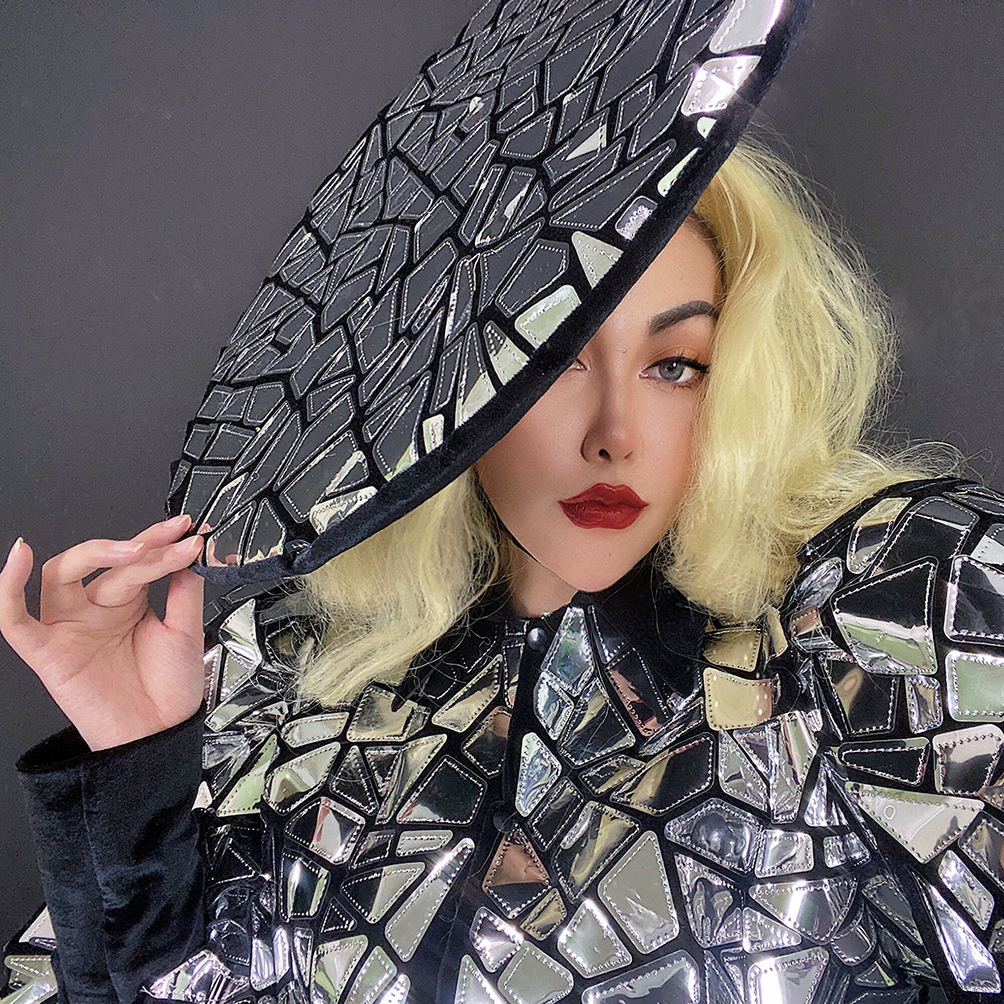 Style Silver Mirror Jacket Short Cap Birthday Celebrate Bar Outfit Set Women Dancer Show Evening Stage Wear YOUDU
