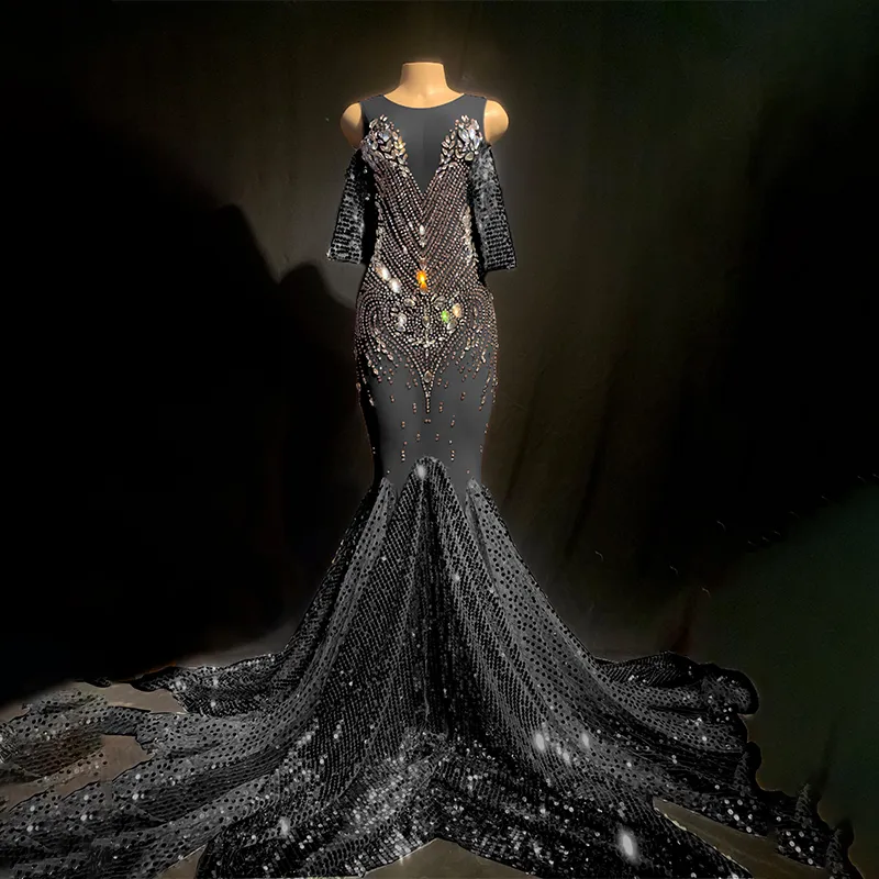 Summer Dress Fashion Long Sparkly Sequined Crystal Formal Evening Dresses Black Luxury Mermaid Elegant Party Dresses for Women