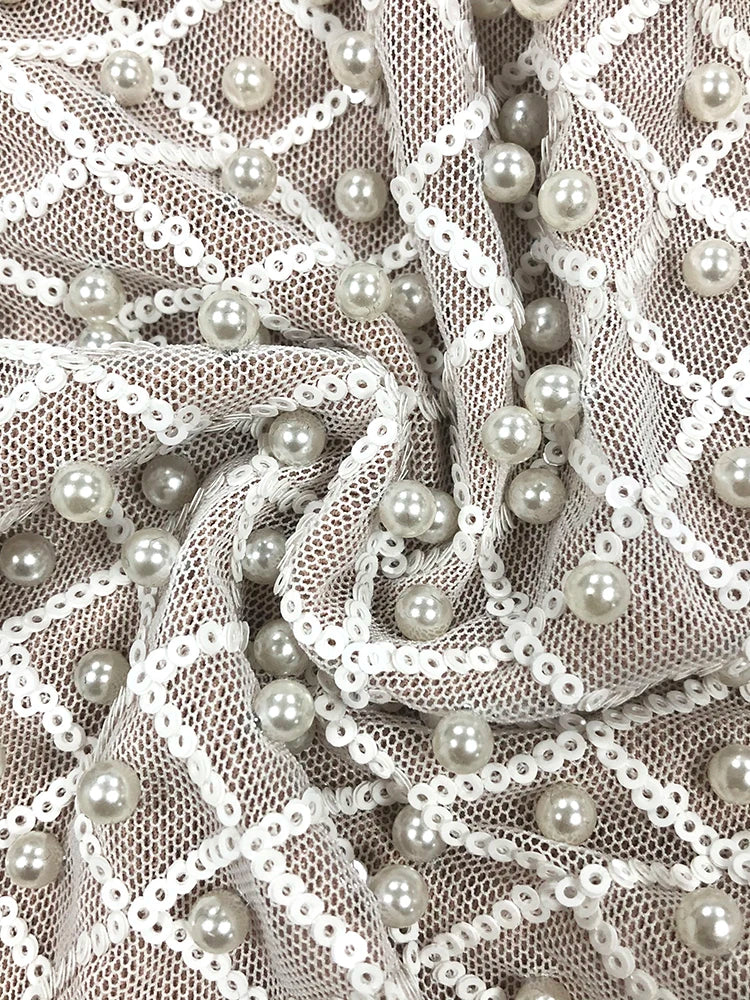 Pearl Sequins Hollow Out Short Dress For Women Sexy Long Sleeve Key Hole Bow Tie Diamond Beige Mini Evening Party Dress