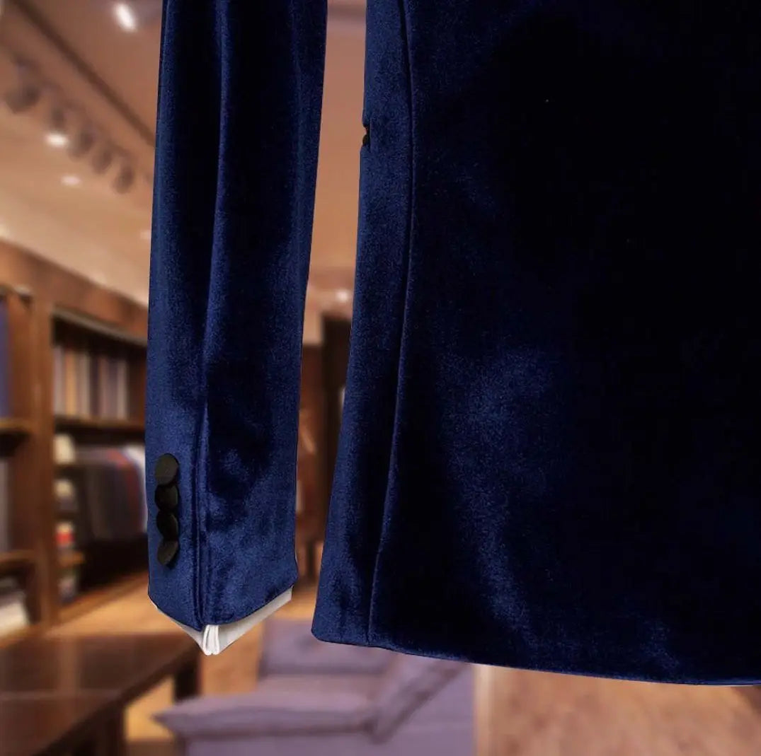 Enhance your formal attire with this velvet blazer and vest 2-piece men's suit featuring a satin sheer lapel and one-button closure. Perfect for formal parties, work events, proms, weddings, and groom attire, this suit exudes sophistication and style. Available in slim and plus sizes, the tailored fit ensures a polished and refined look for any special occasion.