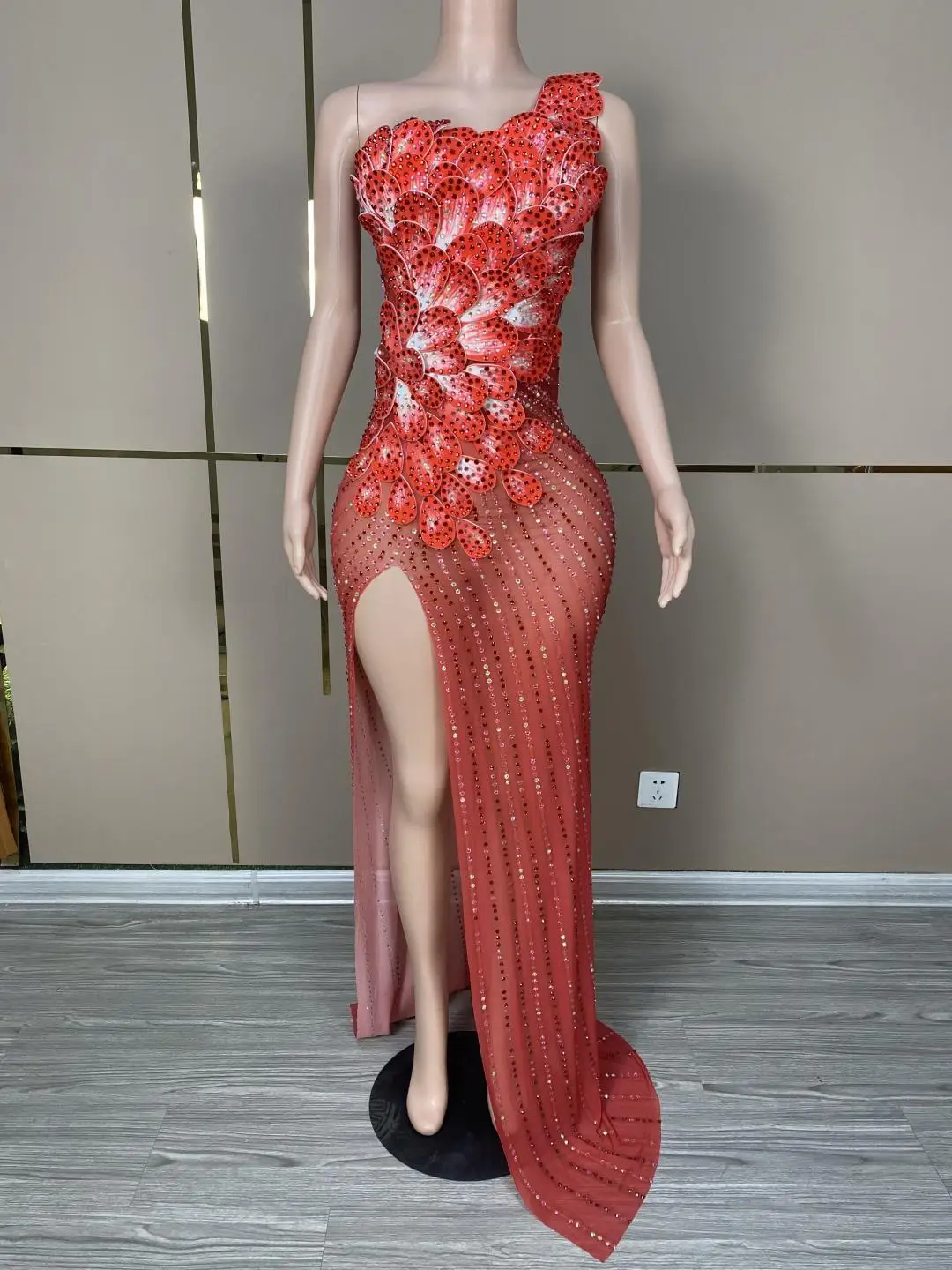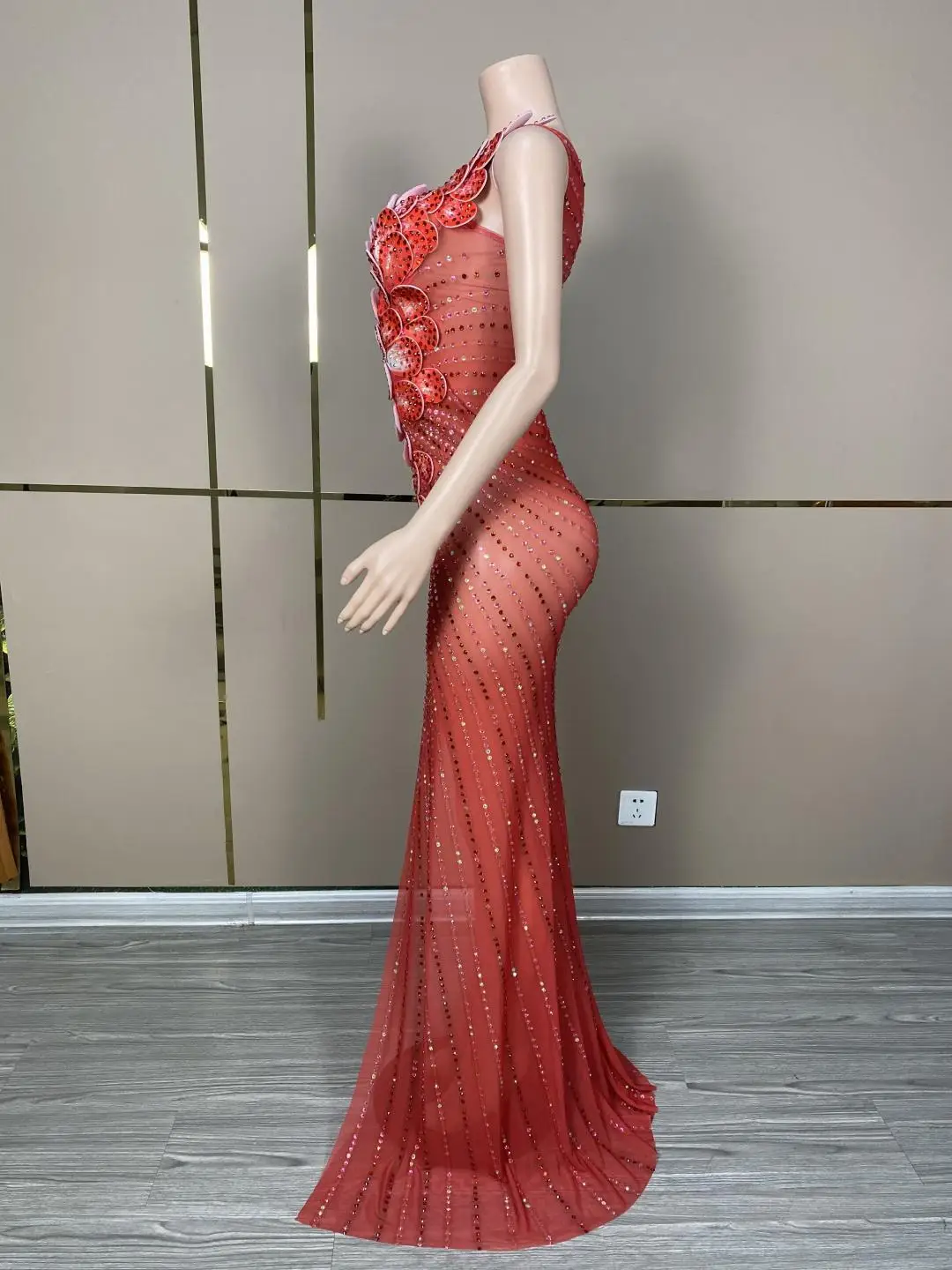 Vestido Rhinestone Flower Ball Gown Sexy Wedding Night Party Dress Banquet Long Dress Women Mermaid Prom Evening Dresses Huaban