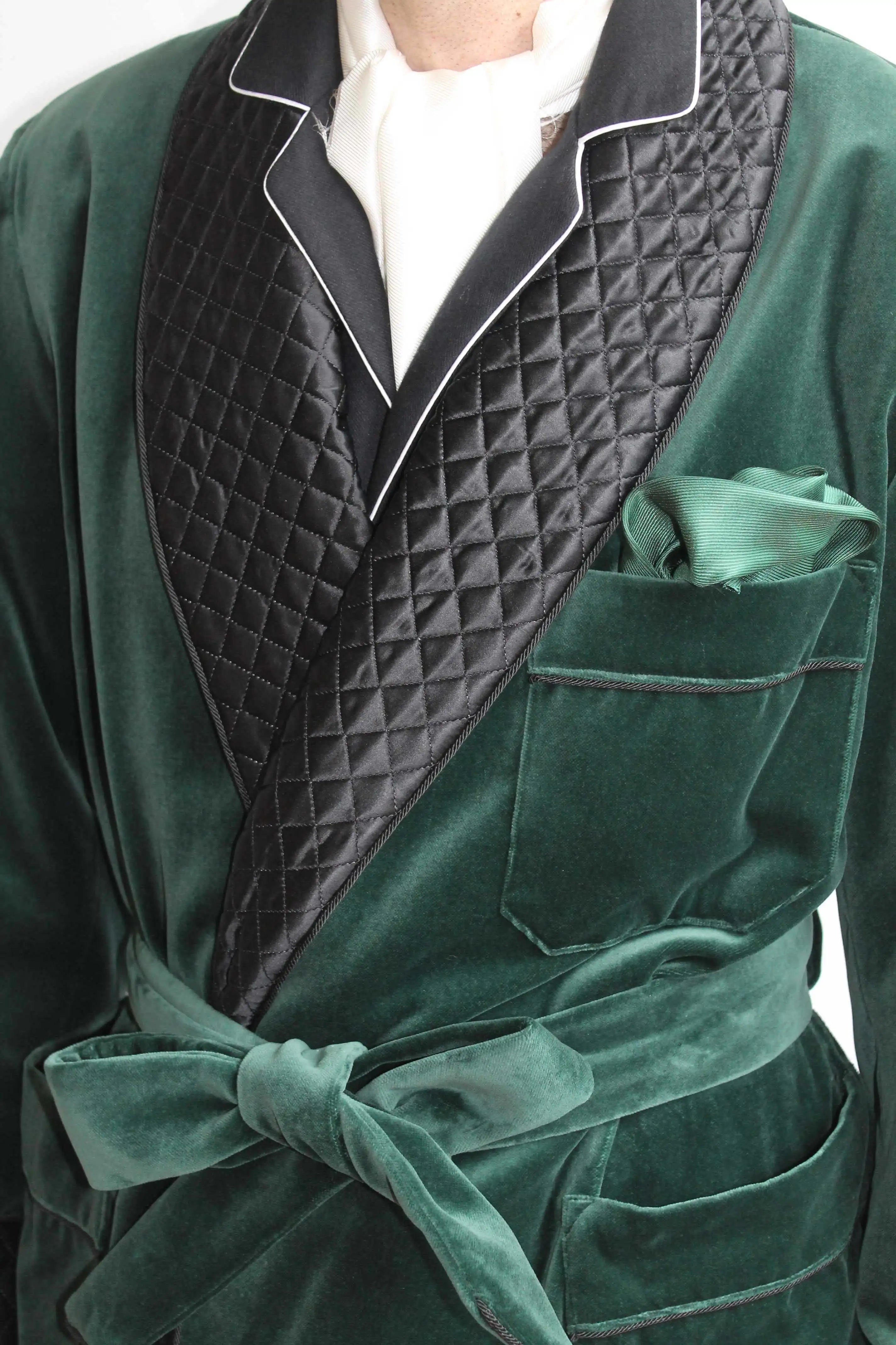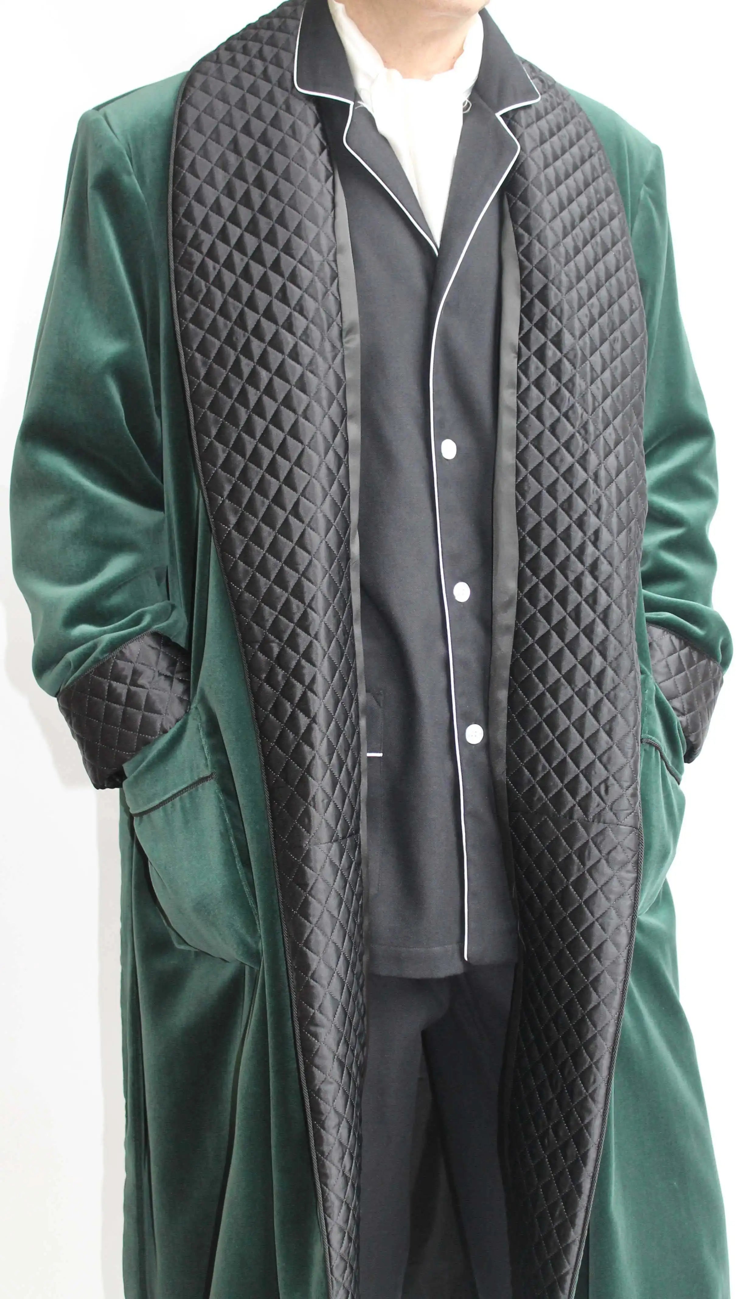 Capture old-world glamour with this Vintage Men’s Velvet Smoking Suit: a sumptuous robe-style tuxedo jacket featuring a luxurious shawl lapel and matching belt. Designed for grooms, hosts, or anyone seeking a dramatic, refined look, this piece channels classic smoking-jacket elegance updated with modern tailoring and custom-fit options.