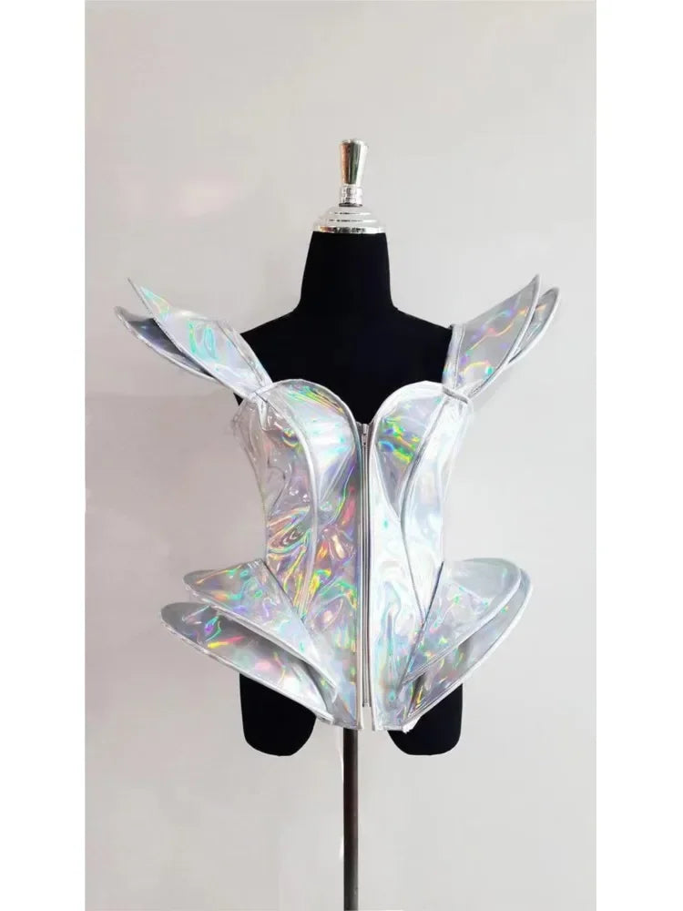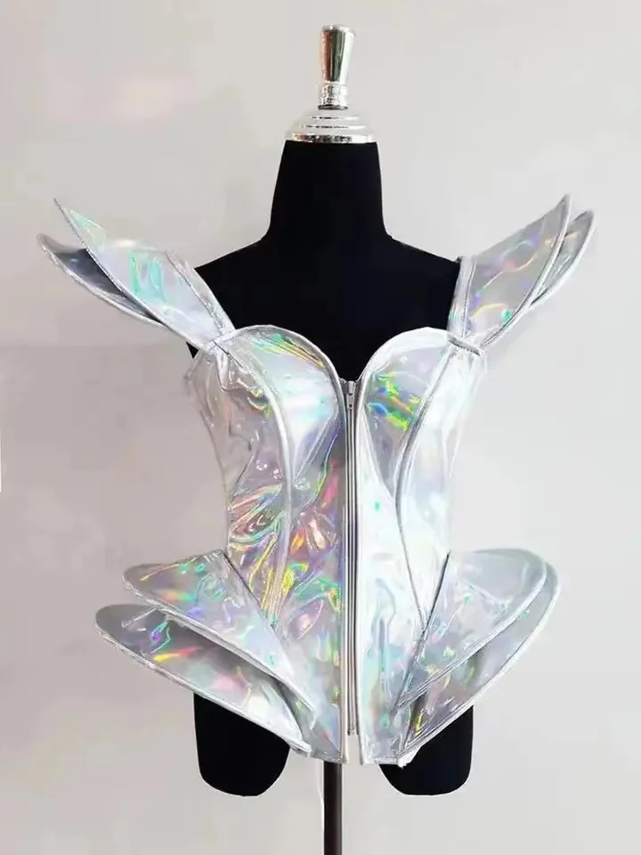 Nightclub Gogo Performance Suit White Laser Sexy One Piece Stage Performance DS Dance Bodysuit