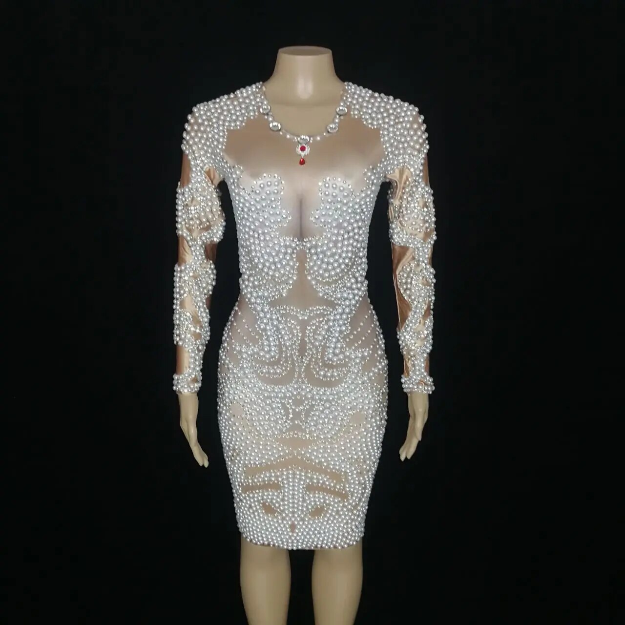 White Pears Short Bring Rhinestones Dress Women DJ Singer Host Evening Party Crystal Costume Birthday Prom Models Show