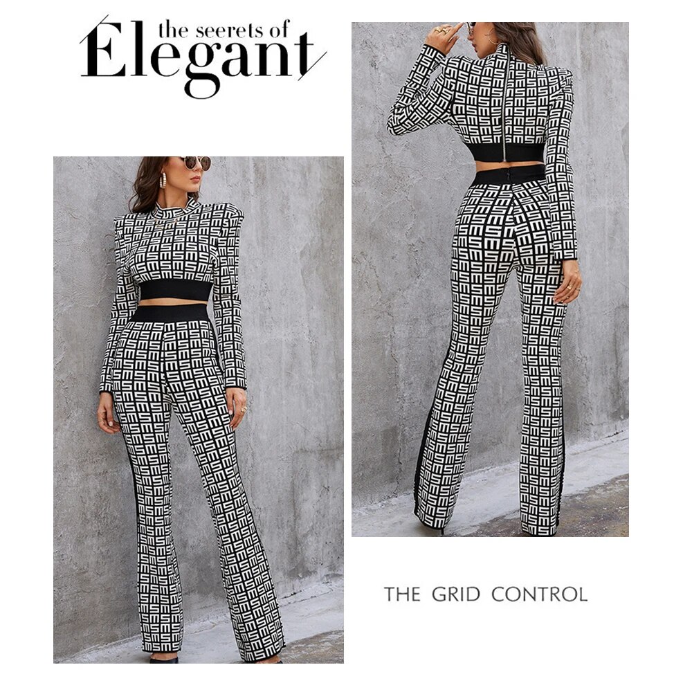 Winter New Female Set Knitted Two-piece Suit Round Neck Long-Sleeved Letter Jacquard Trousers Stretch Bodycon Bandage Set Wome