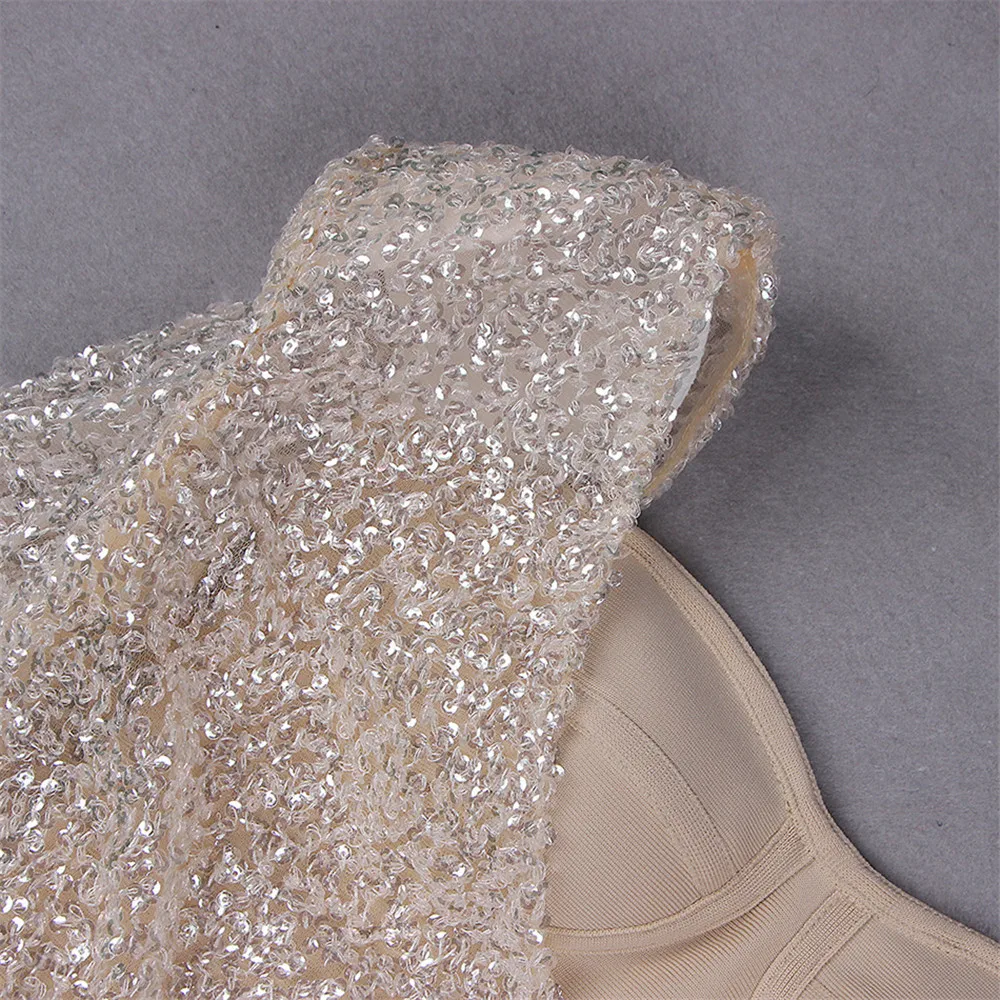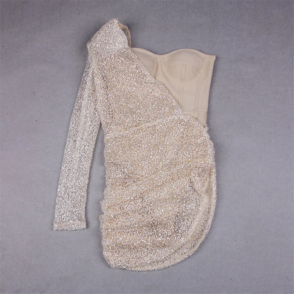 Women Bandages Dress Sexy Sequins One Shoulder Patchwork Clothes Celebrity Party Club Mini Dresses
