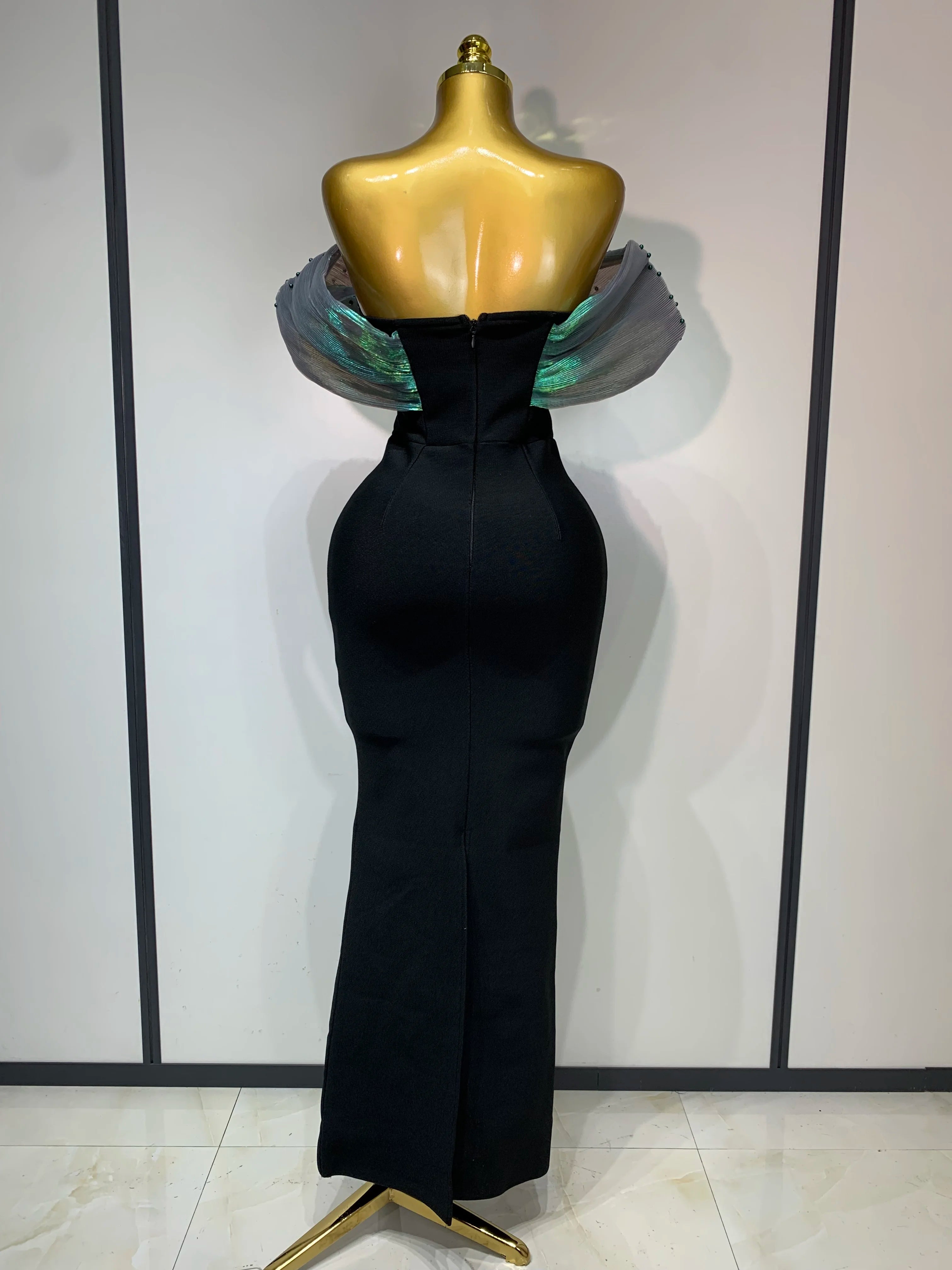 Women Celebrity Sexy Off Shoulder Beading Bodycon Maxi Long Bandage Dress Elegant Evening Club Party Luxury Birthday Outfit