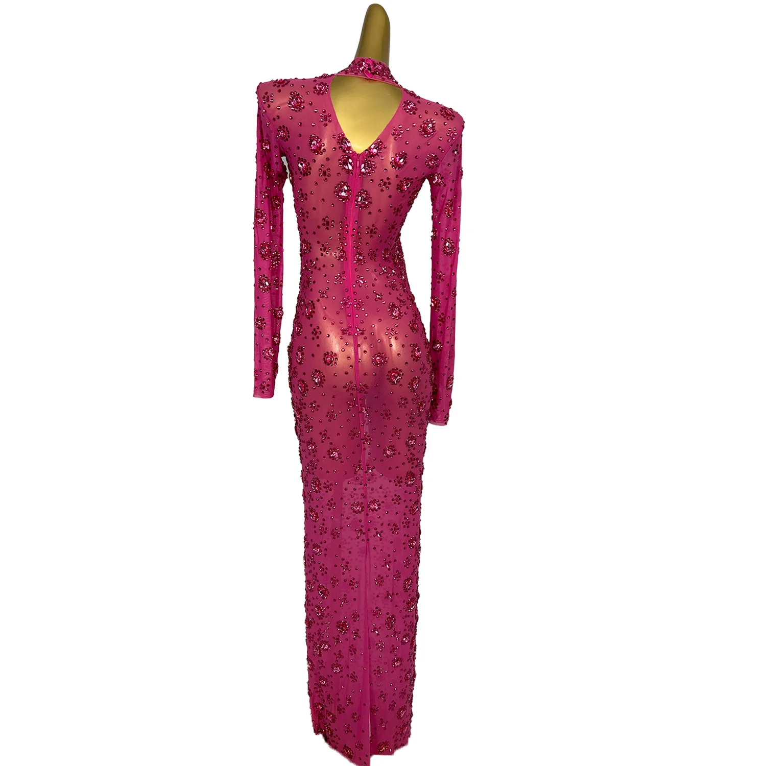Women Classic Elegant Diamonds Dress Long Sleeve Birthday Prom Gowns Celebrity Dresses Performance Stage Outfits Yuanquanxiong