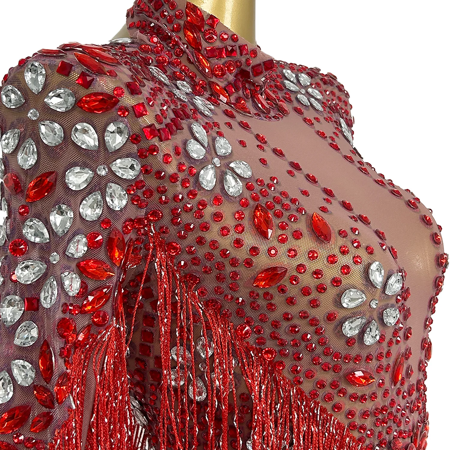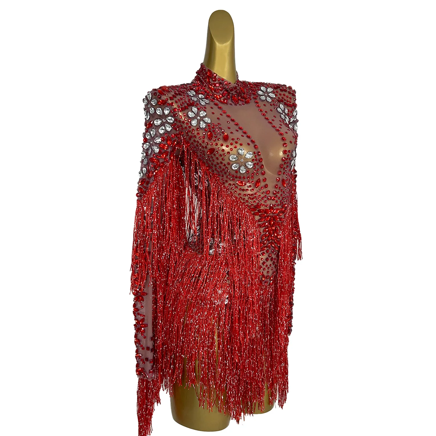 Women Dancer Red Tassel Leotard Stage Show Wear Sparkly Fringes Bodysuit Birthday Celebrate Outfit Dance Costume Shenhong