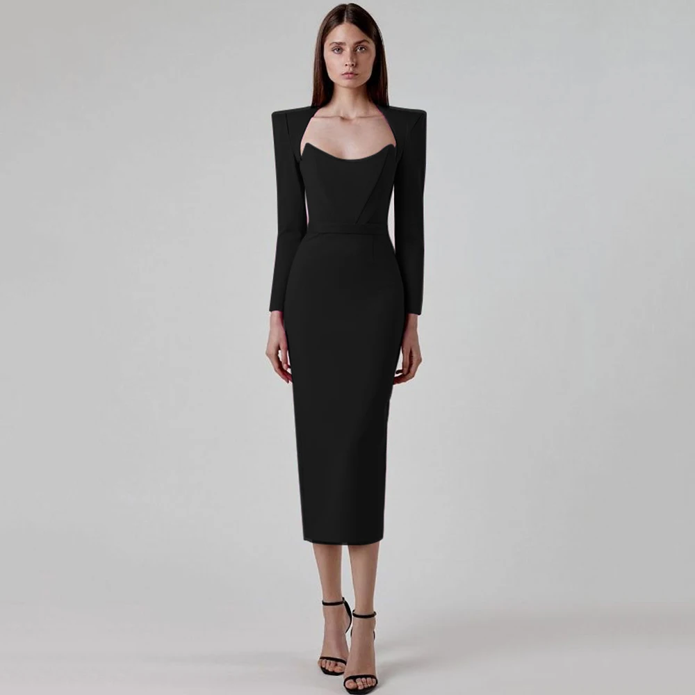 Women Elegant Bandage Dress Sexy Bodycon Clothes Club Party Celebrity Midi Dresses