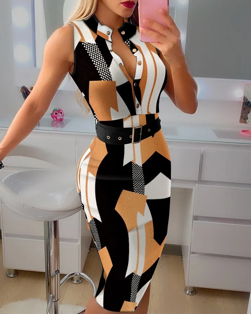 The "Women Elegant Solid Knit Button Design Skinny Dress Sleeveless Slim Party Dress Office Lady Bodycon Midi Dress Belt" is a versatile and stylish choice for various occasions. This dress features a solid knit fabric with a button design, giving it an elegant and sophisticated look. The sleeveless and bodycon silhouette make it suitable for office wear, while the slim party dress style allows for easy transition to evening events. Additionally, the included belt adds a touch of definition to the waist, creating a flattering and polished appearance. This dress is a great option for women looking for a versatile and chic piece that can seamlessly take them from the office to after-work gatherings.