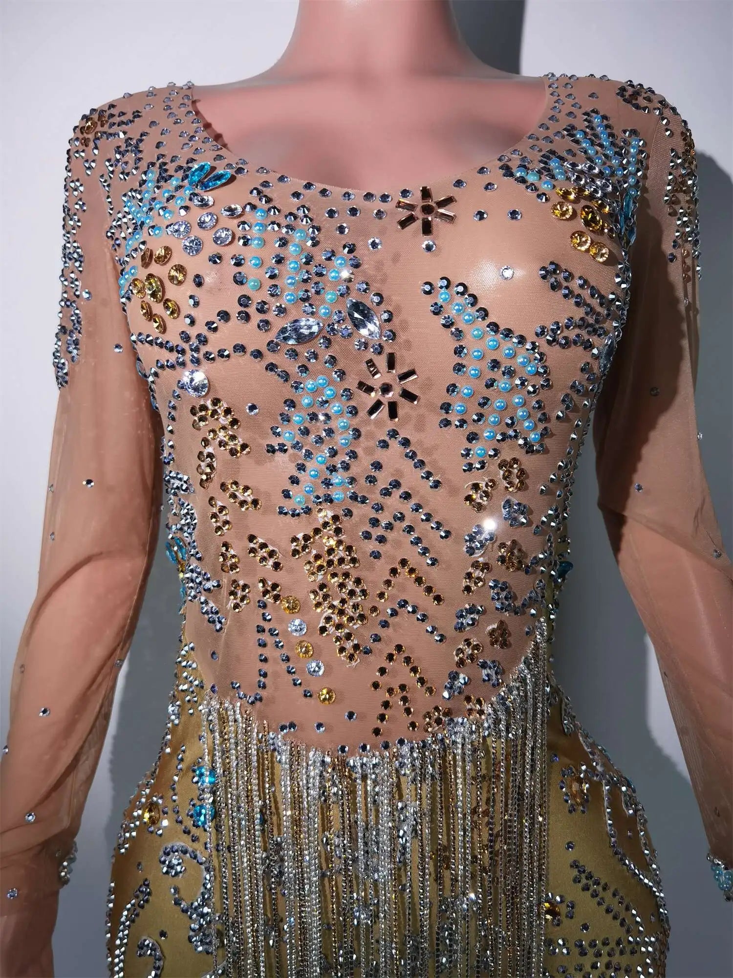 Make a stylish statement with this Women's Fashion Diamond Tassel Short Skirt. Designed to turn heads, this sexy skirt is embellished with rhinestones, perfect for a Birthday Party, Ballroom event, Evening Dress, Stage Performance, or Costume. Embrace your glamorous side and shine in this eye-catching ensemble.