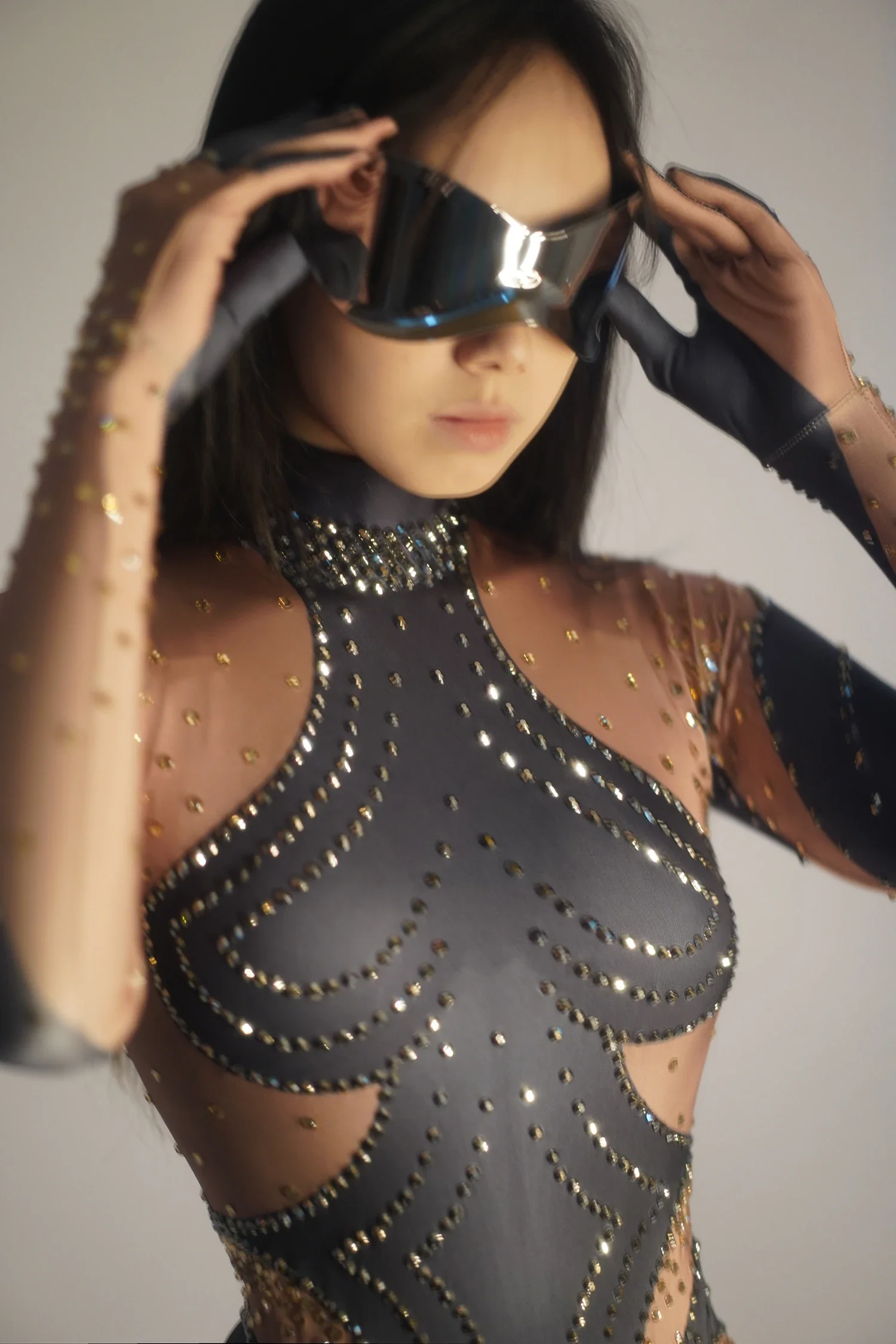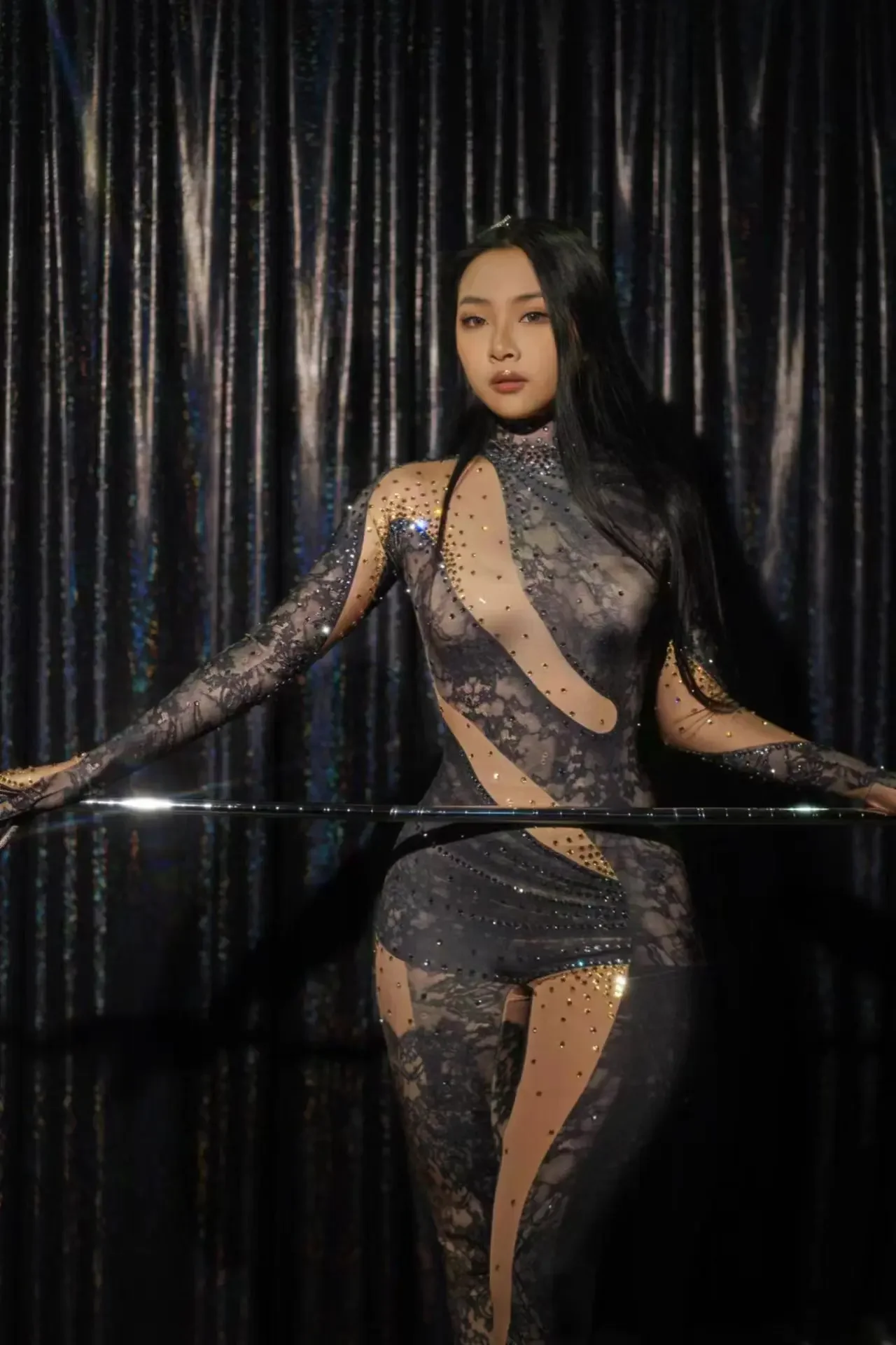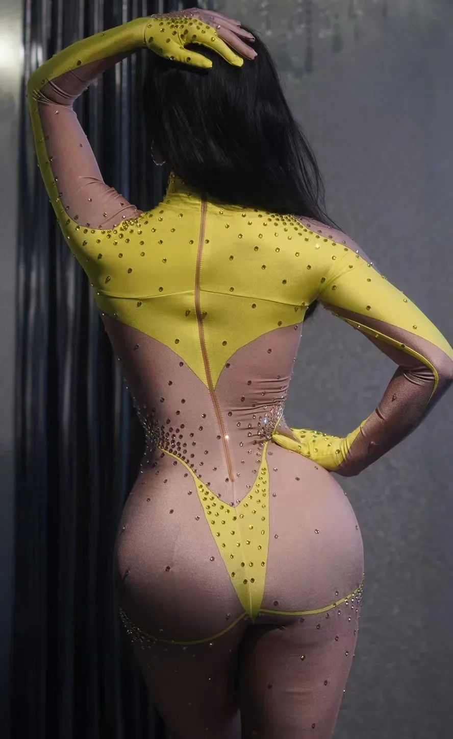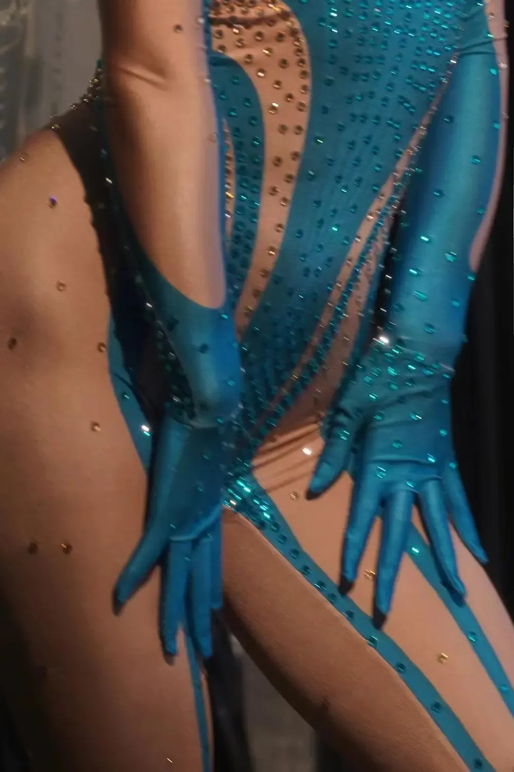 Women Long Jumpsuit Sparkly Rhinestones Sleeve Nightclub Prom Party Outfit Singer DancerPerformance Dance Costume Stage Wear