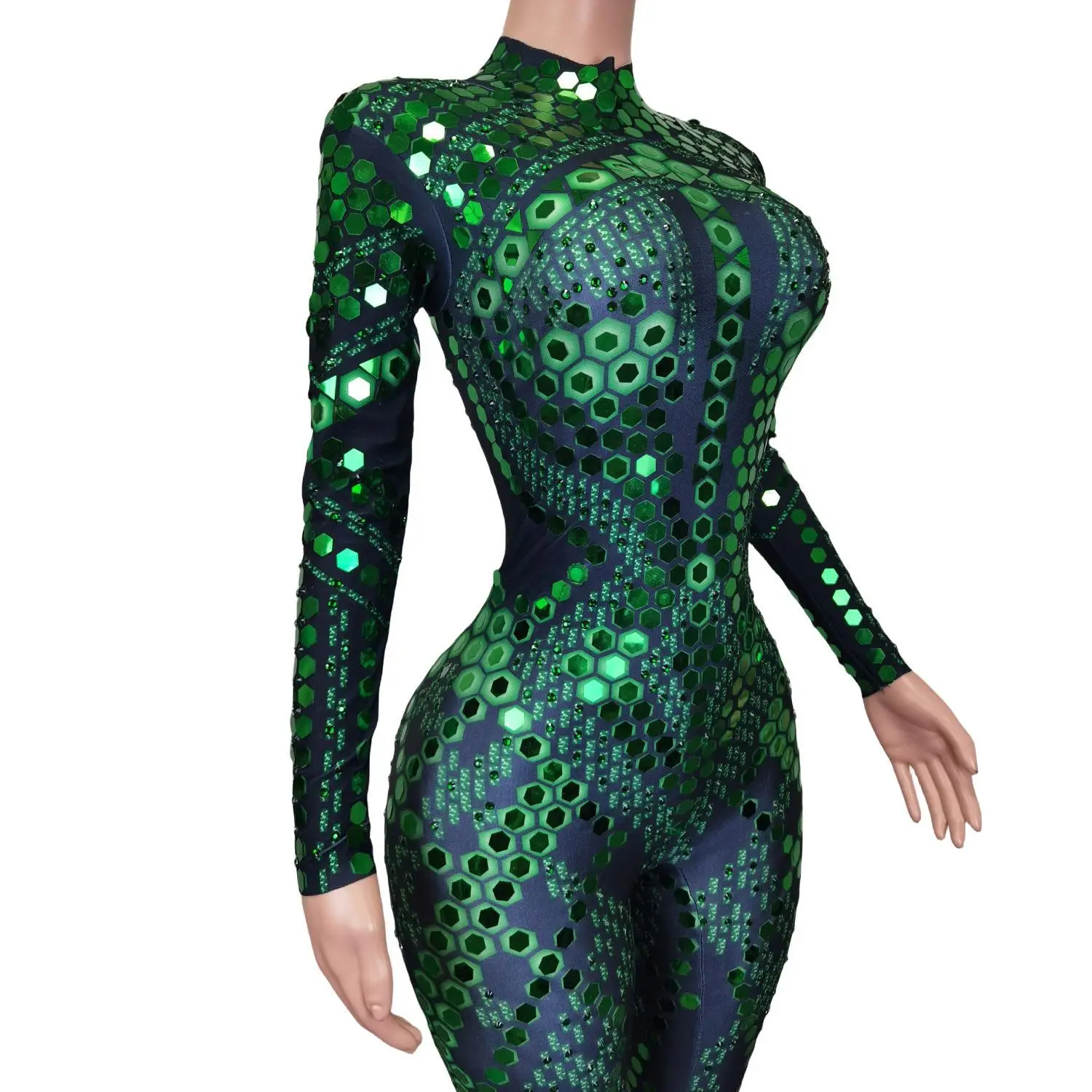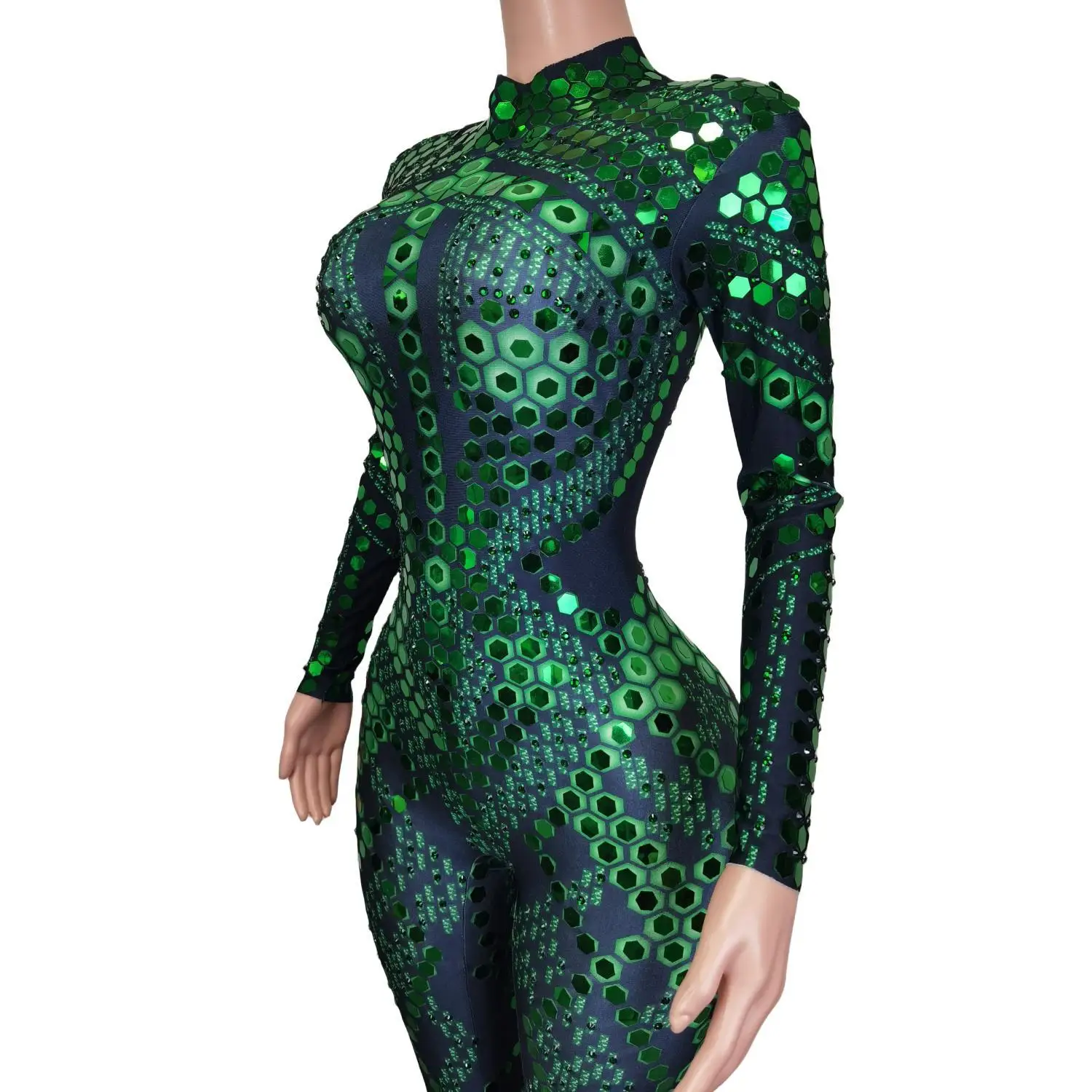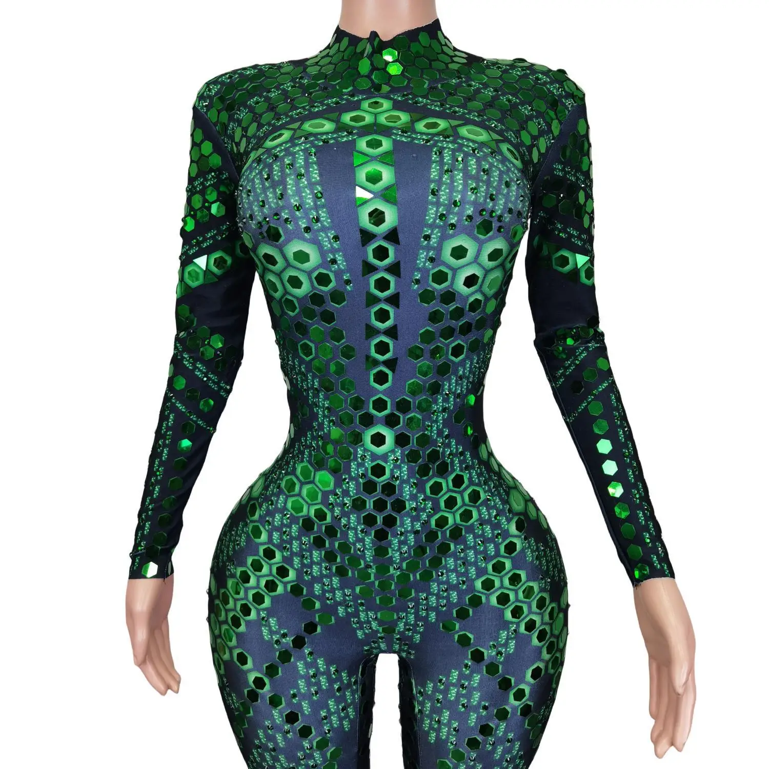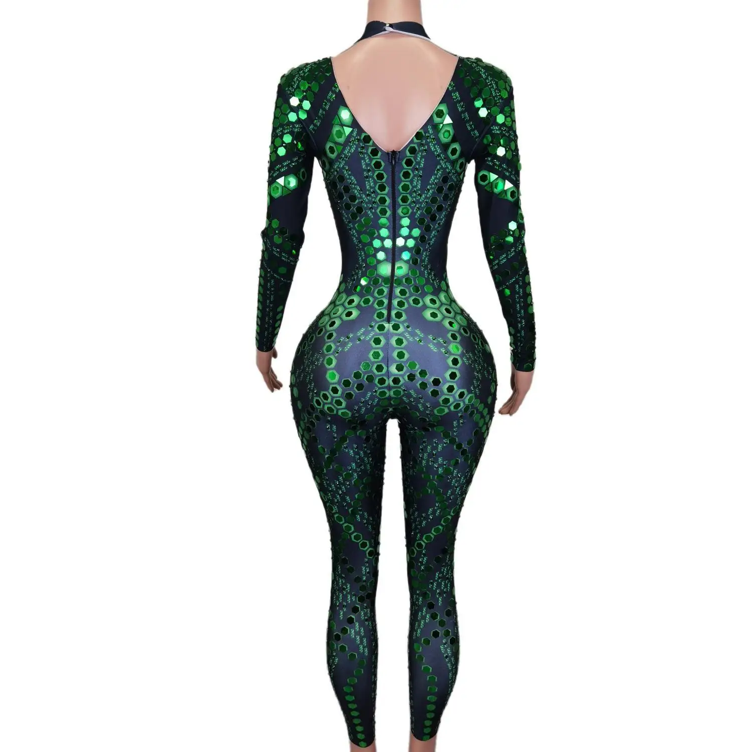 Women One Piece Mirror Romper Sparkle Rhinestone Dance Performance Costumes Nightclub Party Wear Lady Sexy Jumpsuits Liubianku
