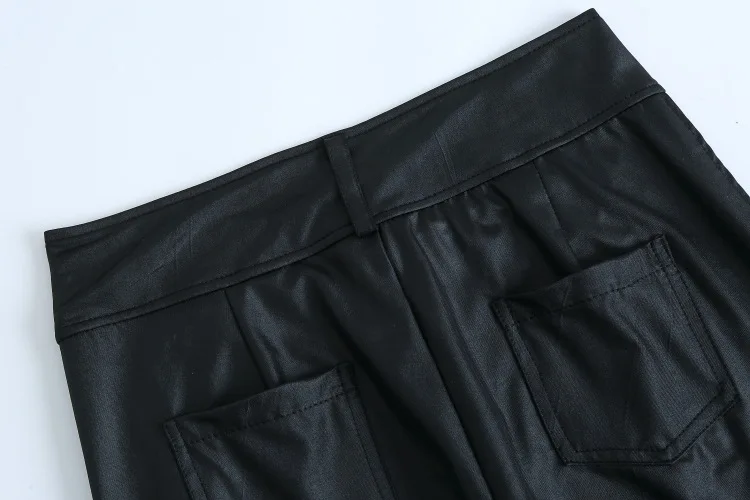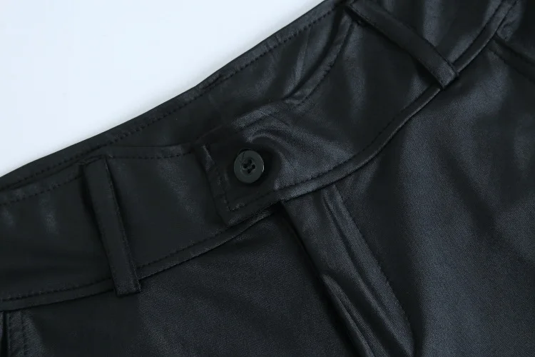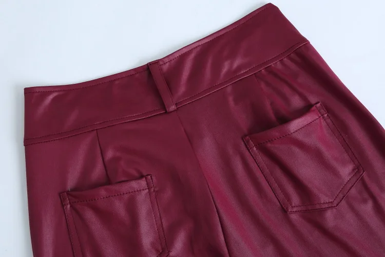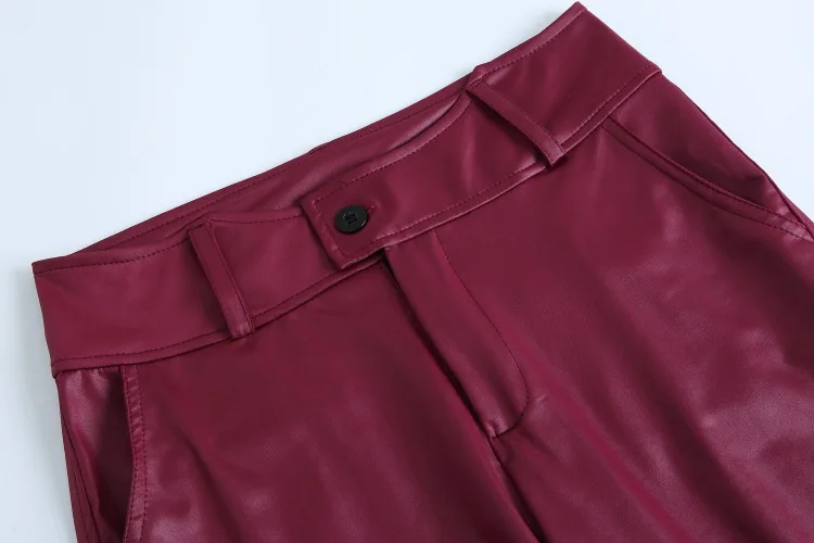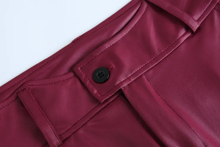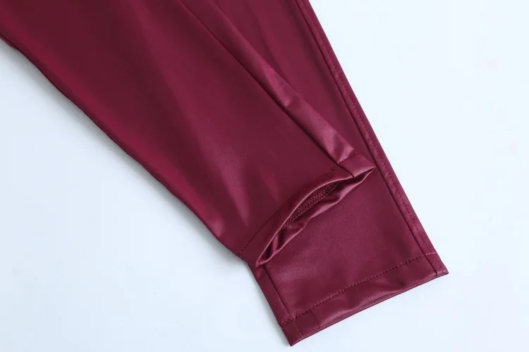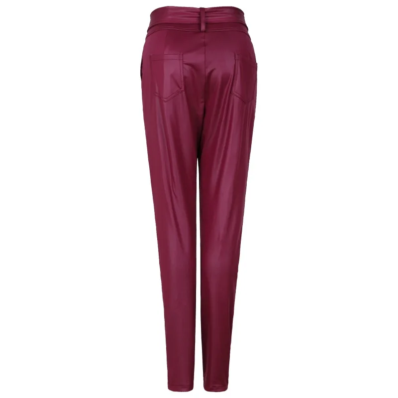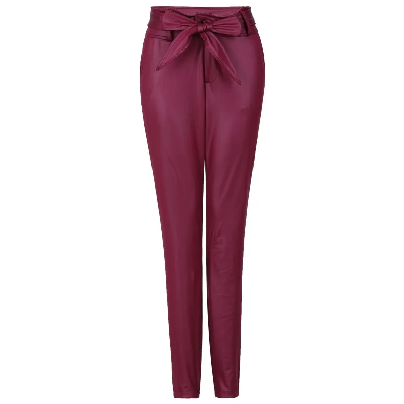 These women's PU leather leggings feature a high waist, bow sashes, and an elegant, slim, stretchy pencil trouser design, making them suitable for office wear or casual outings. Available in sizes S to 3XL.