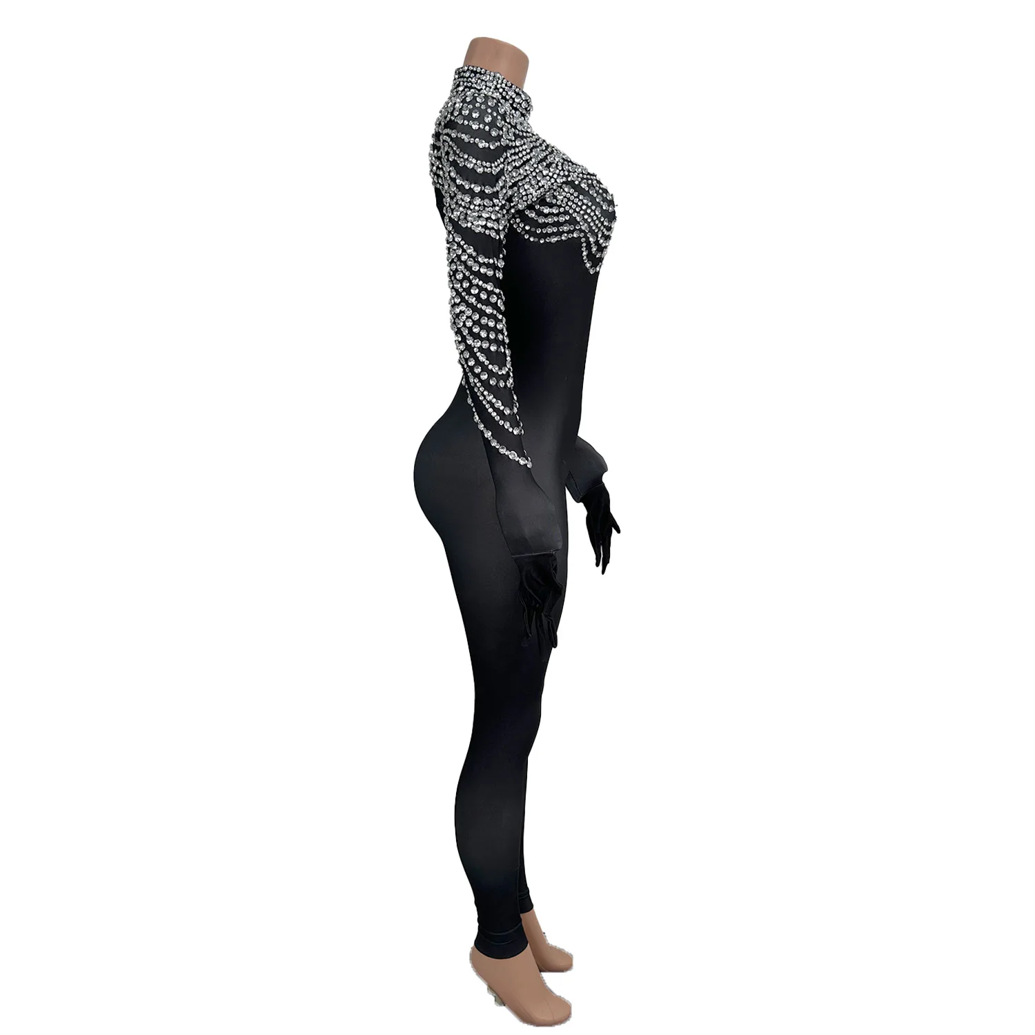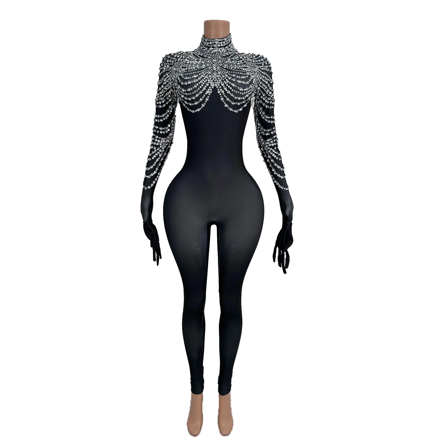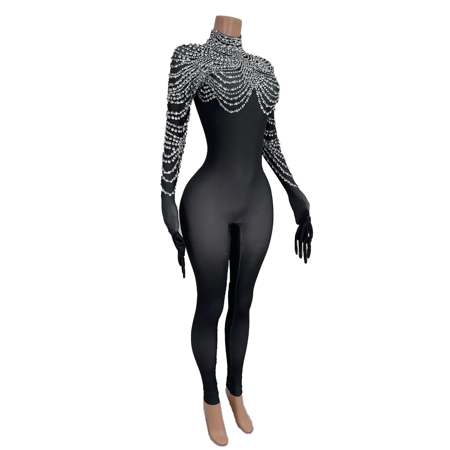 Women Rhinestone Jumpsuits Dance Costume Drag Queen Outfit Team Leotard Celebrate Las Vegas Show Concert Wear Pijian
