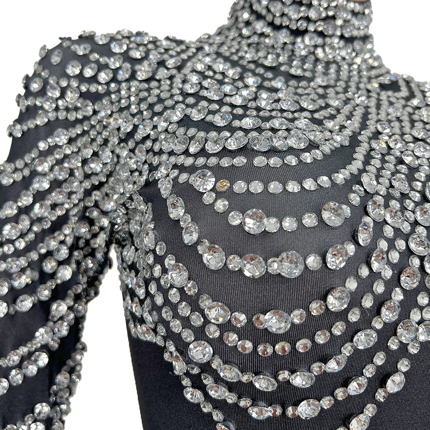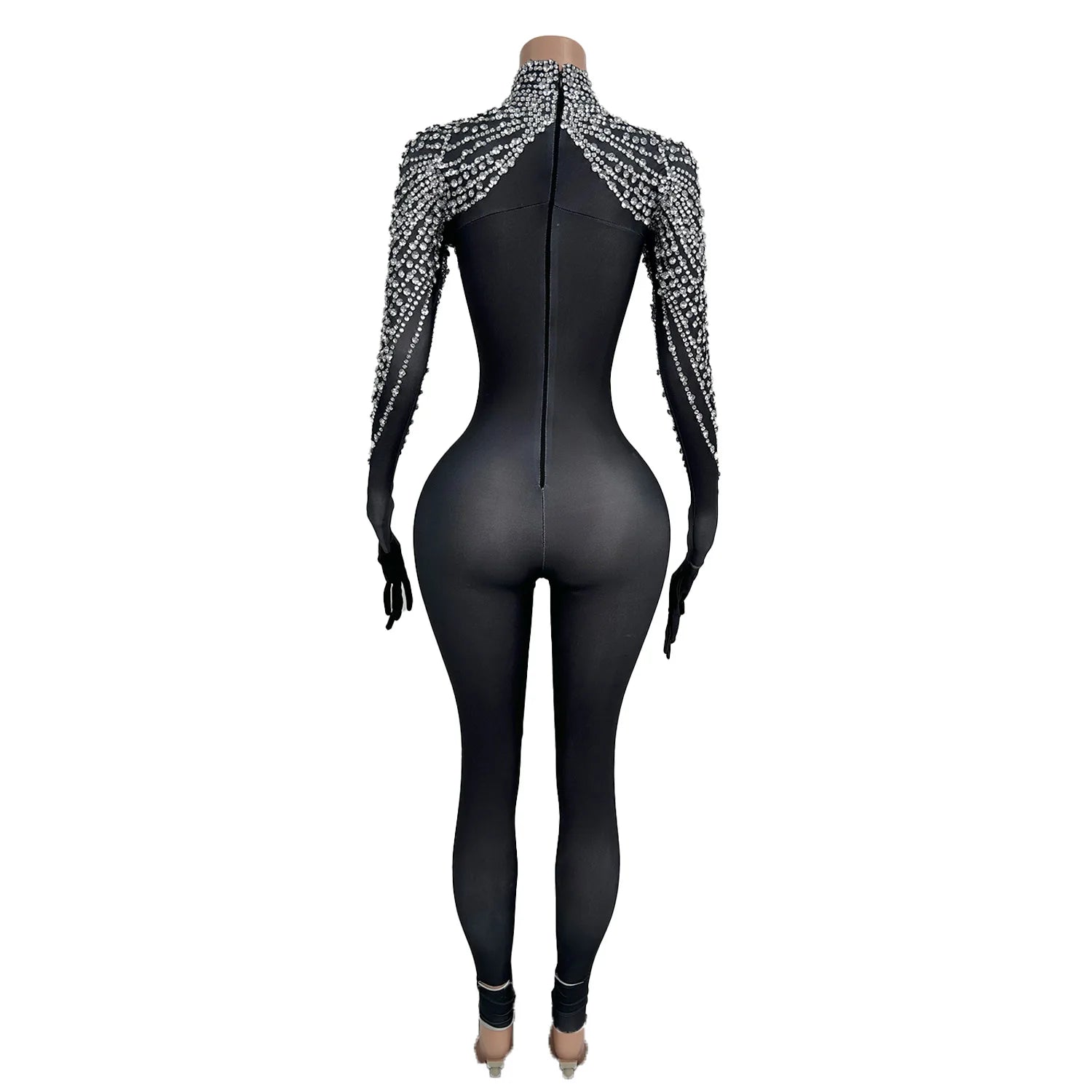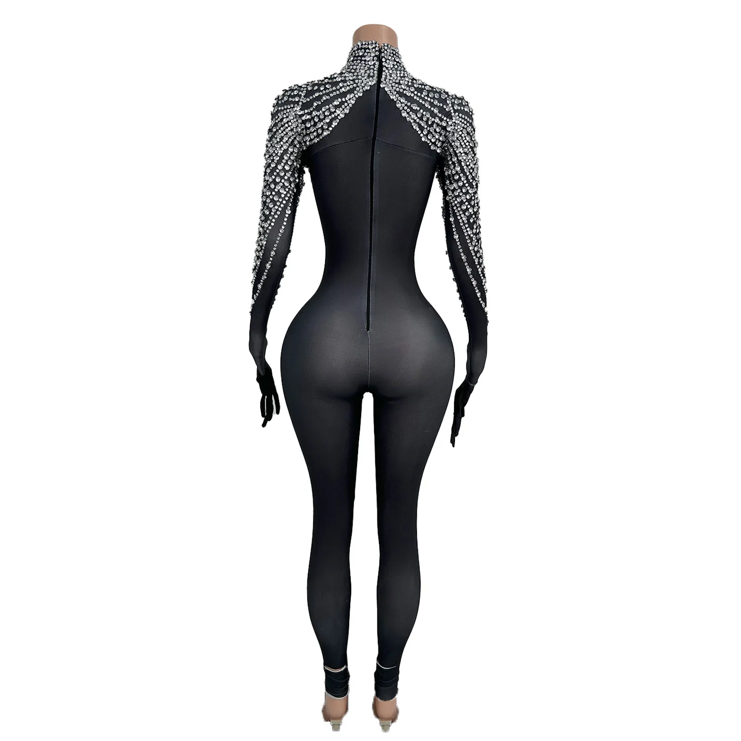 Women Rhinestone Jumpsuits Dance Costume Drag Queen Outfit Team Leotard Celebrate Las Vegas Show Concert Wear Pijian
