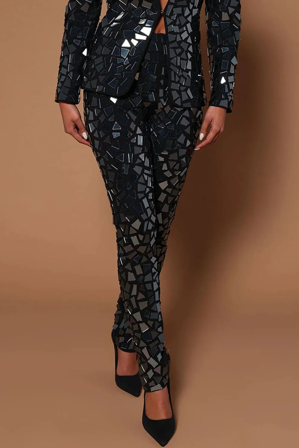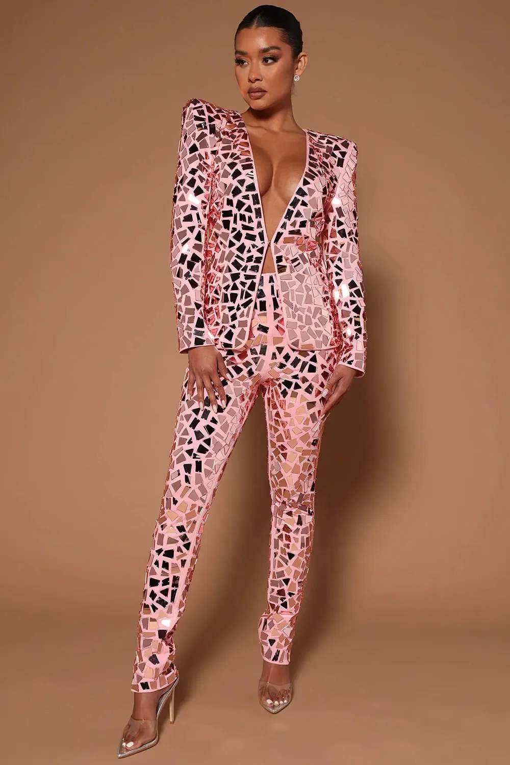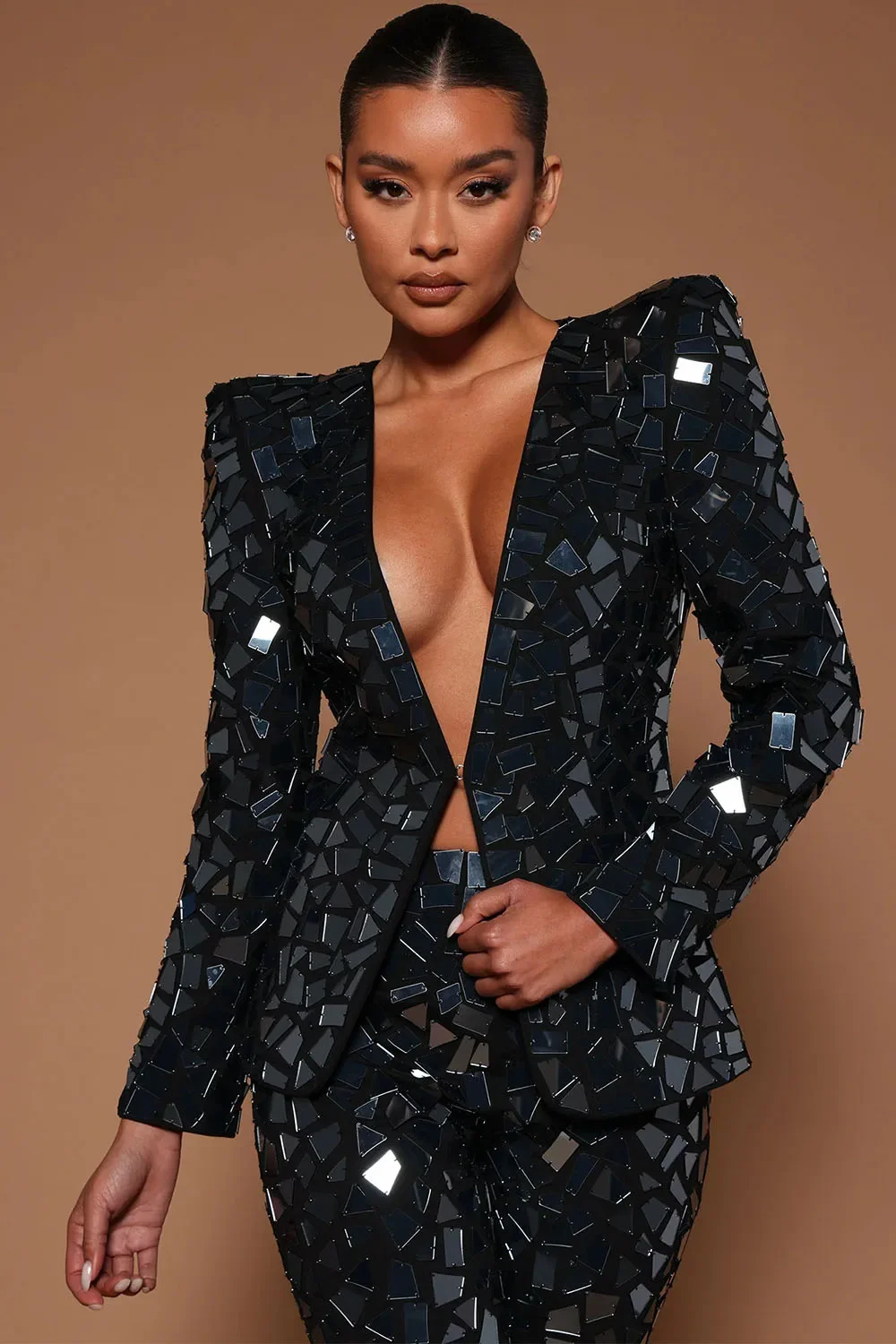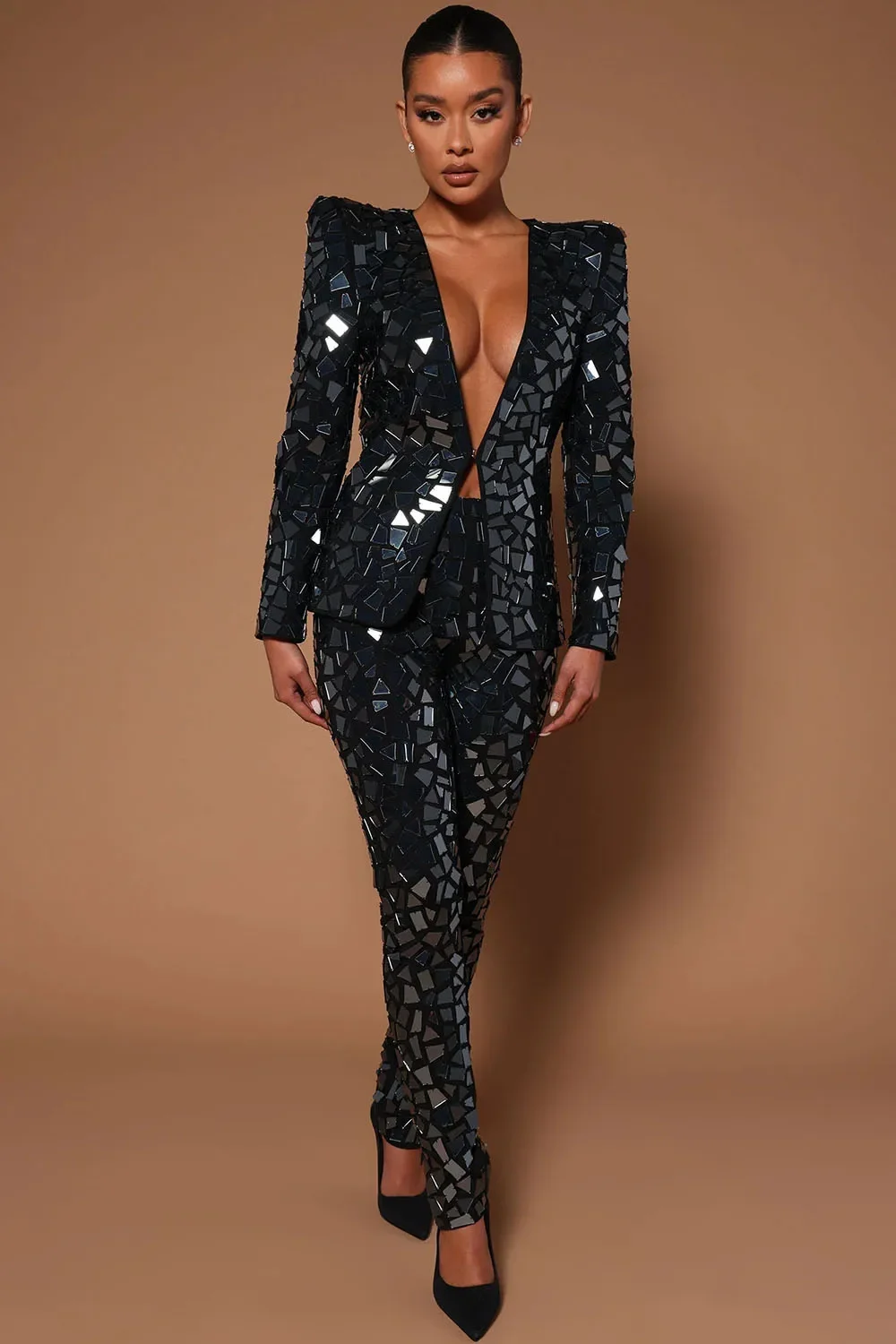 Step into the spotlight with our stunning women’s sequin sparkly two-piece set. This eye-catching outfit features a sexy V-neck top and slim long sleeves, designed to flatter your figure and showcase your style. The shimmering mirror-like sequins add a touch of glamour, making it perfect for parties, events, or a night out on the town. This matching set effortlessly combines elegance and trendiness, ensuring you make a memorable impression wherever you go.