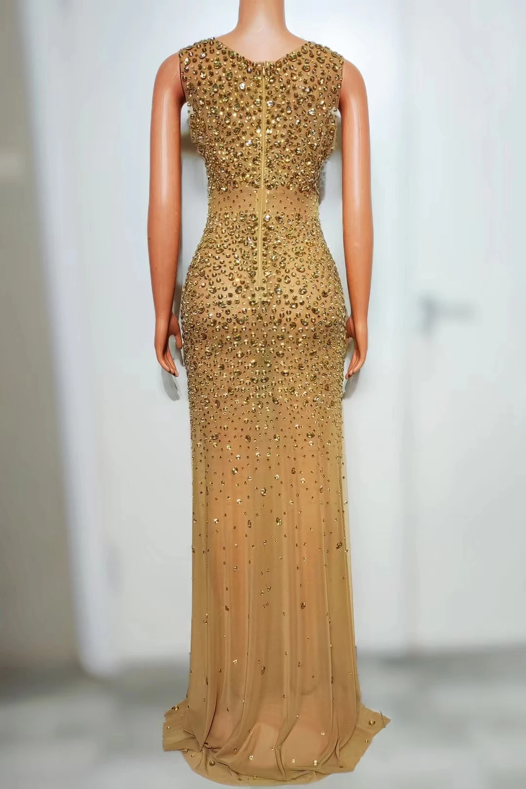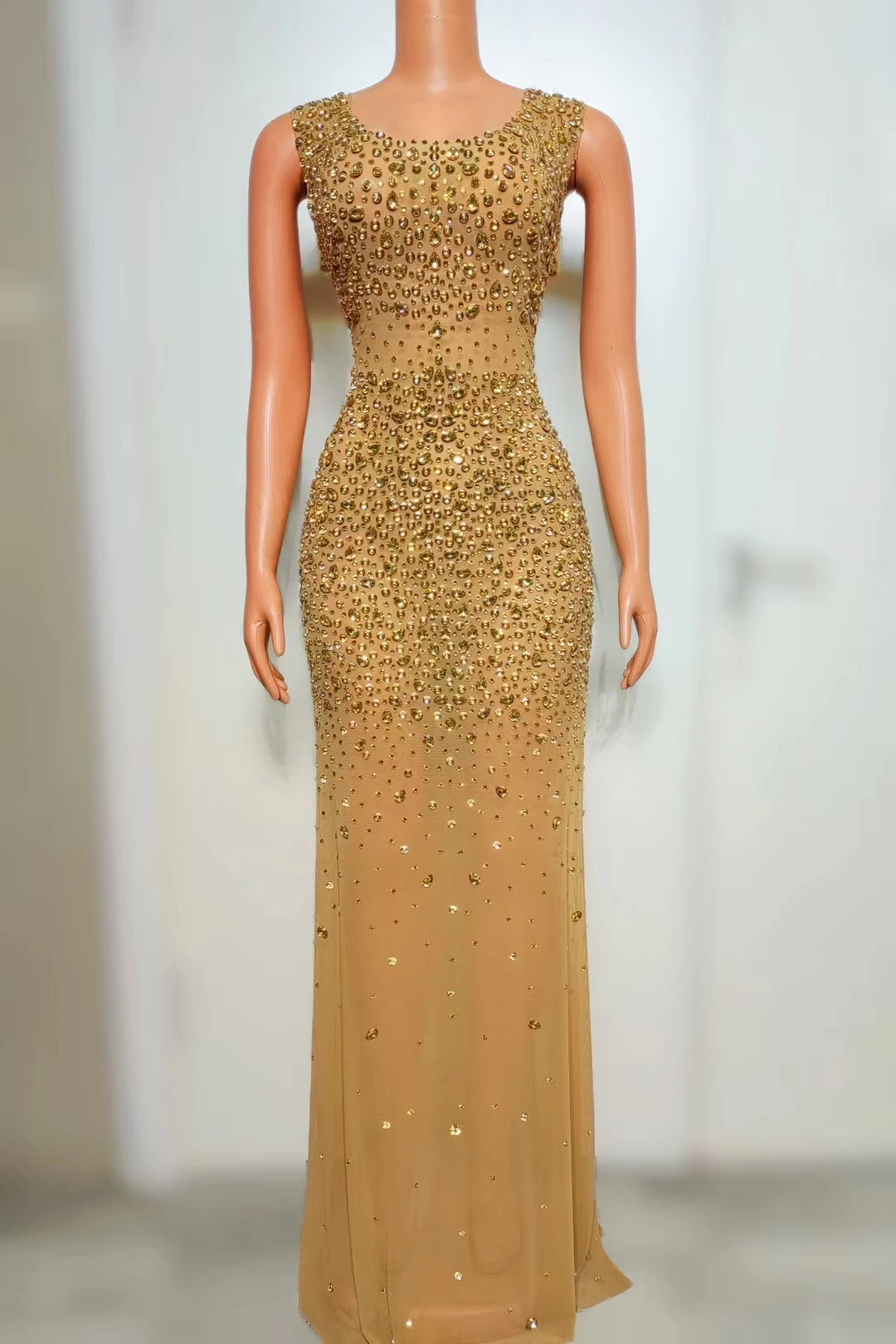 Women Sexy Spark Crystals Luxury Beaded Dresses African Women Birthday Party Gowns Black Girl Long Prom Photoshoot Dress Jinzhou