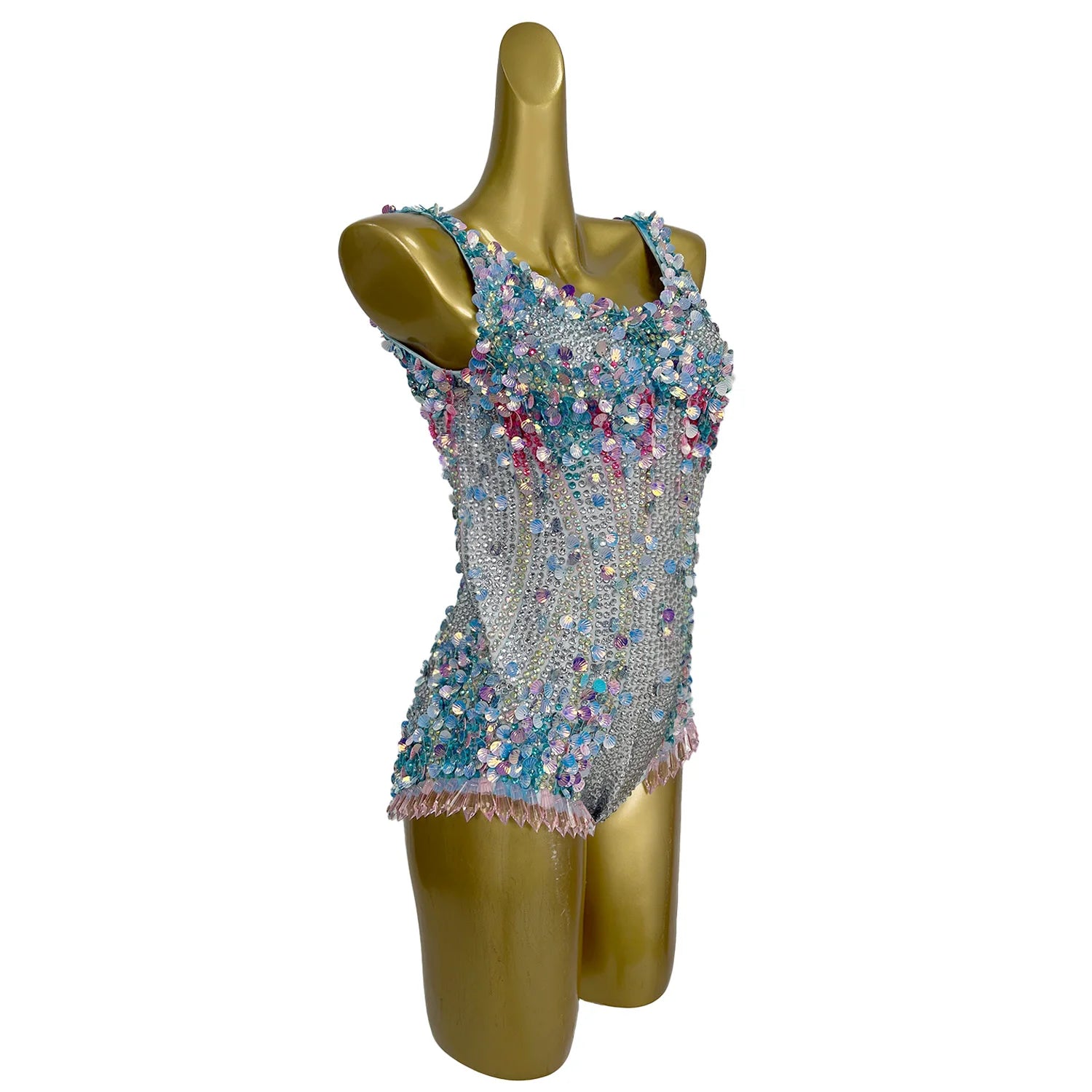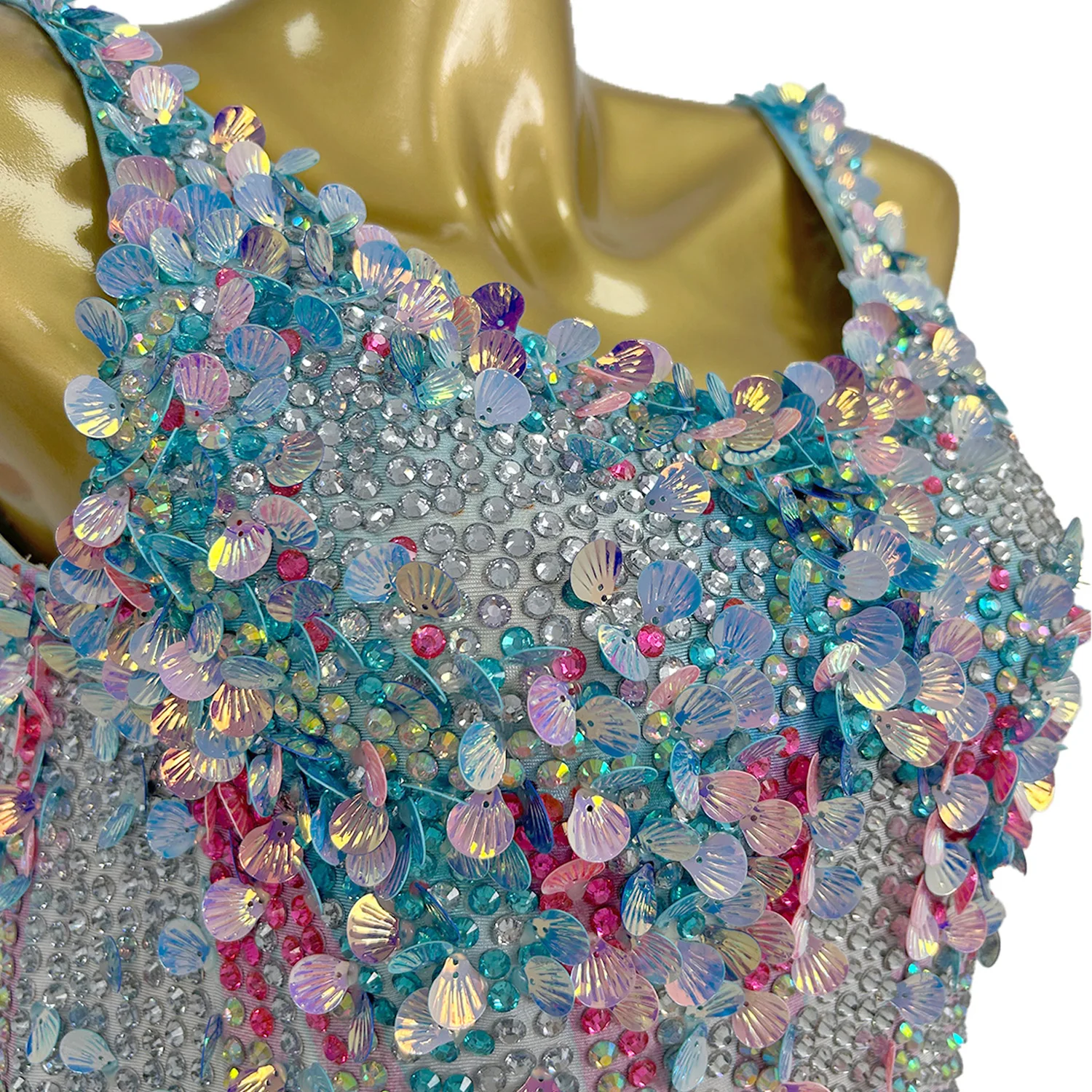 Women Sexy Sparkly Rhinestones Sequins Bodysuit Performance Dance Costume Nightclub Singer Dancer Photoshoot Gown Meimei