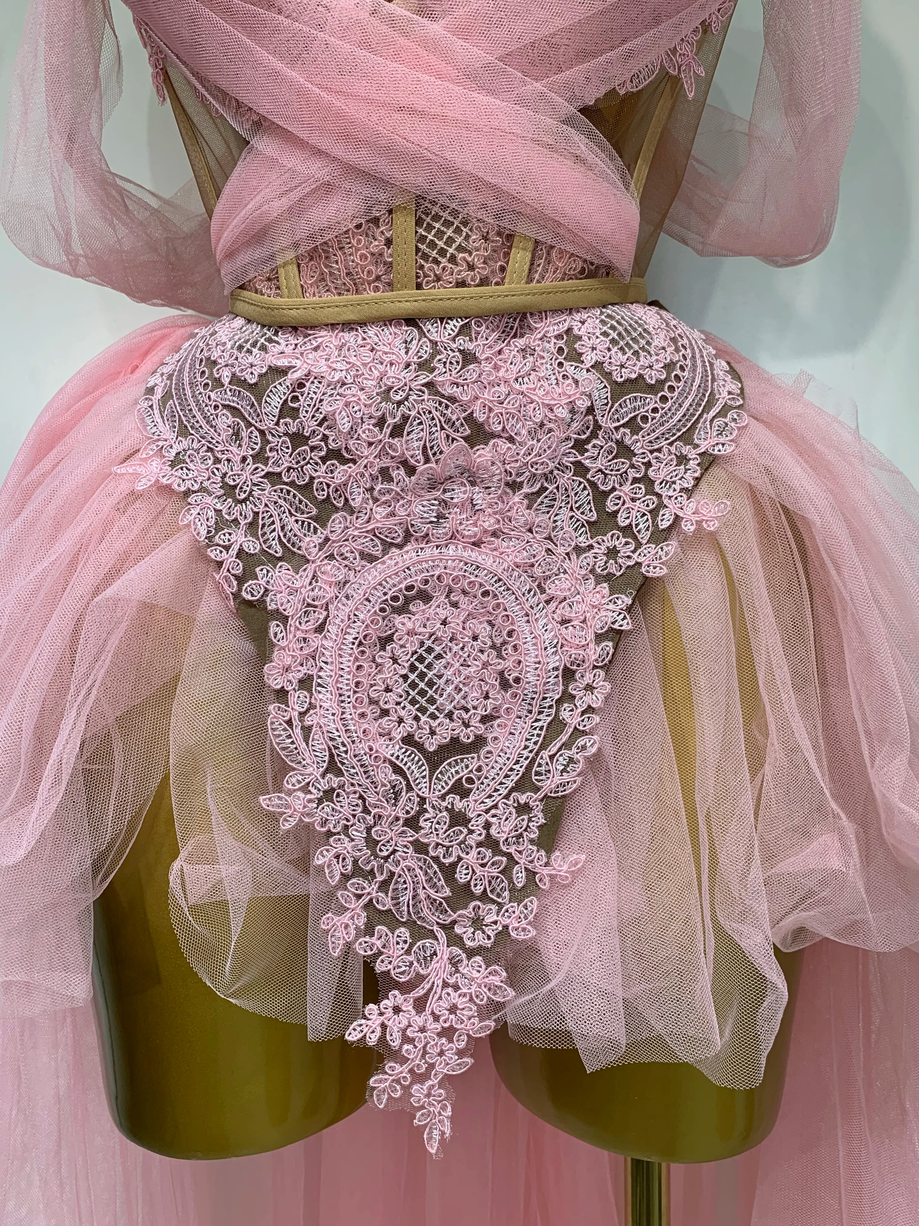Women Sexy Strapless Pink Mesh Two Pieces Set Prom Gown Celebrate Birthday Nightclub Party Singer Stage Performance Costume