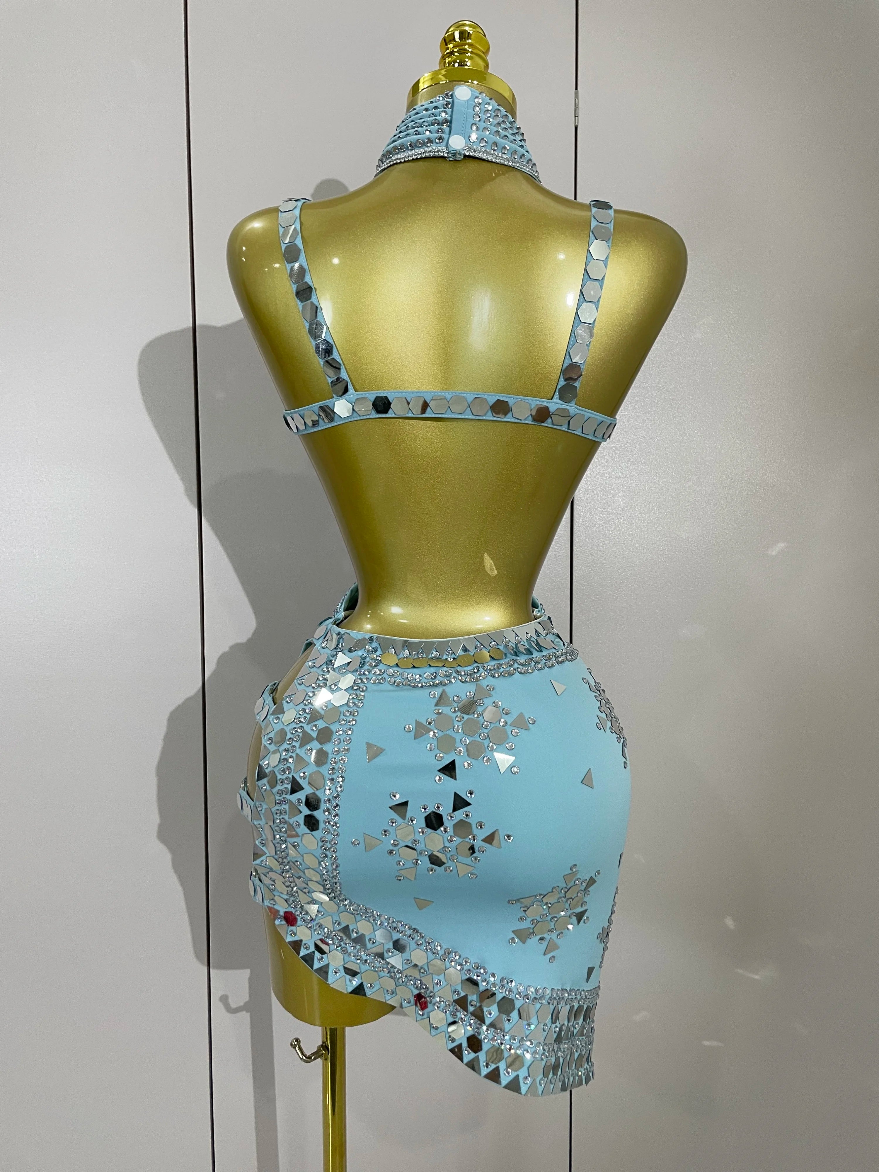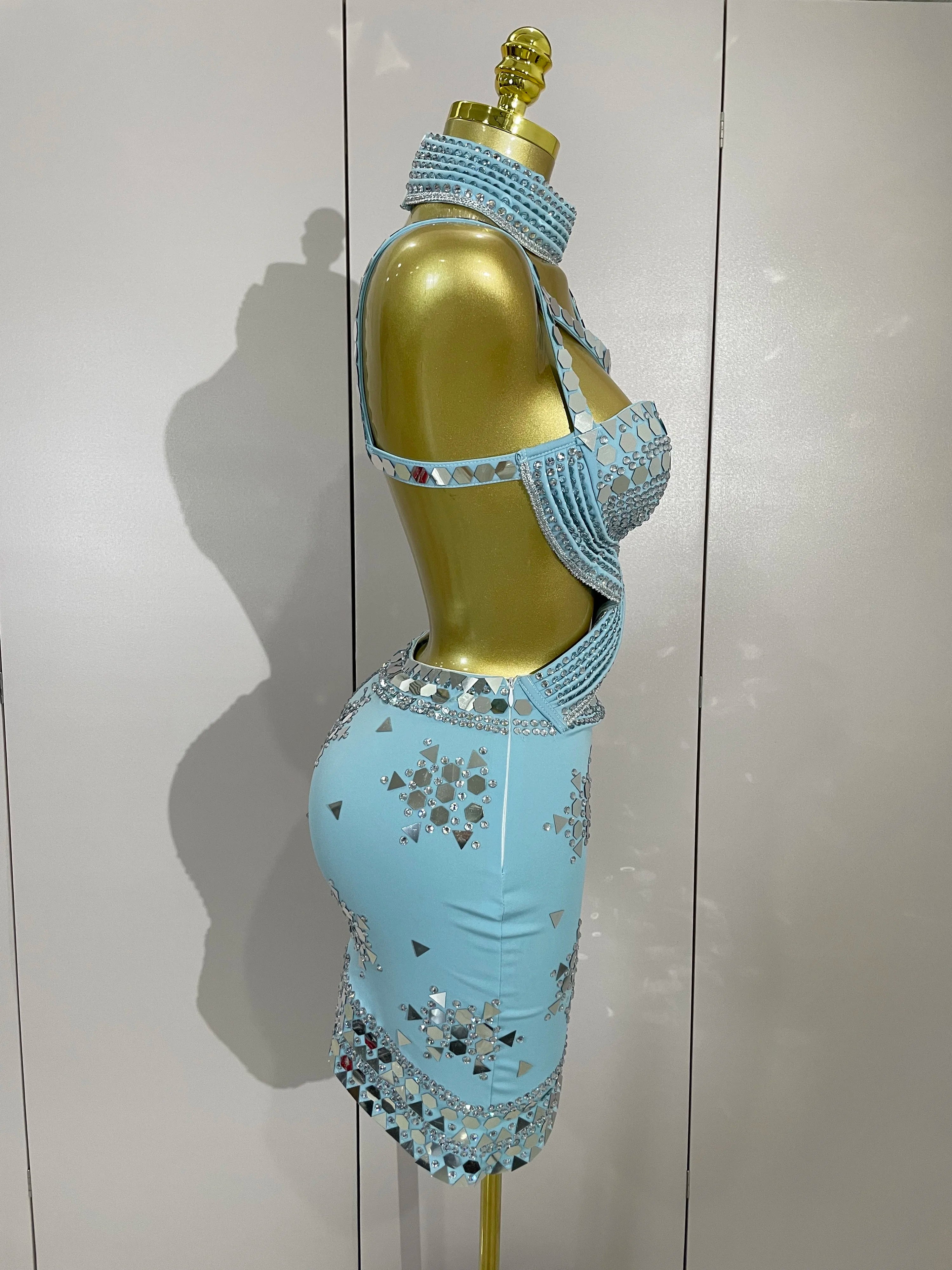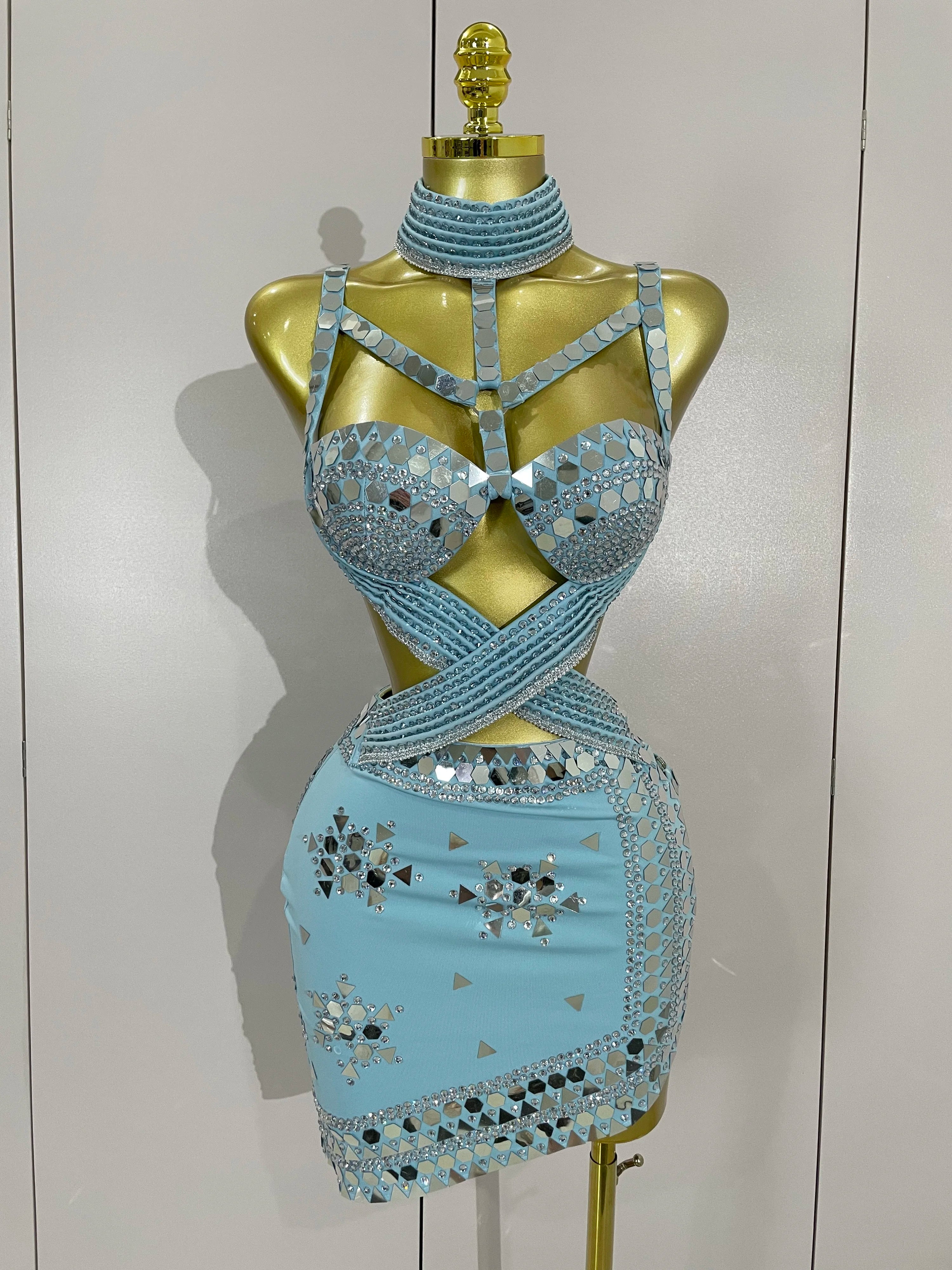 Elevate your stage presence with thisWomen’s Sparkly Rhinestone Mirror Backless Mini Dress— a high-impact, camera-ready piece designed for nightclub DJs, singers, performers, birthday parties, and show stages. Combining faceted rhinestones and polished mirror tiles on a sleek bodycon mini silhouette, this dress reflects lights and creates dramatic shimmer from every angle.