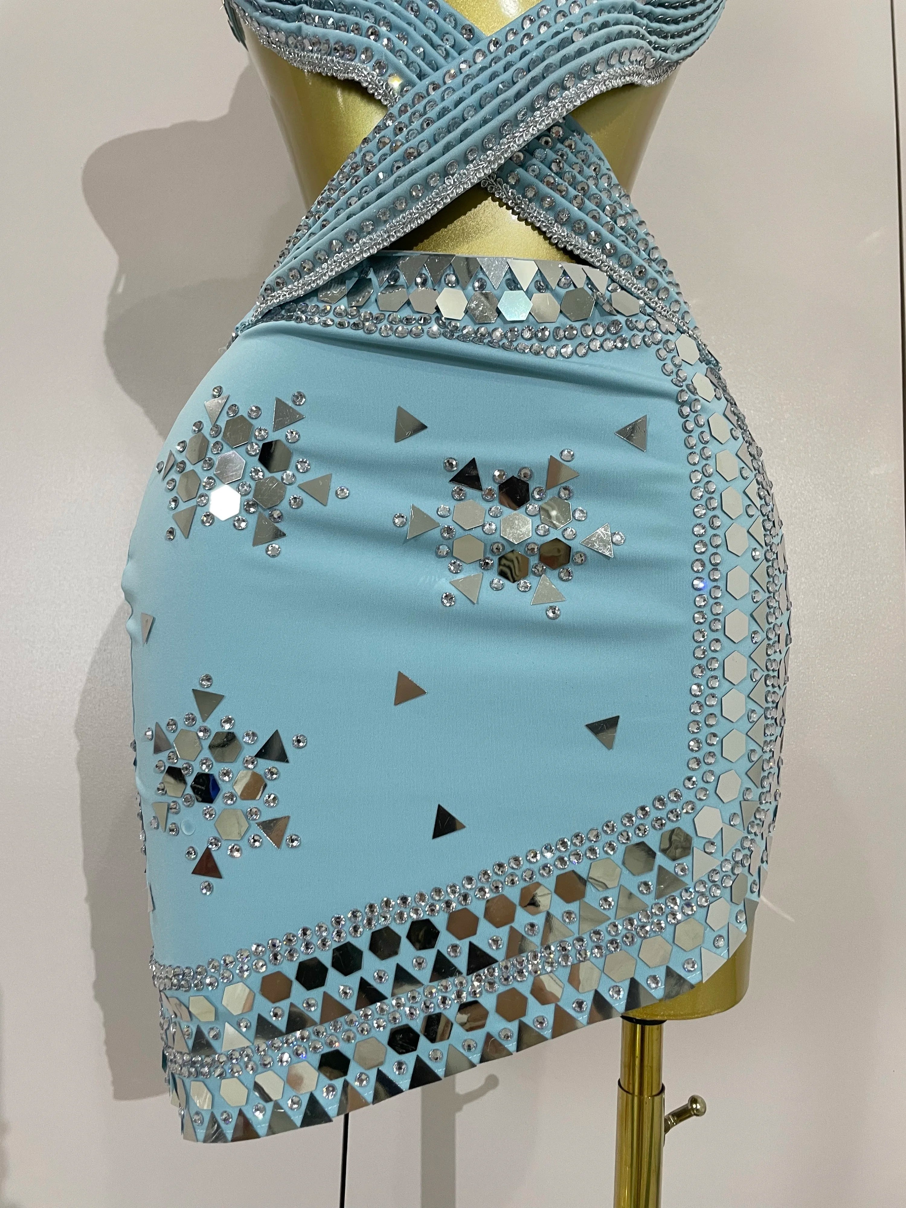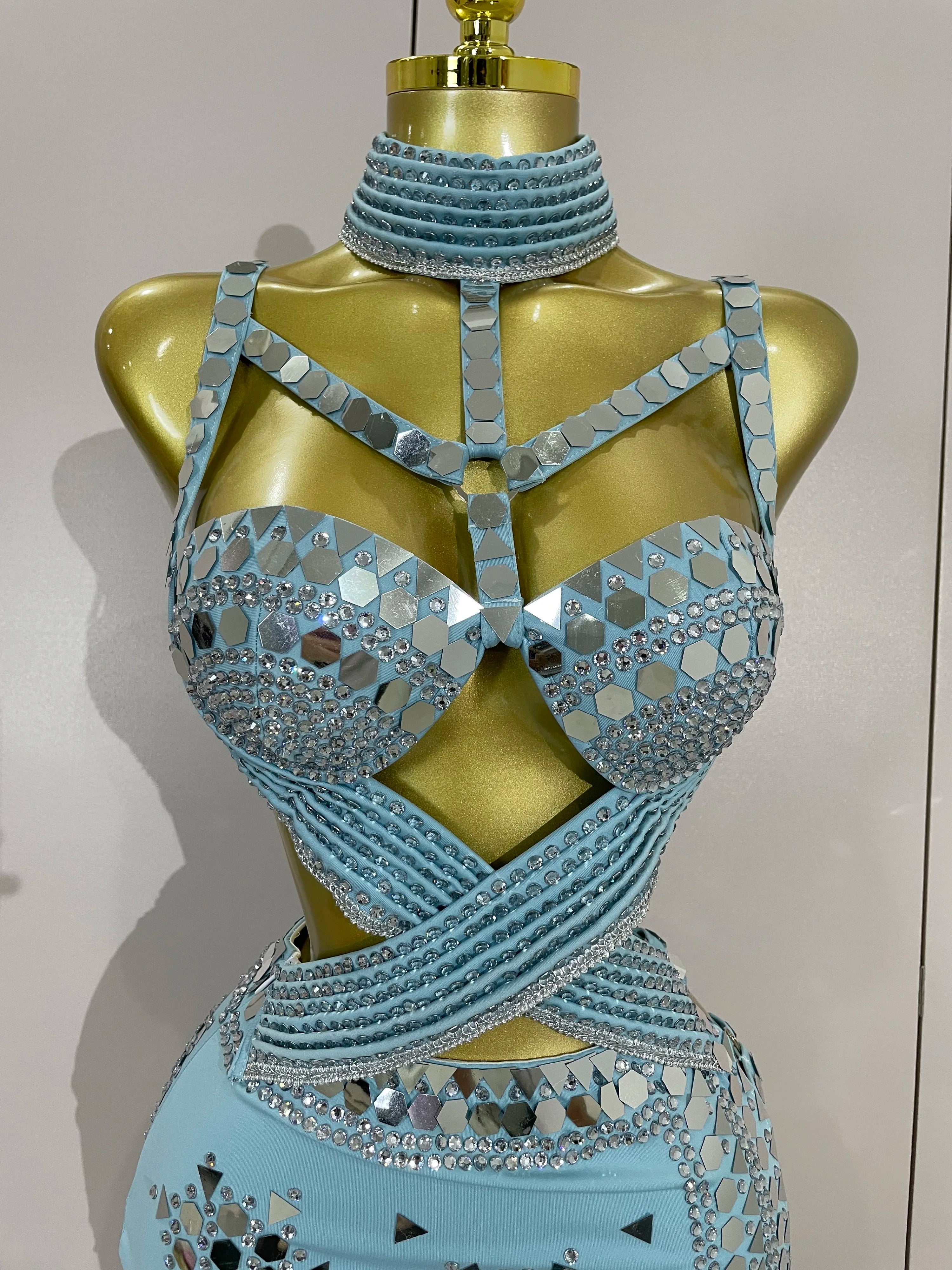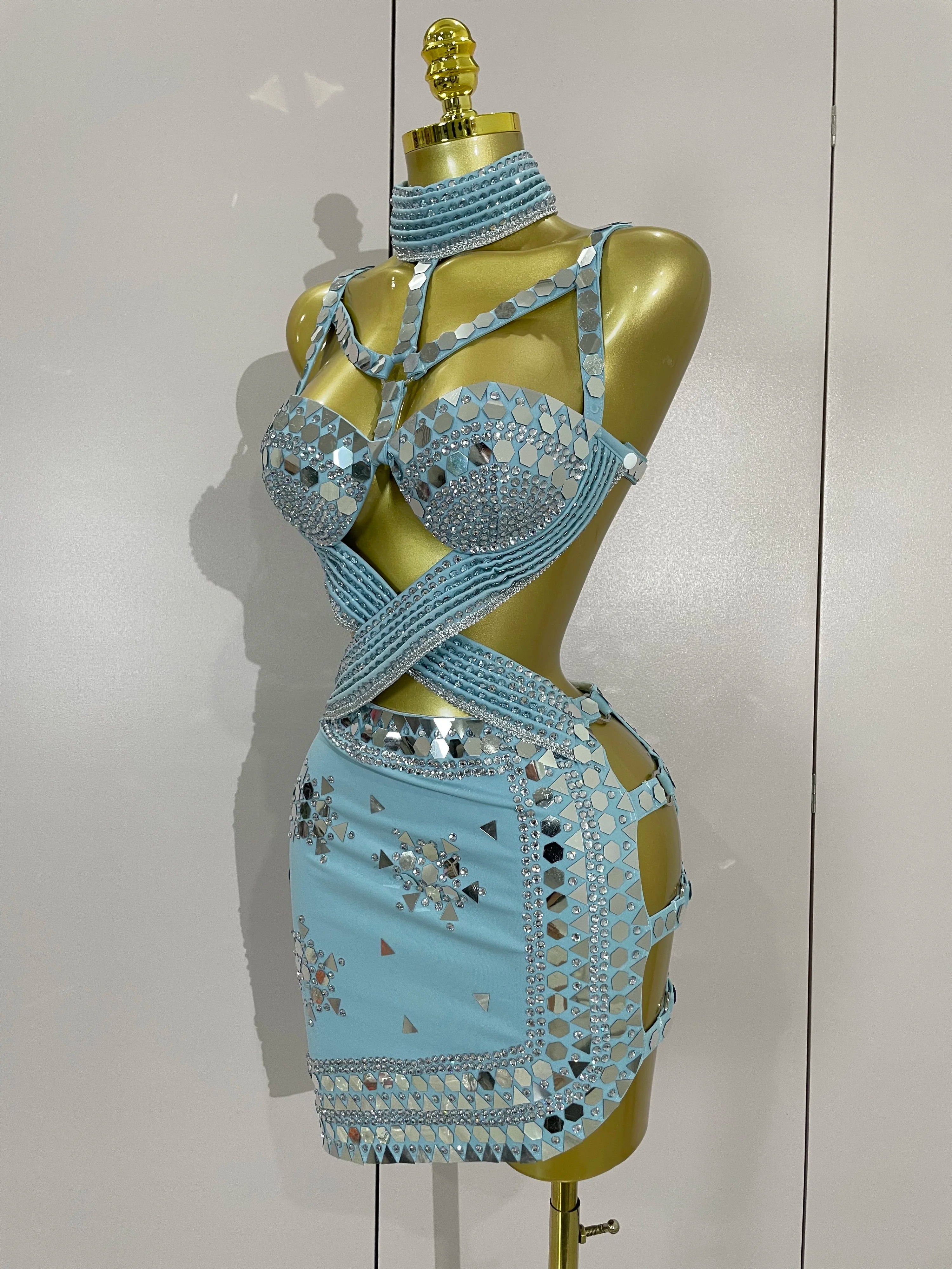 Elevate your stage presence with thisWomen’s Sparkly Rhinestone Mirror Backless Mini Dress— a high-impact, camera-ready piece designed for nightclub DJs, singers, performers, birthday parties, and show stages. Combining faceted rhinestones and polished mirror tiles on a sleek bodycon mini silhouette, this dress reflects lights and creates dramatic shimmer from every angle.
