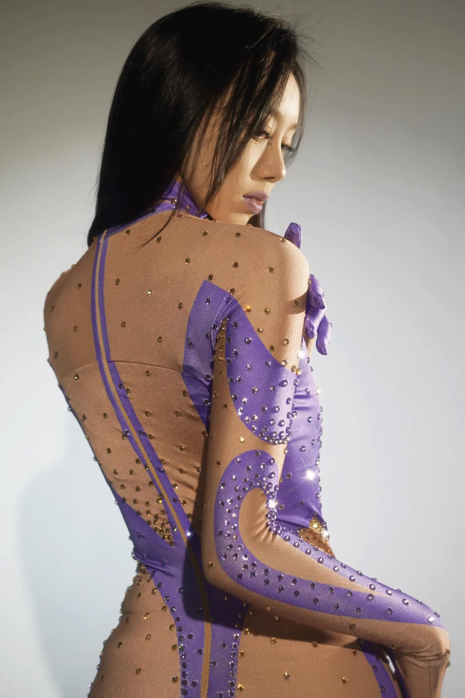 Women Sparkly Rhinestone Tights Jumpsuit Gloves Sexy Performance Costume Dance Bodysuit Party Birthday Outfit Stage Wear Daopian