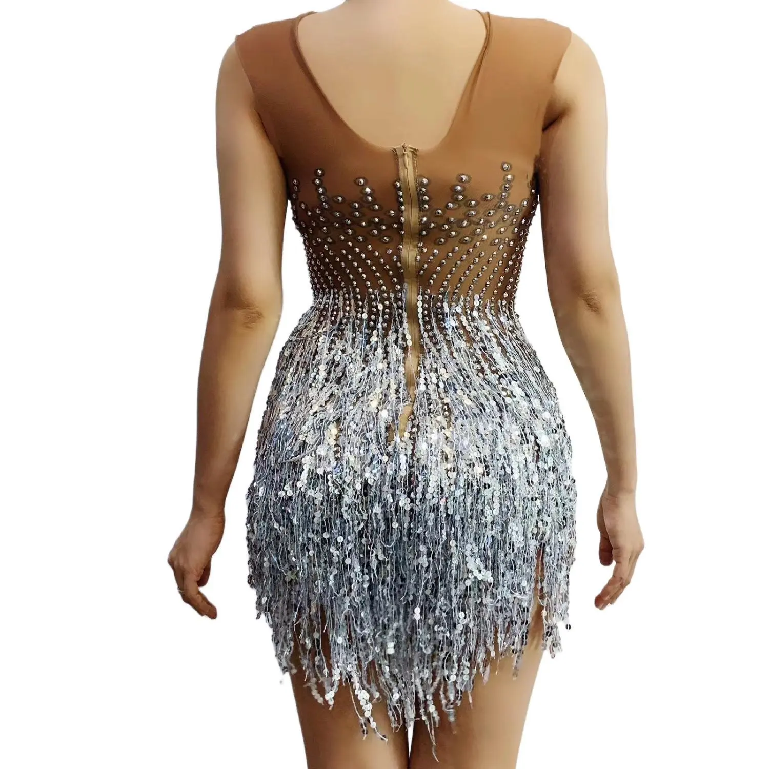 Women Sparkly Tassel Bodysuits Stage Wear Singer Dancer Latin Chacha Jazz Dress Stretch Night Club Drag Queen Costume Neimenggu