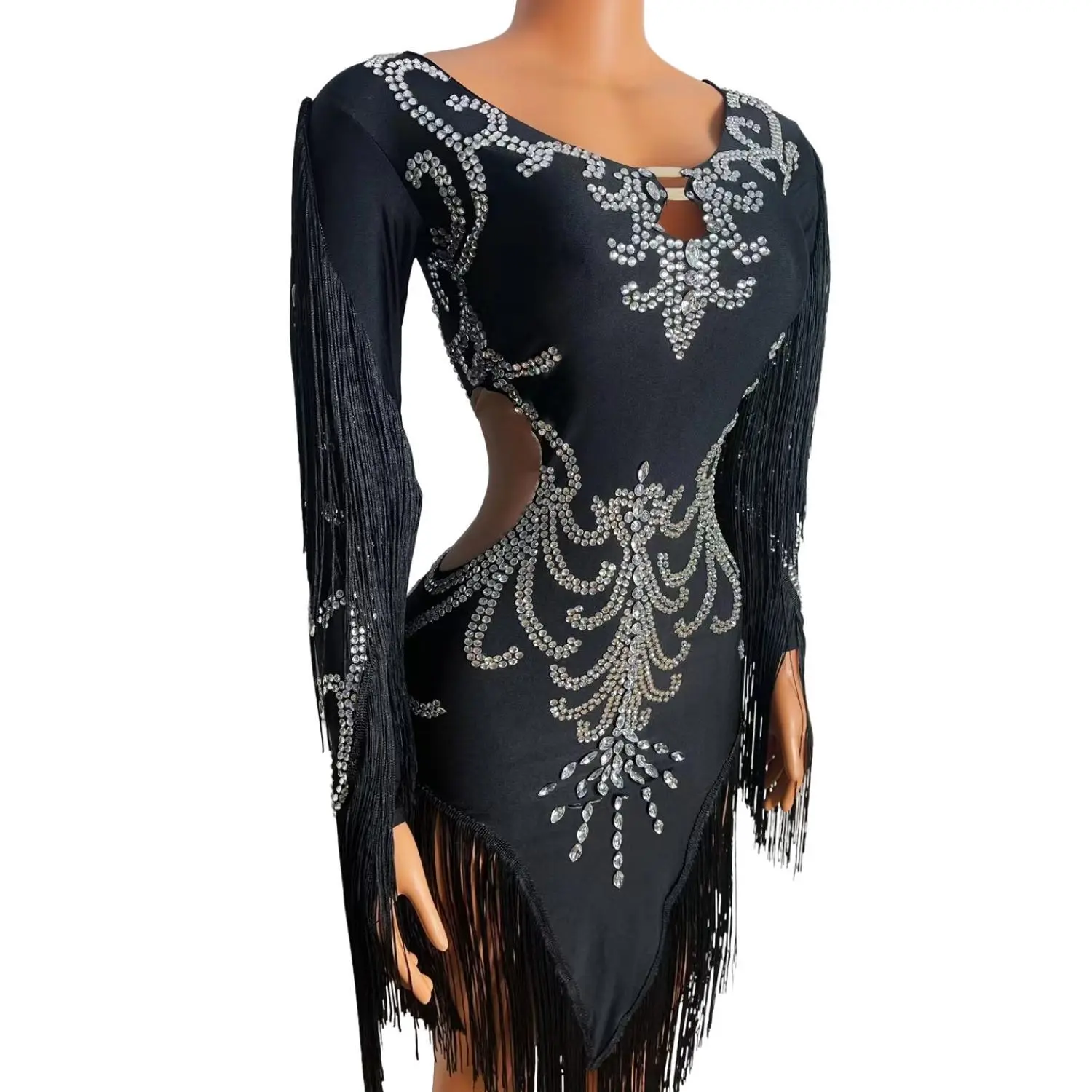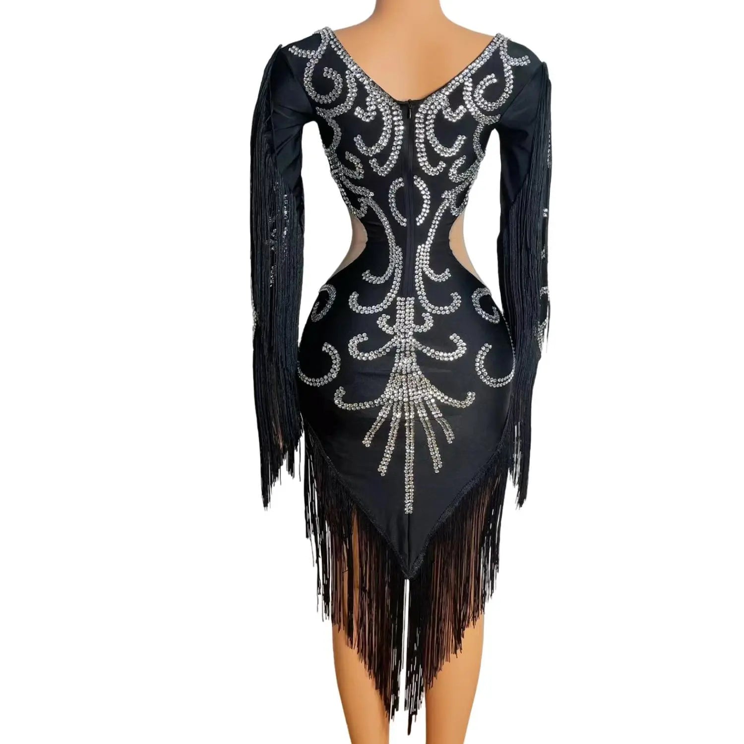 Women Stage Performance Costume Carnival Rave Festival Rhinestone Tassel Dresses Drag Queen Outfit Star Dancer Singer Heilong