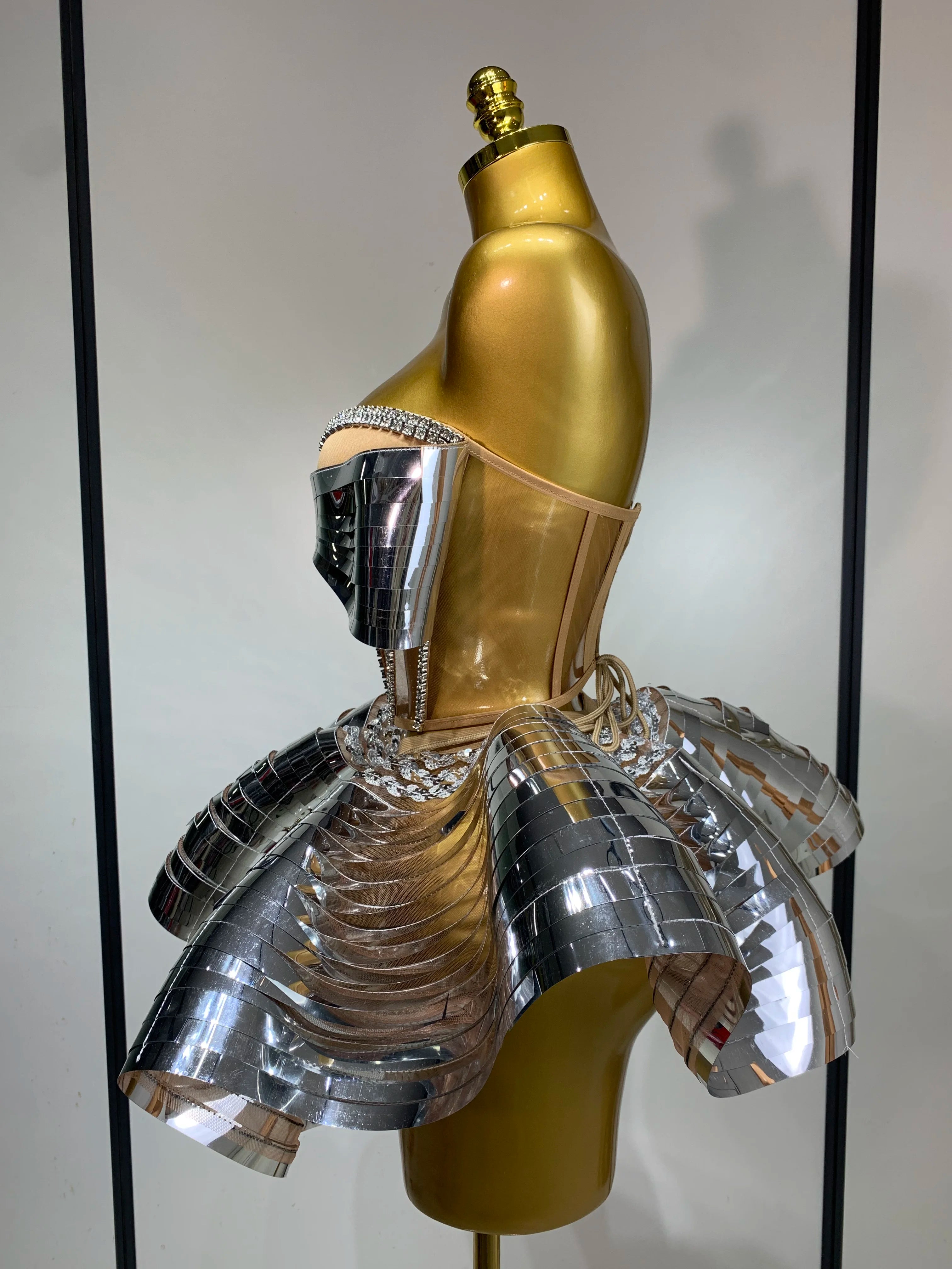 Women Stage Performance Costume Two Piece Set Silver Sequins Rhinestone Fancy Outfit Sexy Backless Shiny Birthday Party Dresses