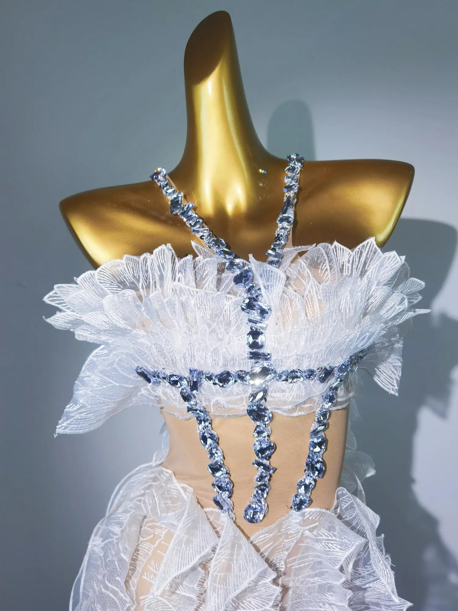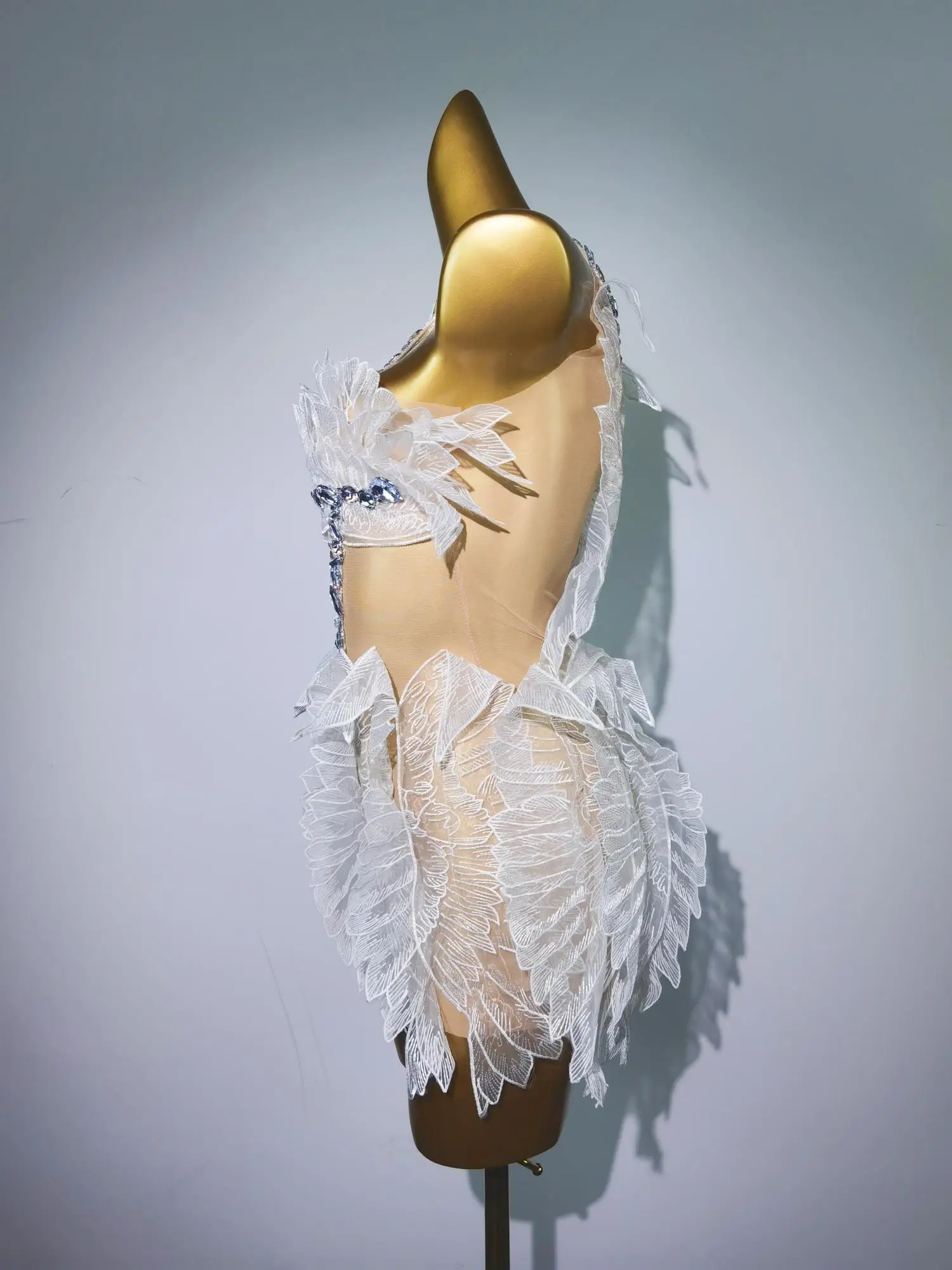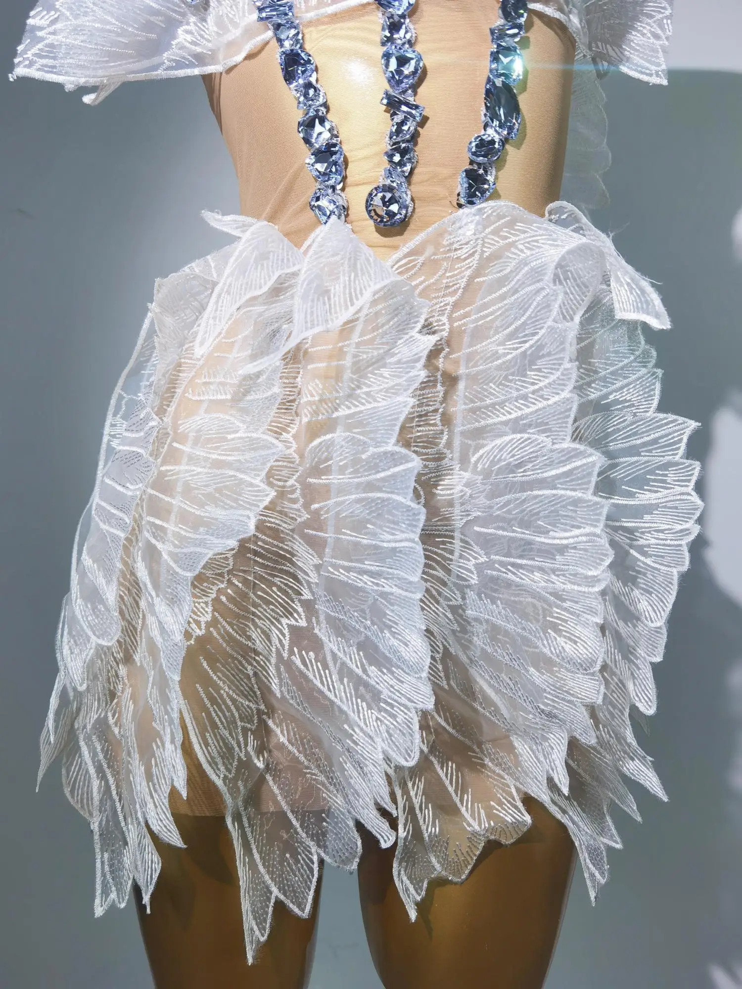 Women White Gold Crystal Transparent Wings Mini Dress Sexy Bar Nightclub Party Singer Stage Performance Costume Baichan