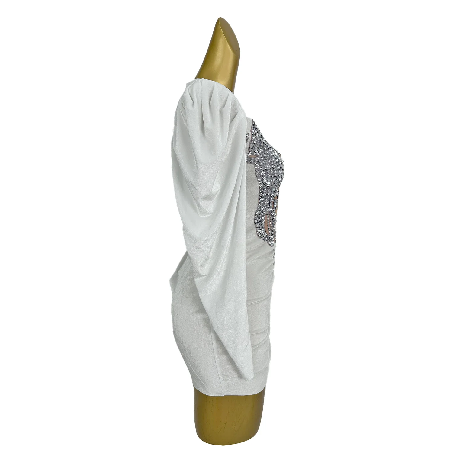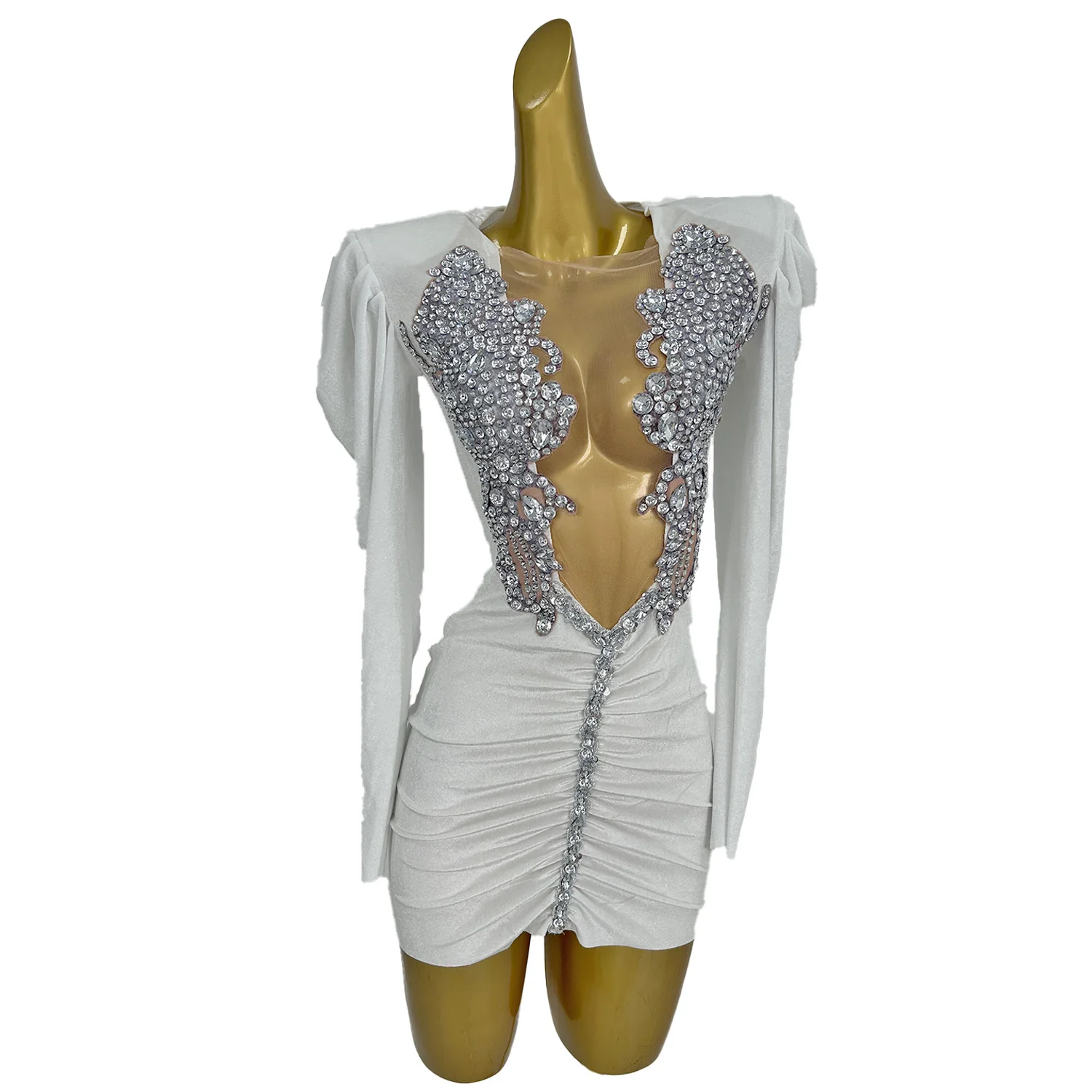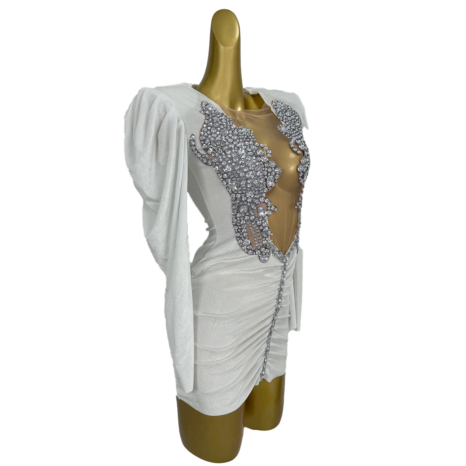 Women White Short Mini Dress Diamonds Velvet Dress Sexy Birthday Queen Dresses Stage Wear Performance Drag Costume Baiyueguagn