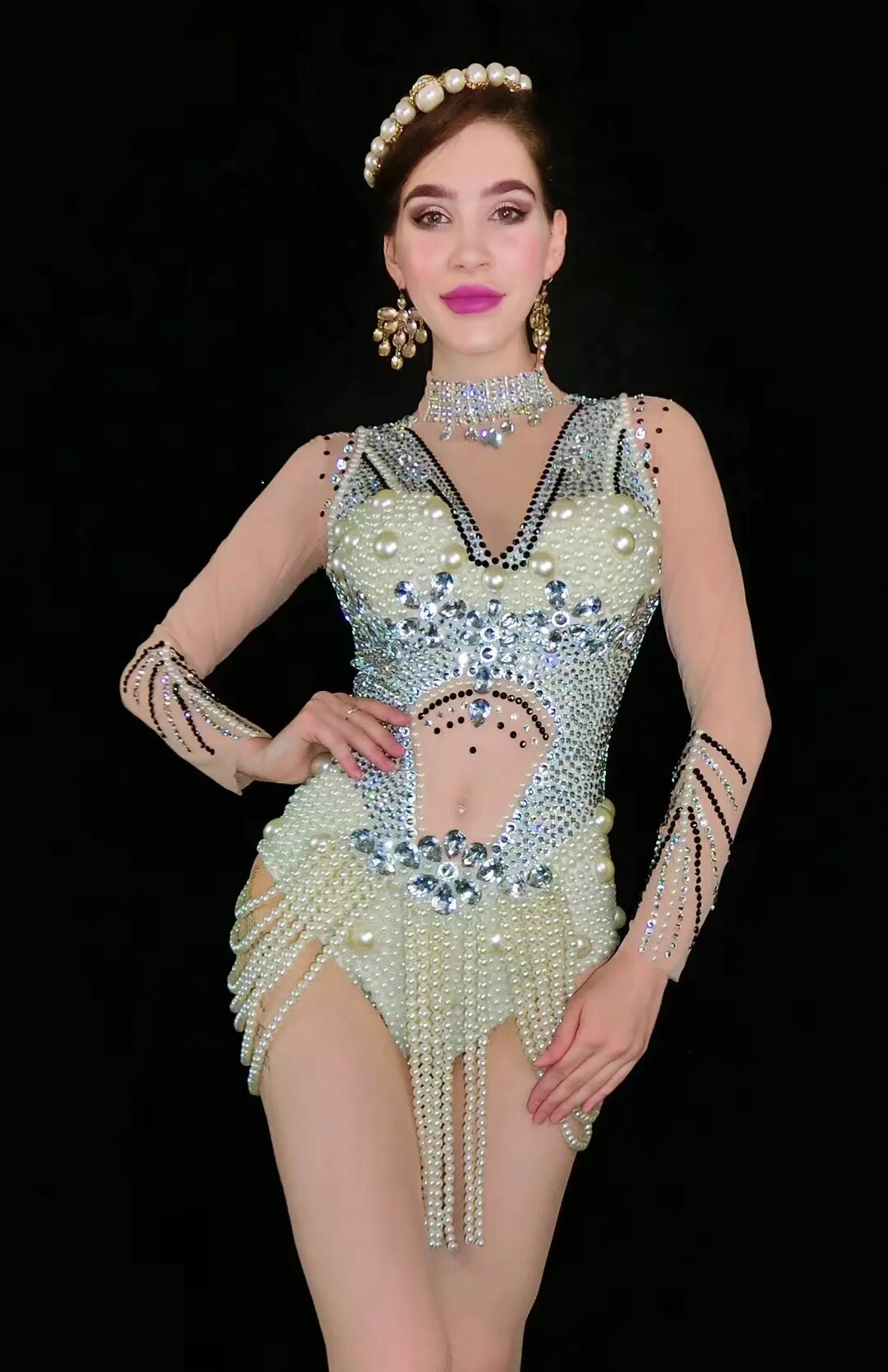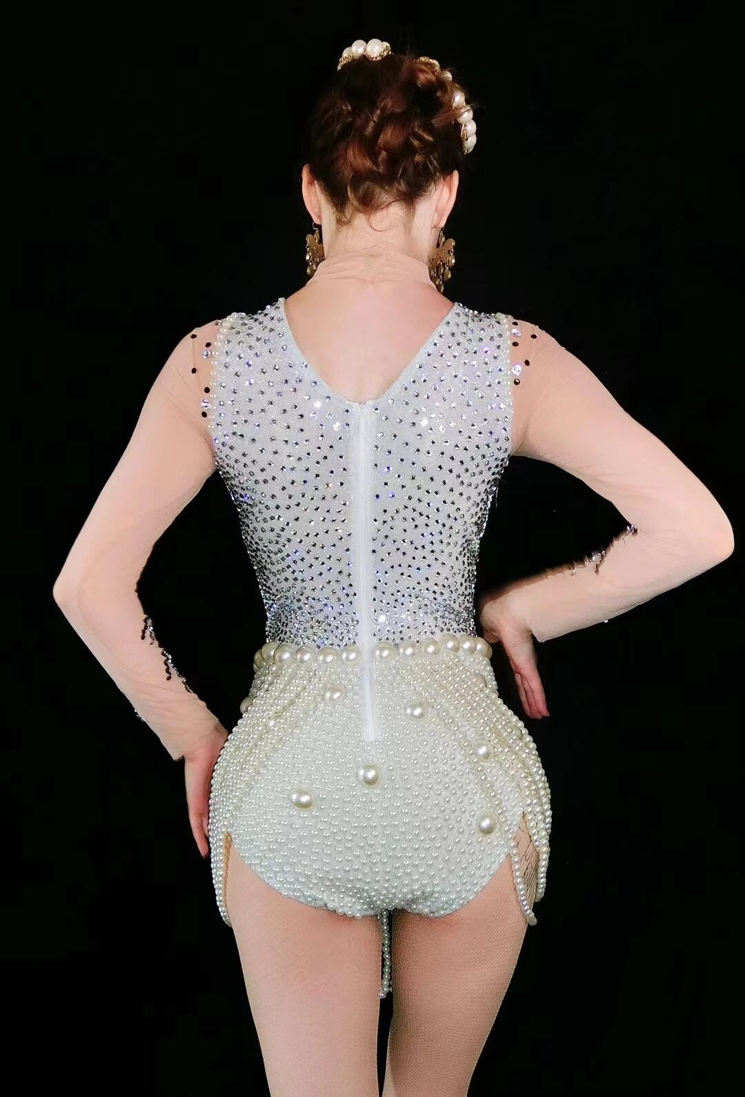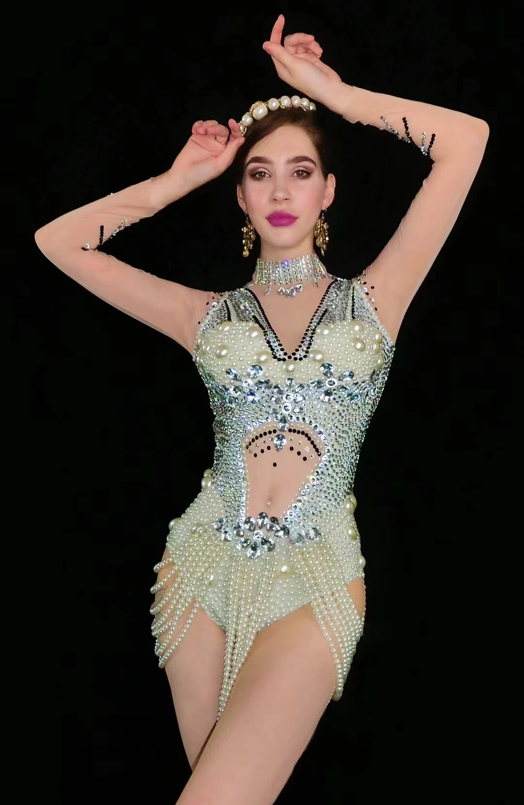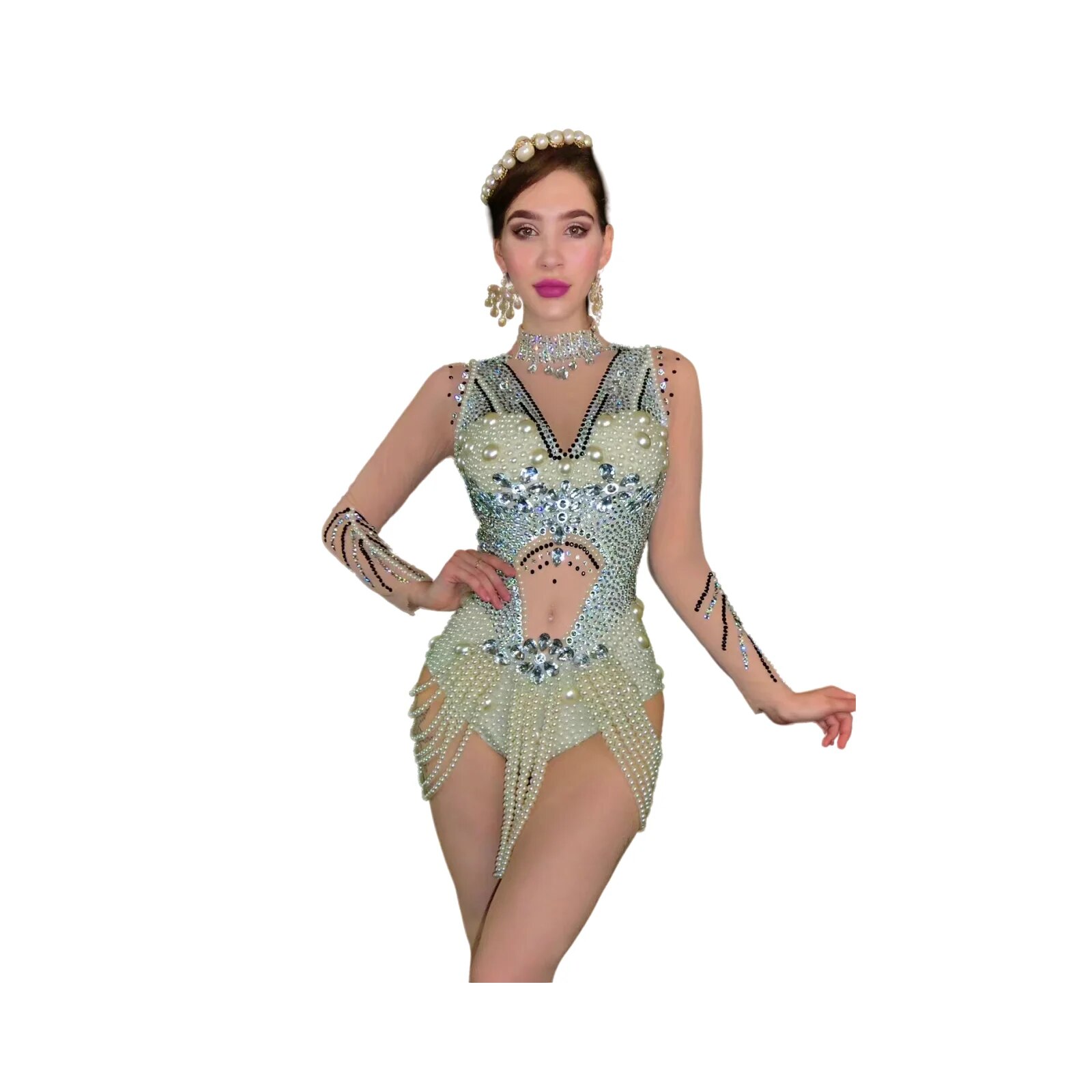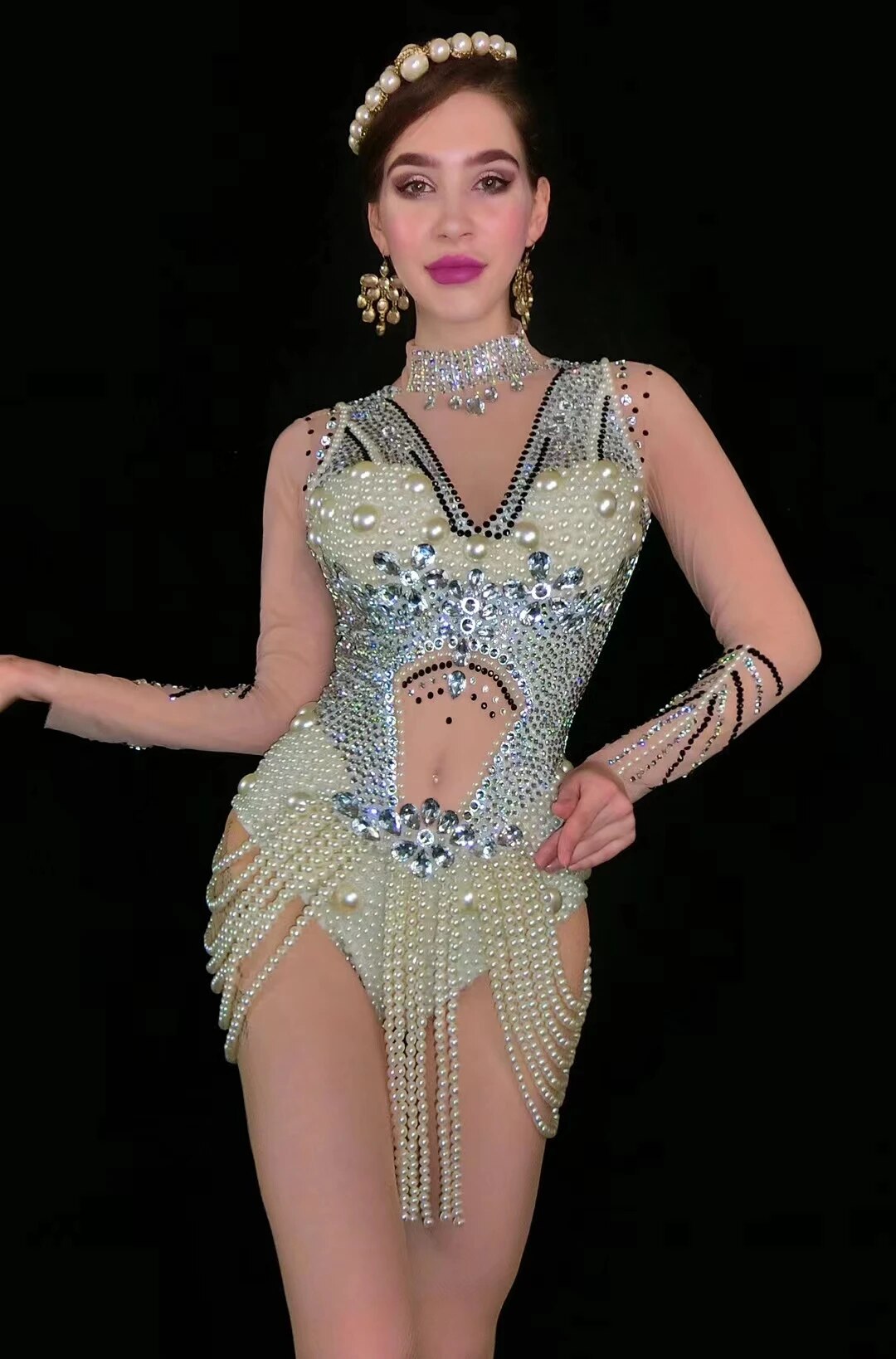 Women's Birthday Celebrate Party Dress EveningBar Stage Outfit Singer Dance Costume CustomSparkly Pearls Rhinestones Bodysuit
