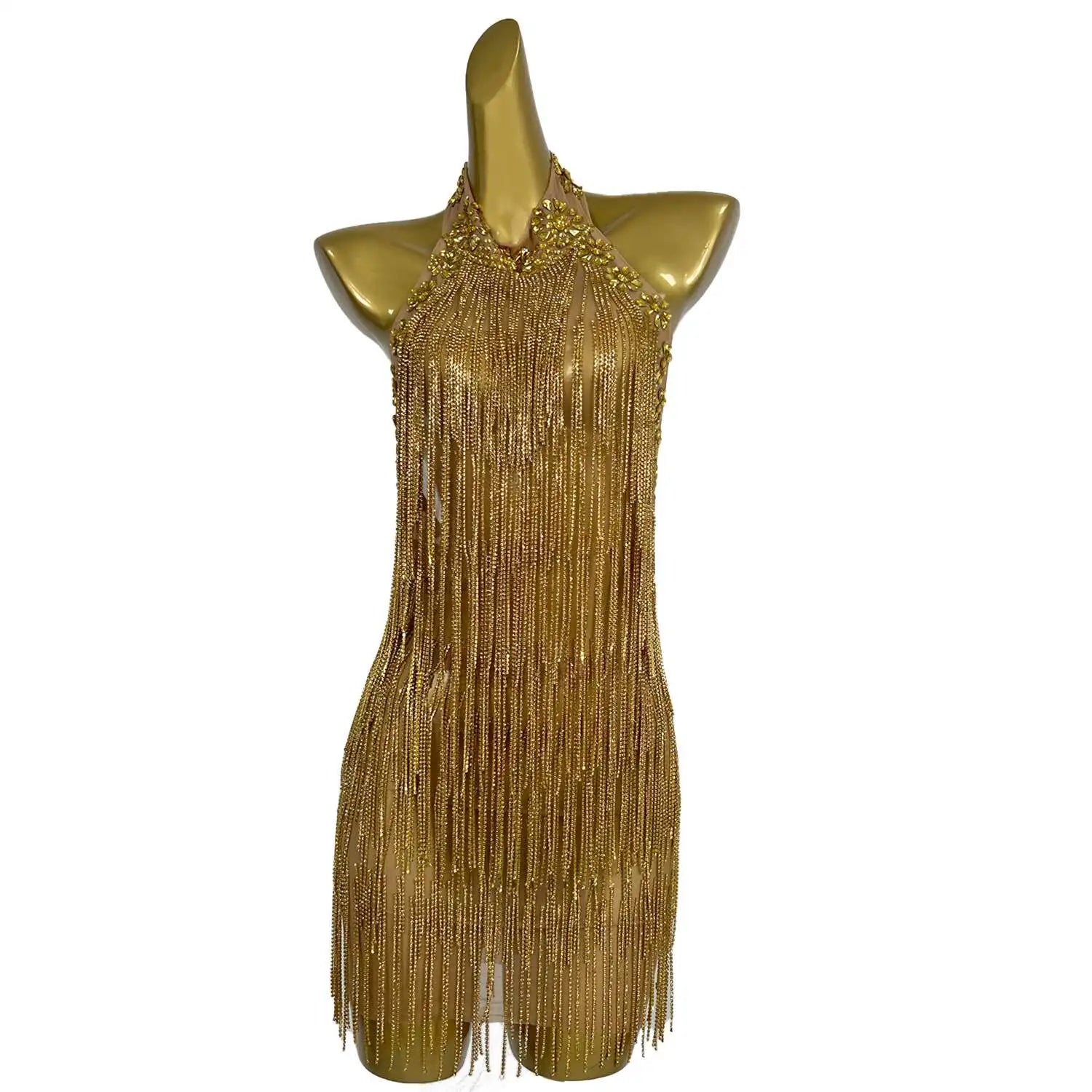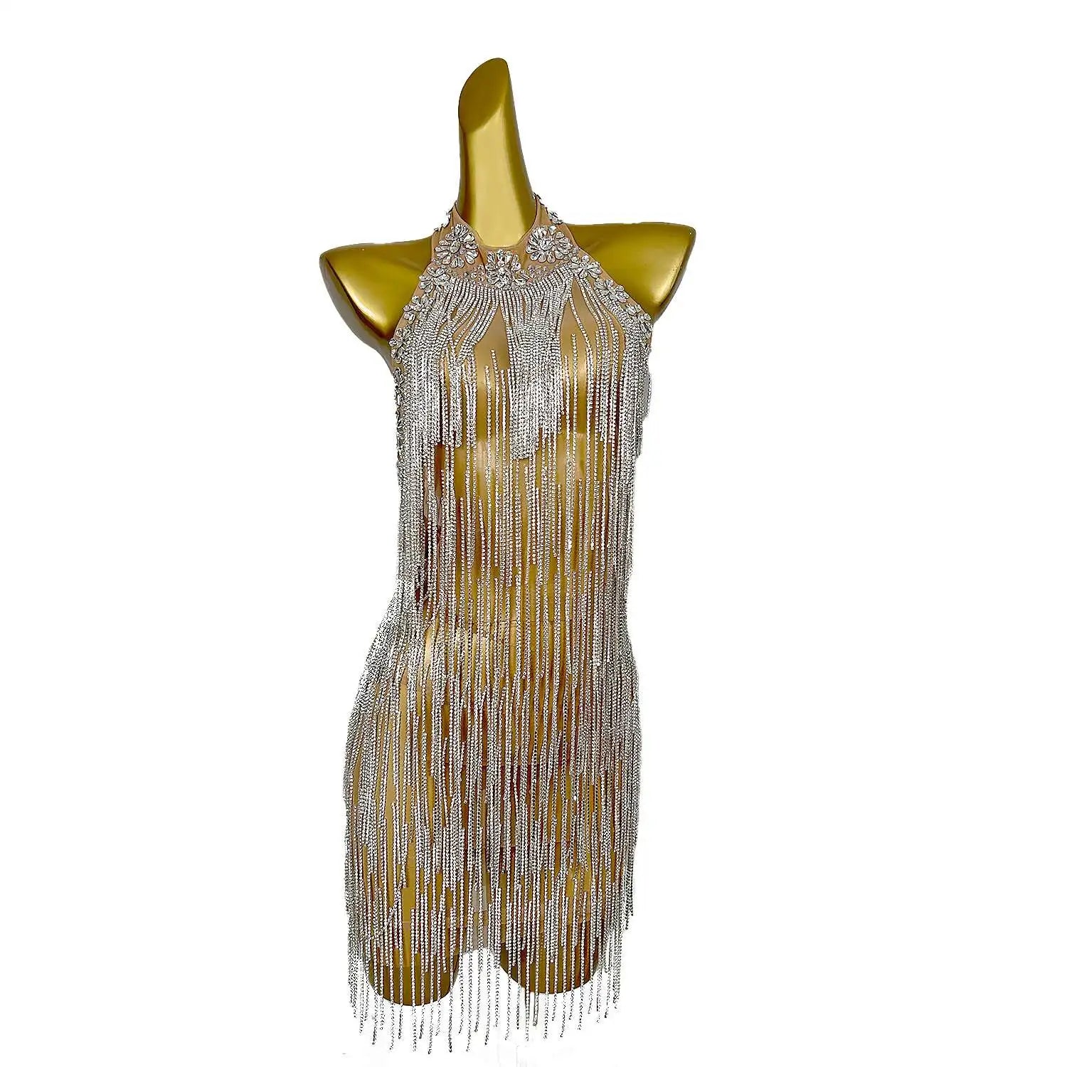 Women's Clothing Sexy Backless Mini Elegant Dresses Women Diamond Tassels Gown Evening for Dinner Party Dresses