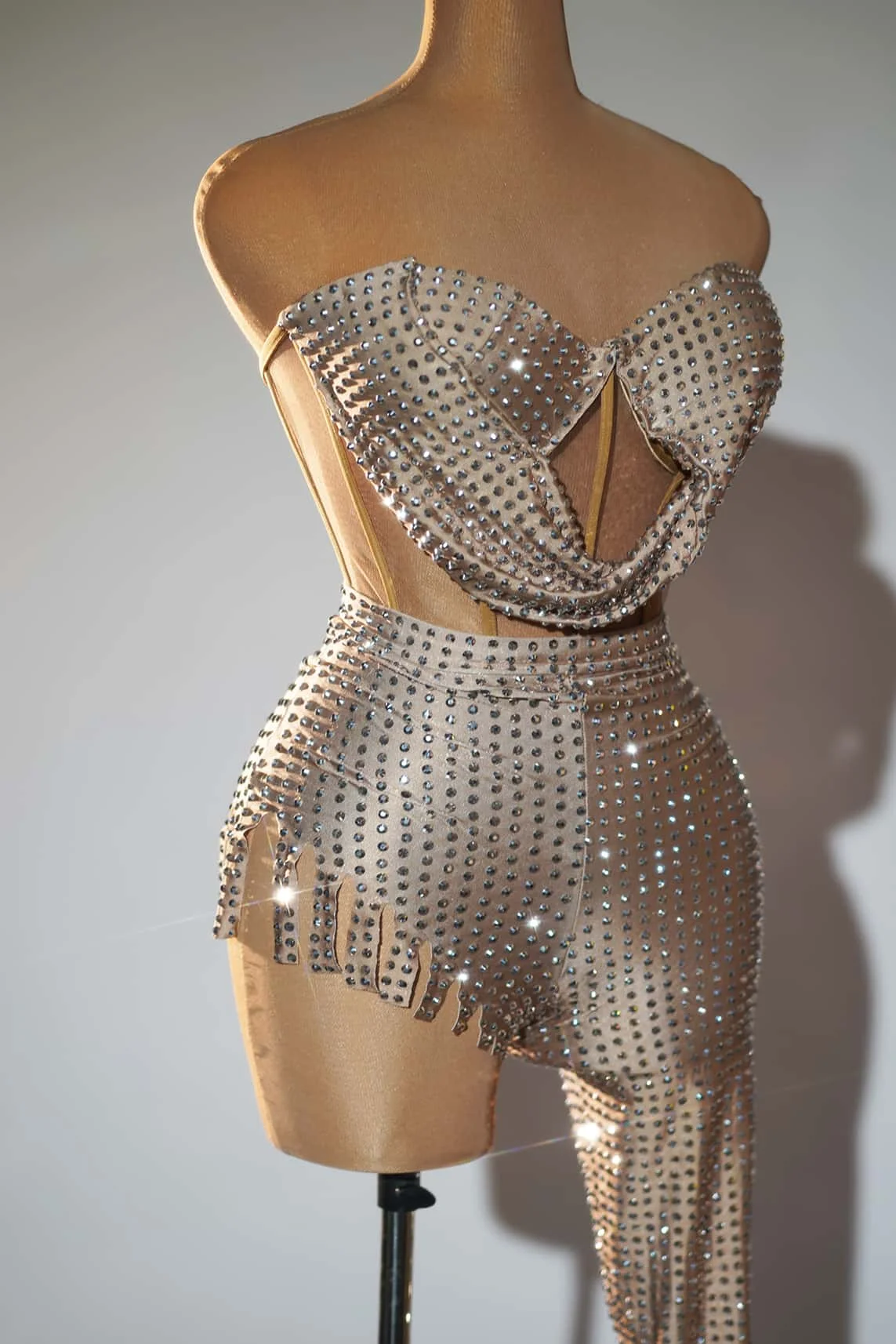 Women's Diamonds Backless Top+Pants 2-Pc Set Evening Party Nightclub Stage Outfit Designer Performance Celebrate Costume Qigai