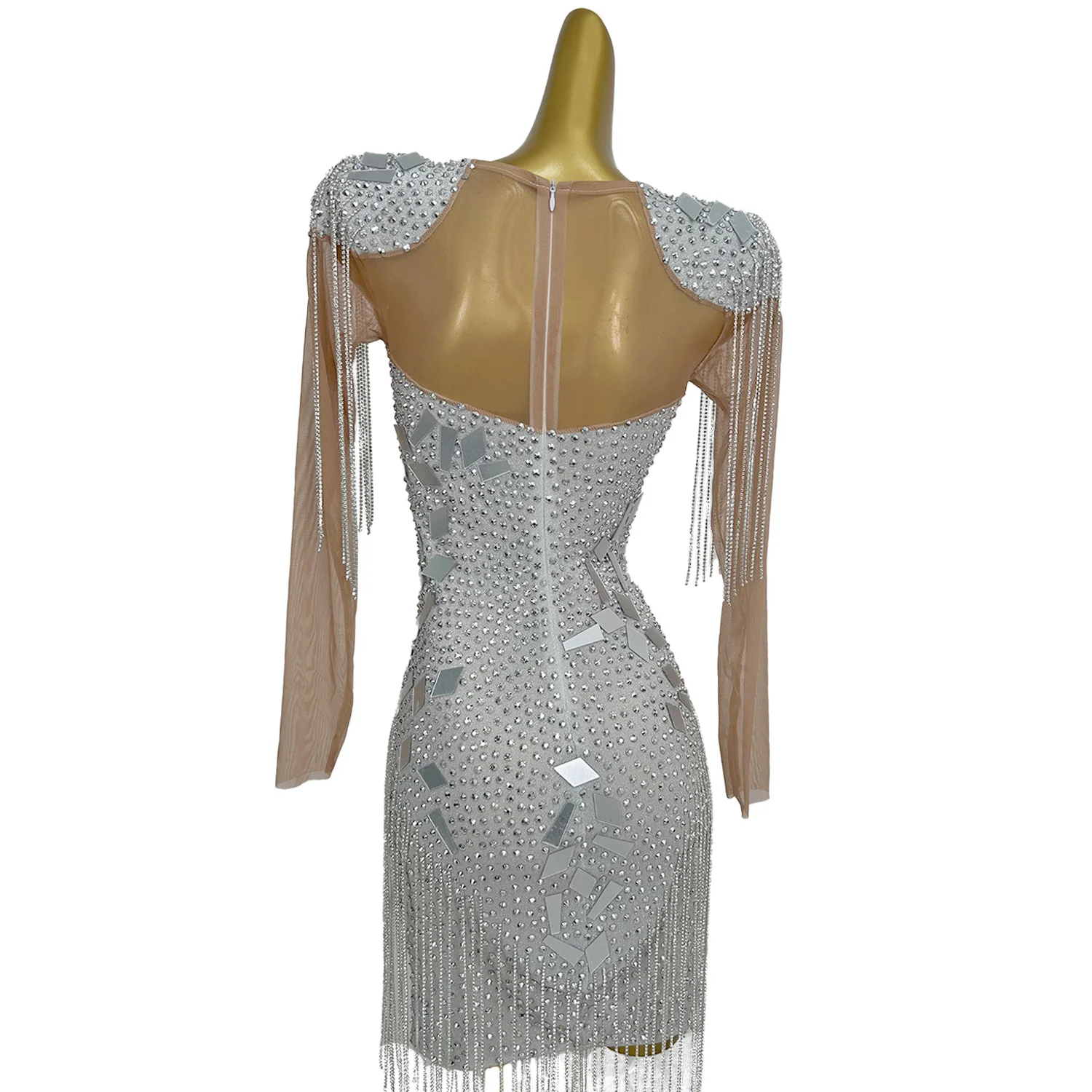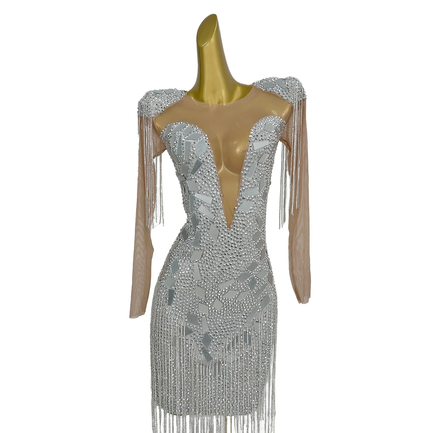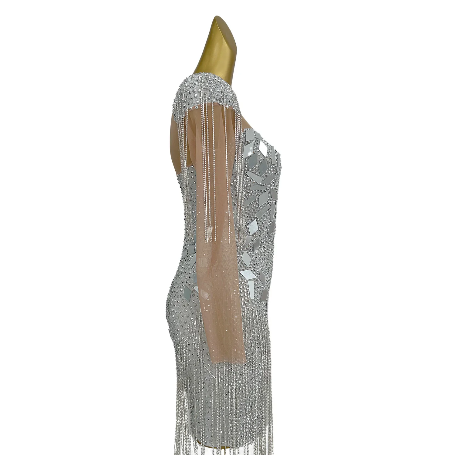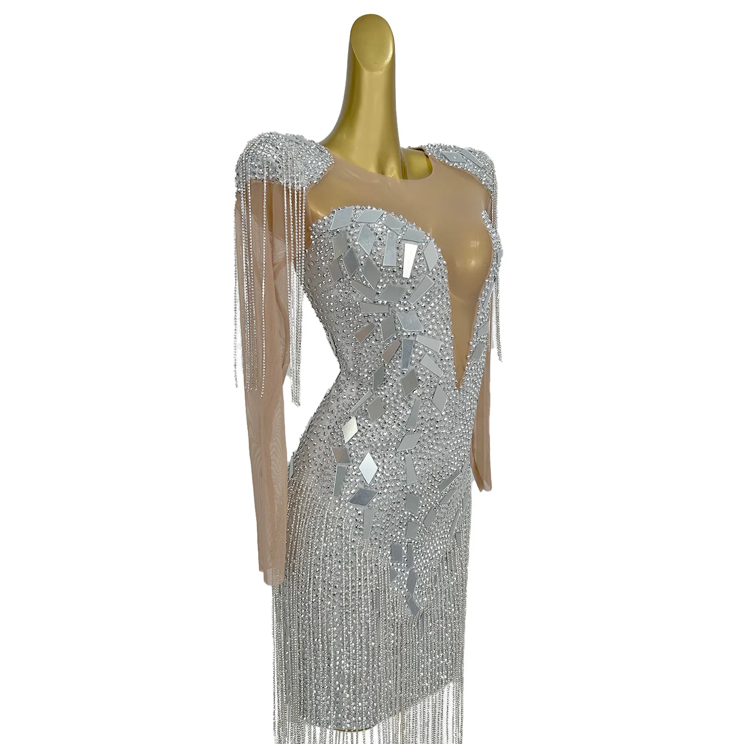 Women's Diamonds Dress Shoulder Pads Tassel Mirror Willow Nail Wrap Hip Skirt Girl Holiday Party Wedding Banquet Dress Yintai
