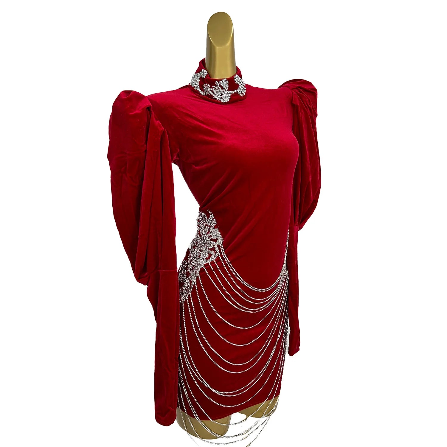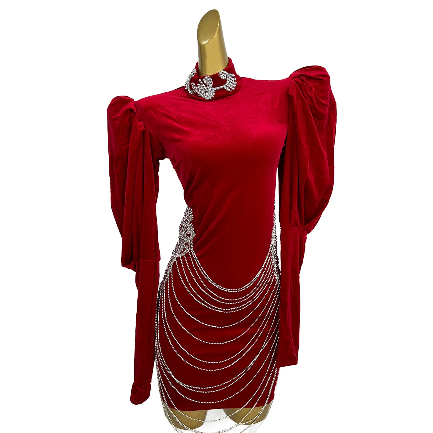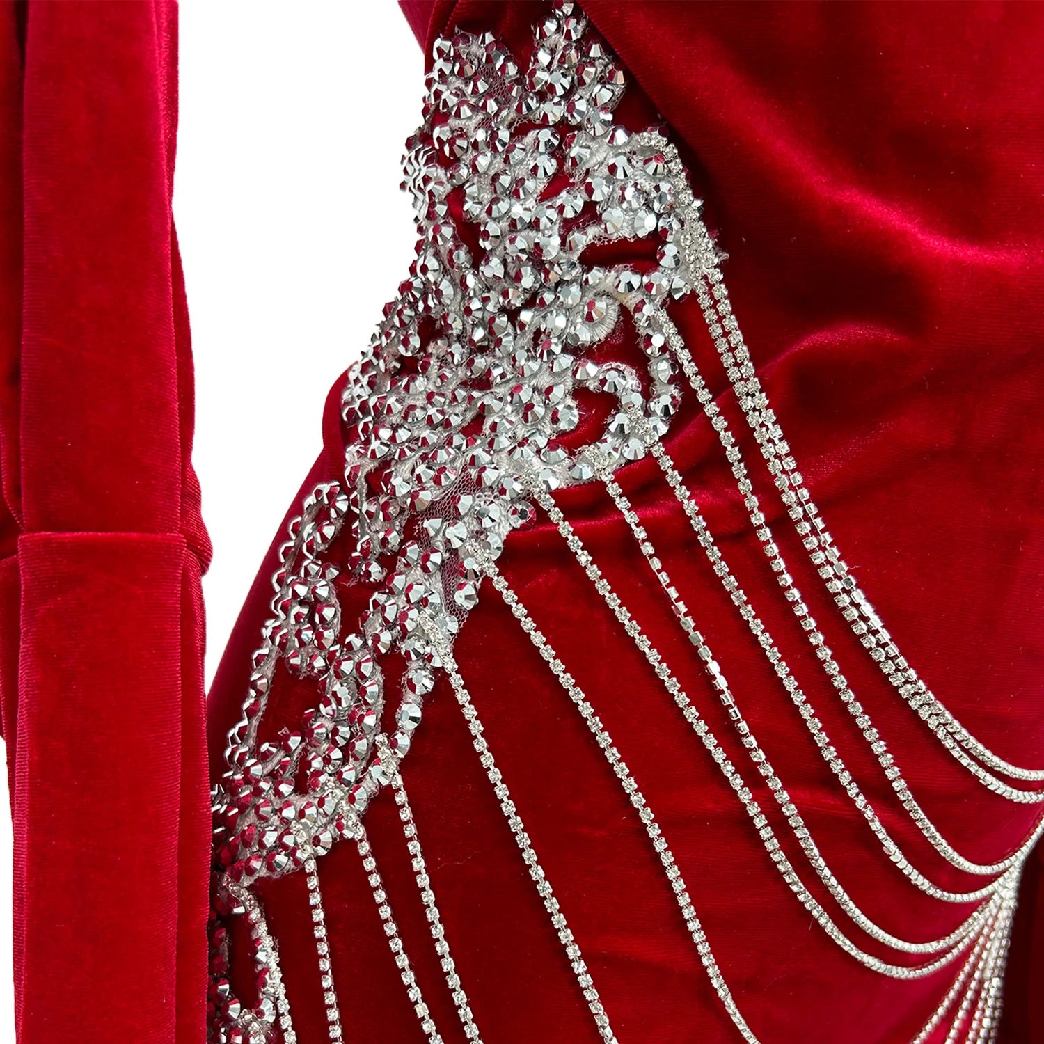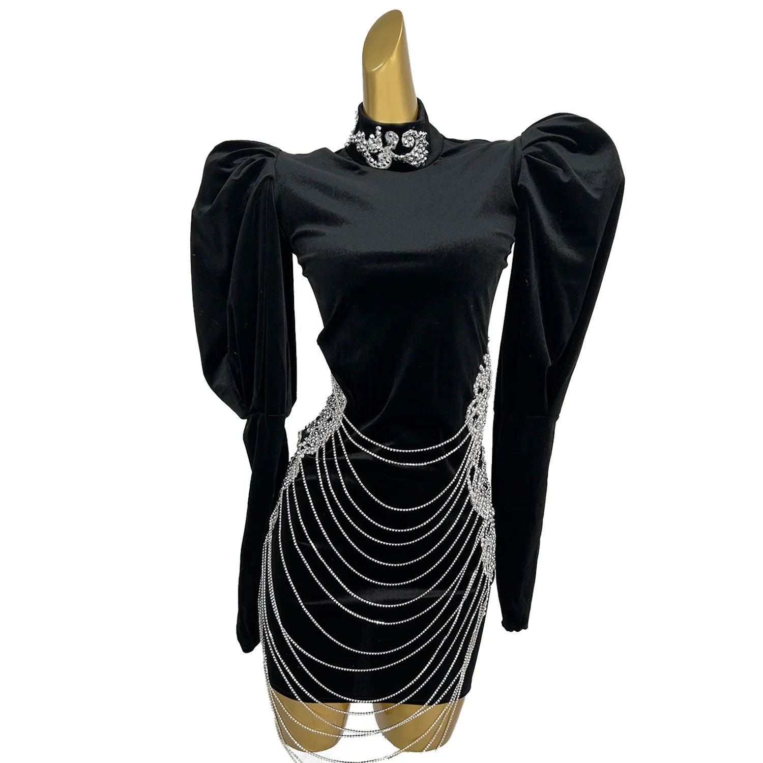 Women's Luxurious Celebrate Birthday Party Evening Dress Sparkly Rhinestones Chains Sexy Photography Show Stage Wear Yuehei