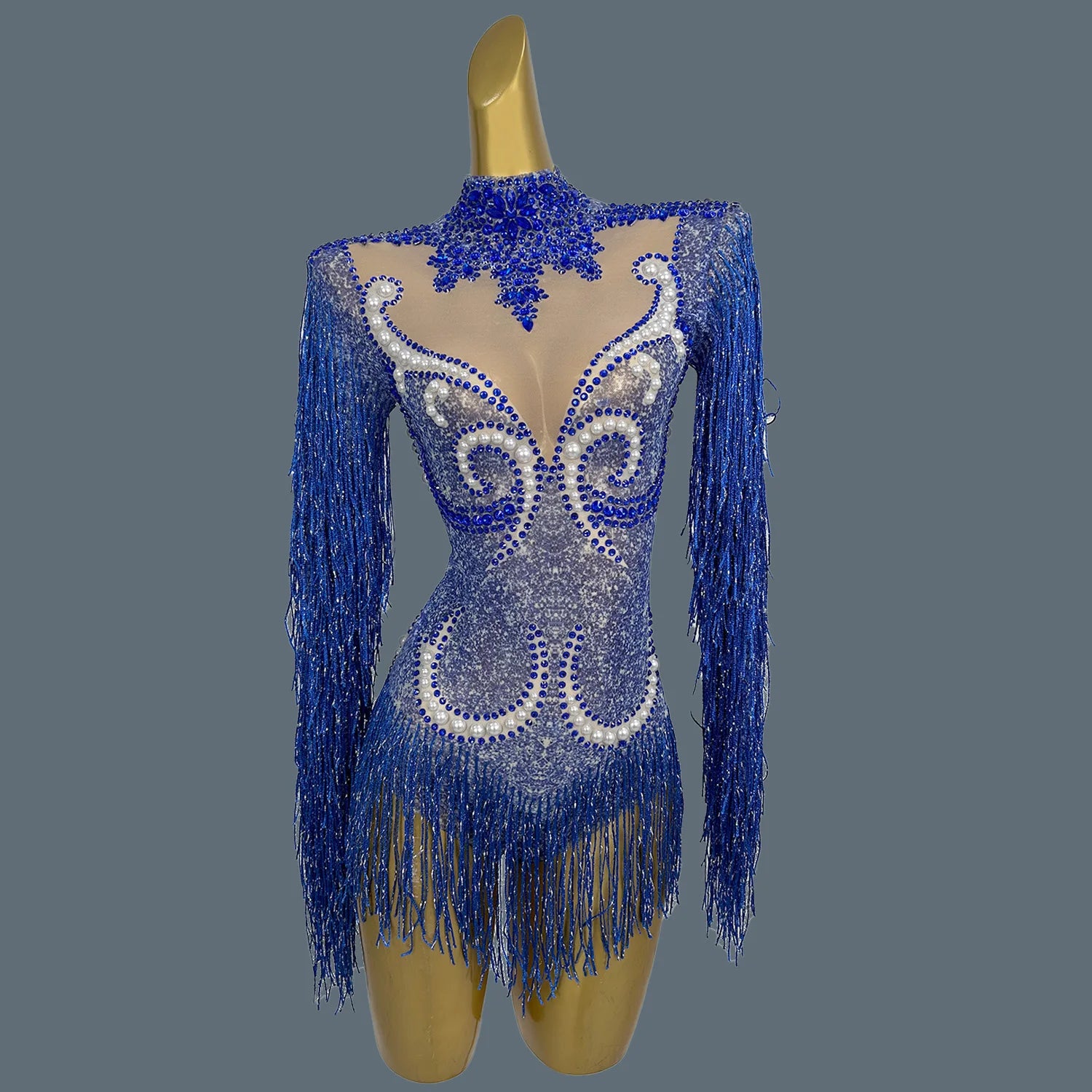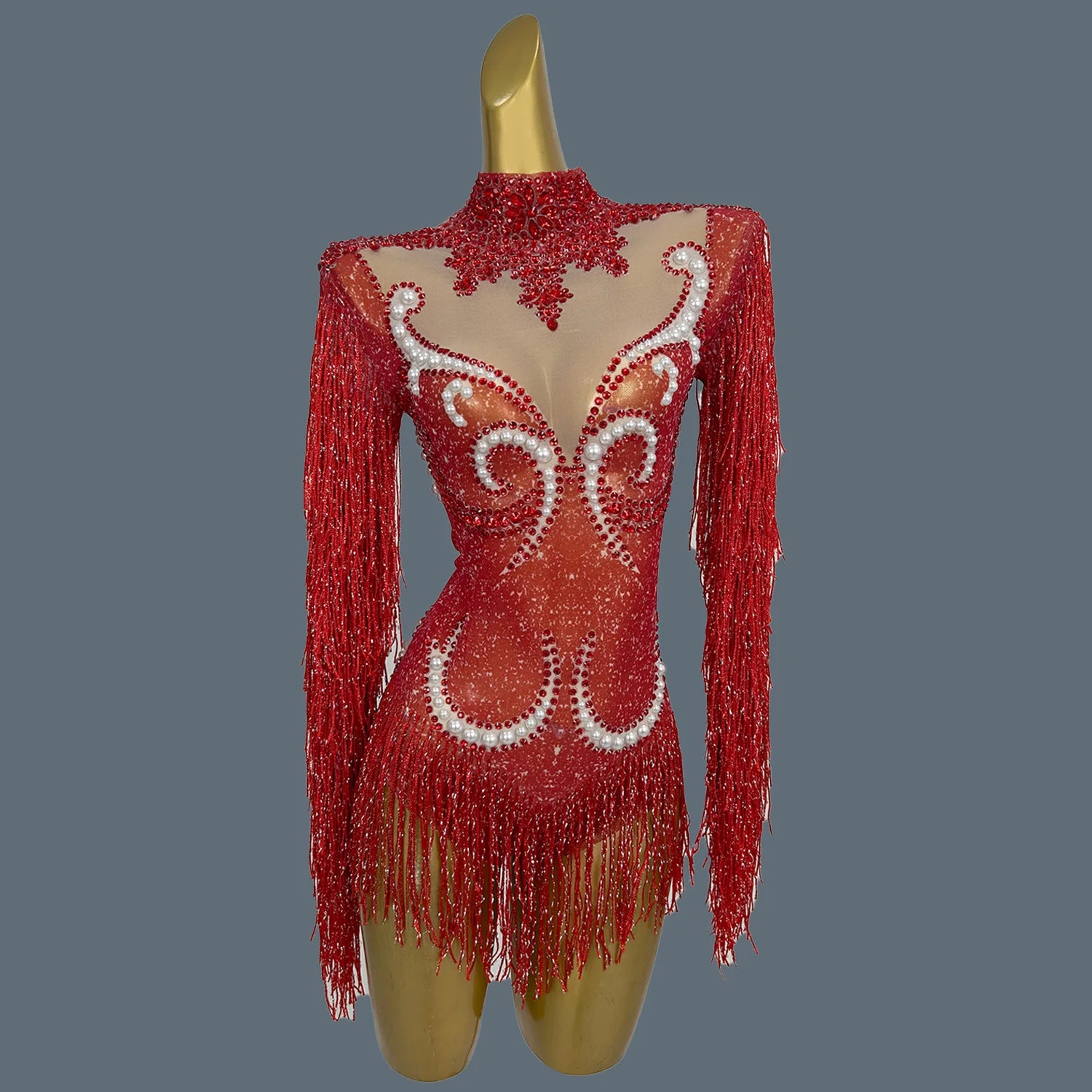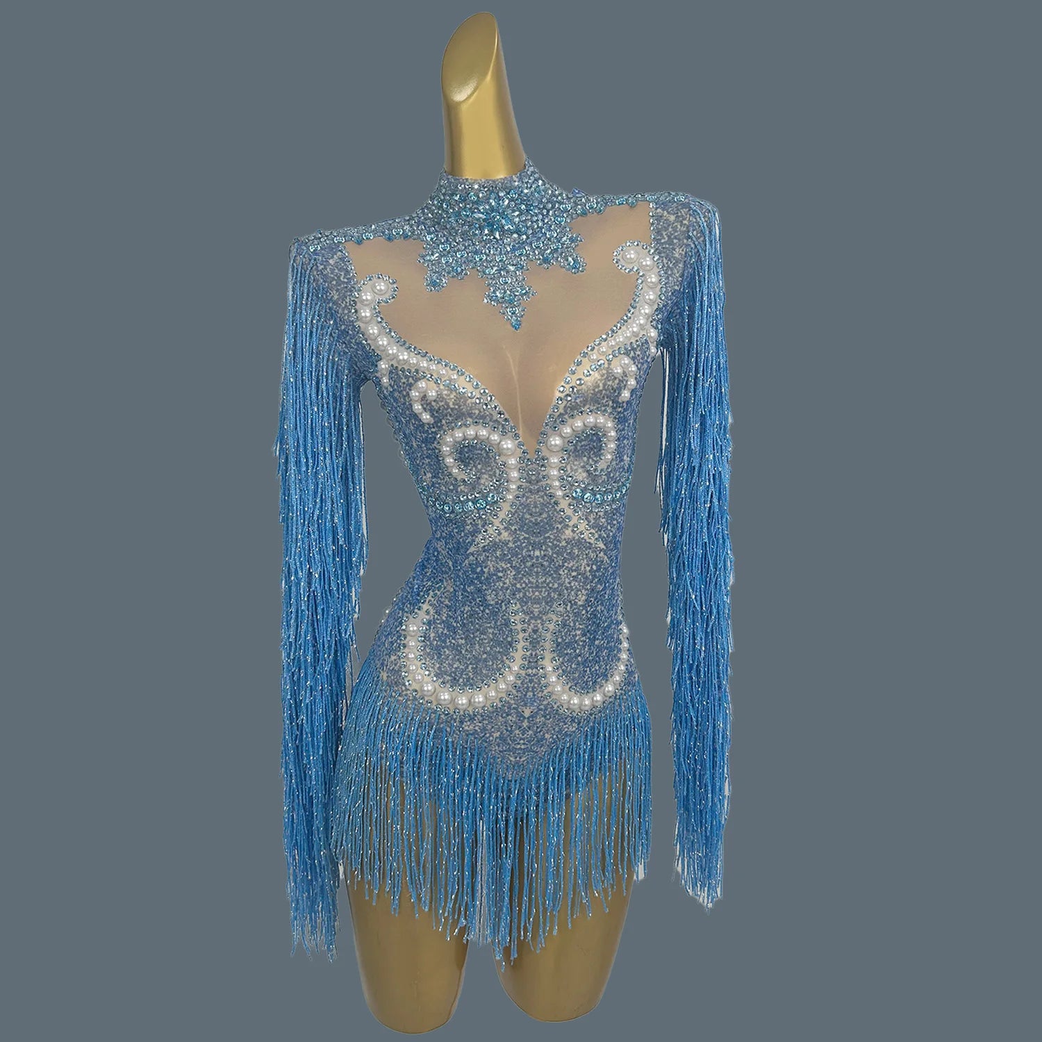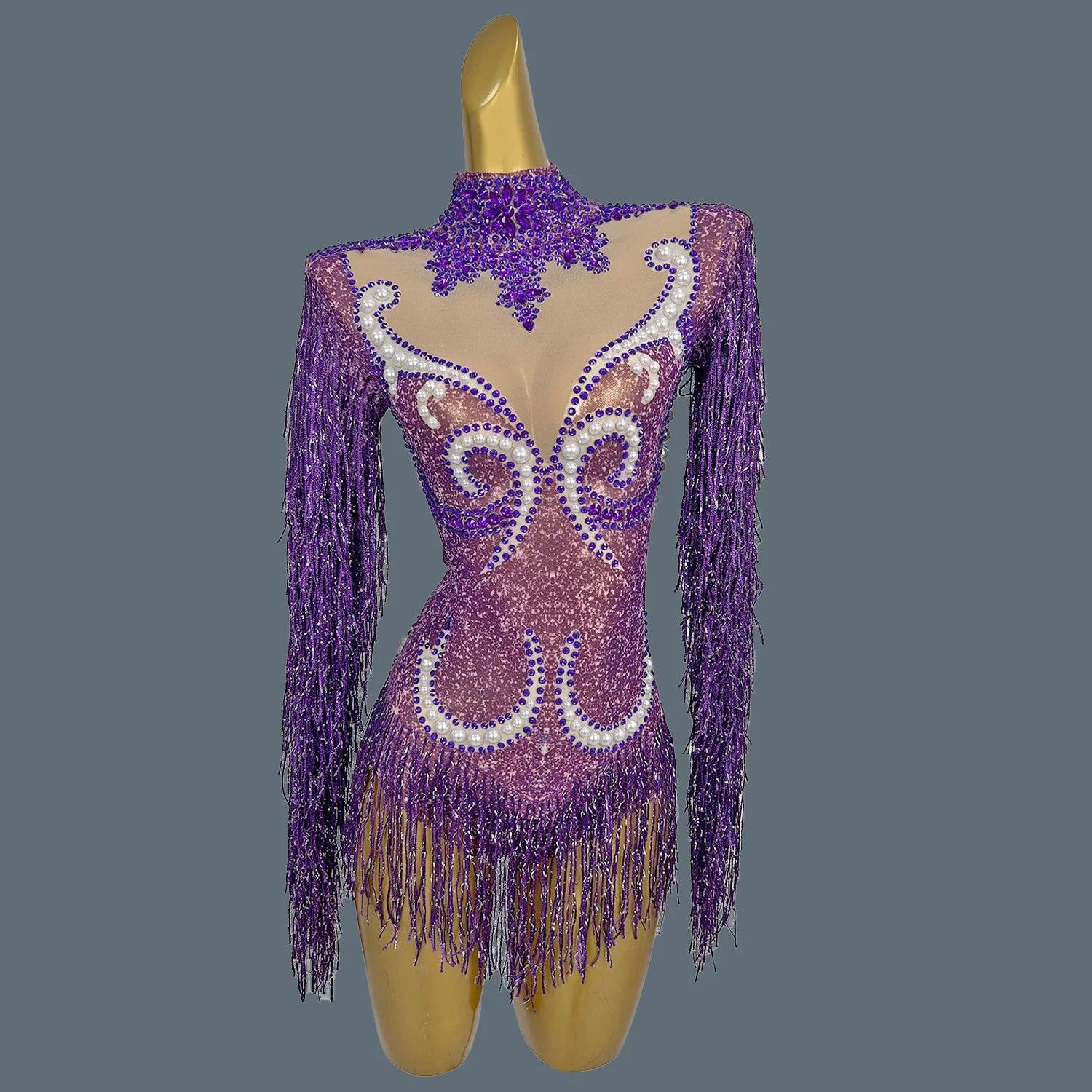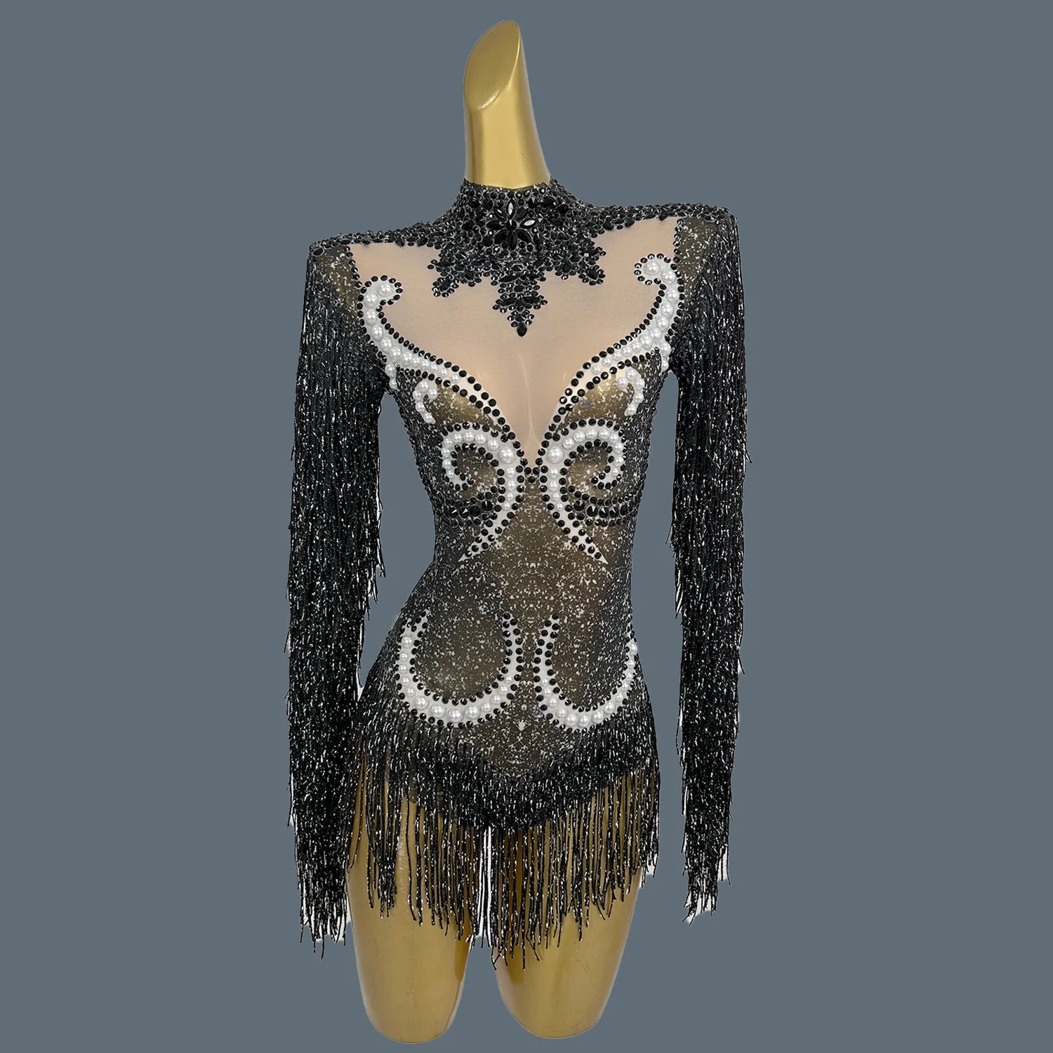Elevate your stage presence with this stunning women's pearls bodysuit, designed for performers who want to shine. Featuring elegant rhinestones and chic fringes, this long-sleeve dance leotard is perfect for singer performances and night club events. This eye-catching outfit combines glamour and sophistication, making it an ideal choice for captivating audiences wherever you go.