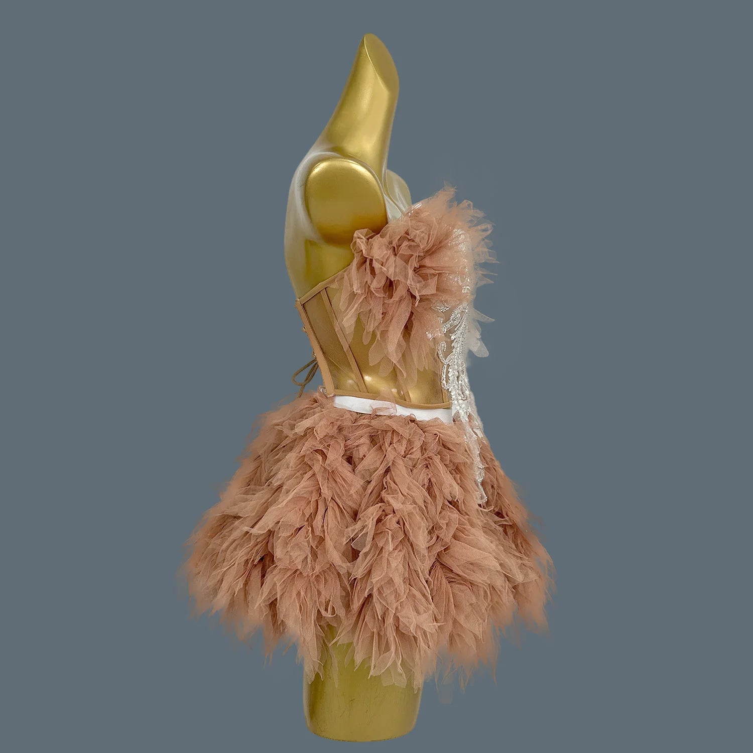 Make a captivating impression with this Young Lady Stage Performance Dress Set! This elegant 2-piece ensemble features a sexy sheer design and a ballet skirt that beautifully flows with your movements. Perfect for prom, club parties, or evening events, the strapless dress enhances your silhouette, ensuring you look stunning all night long. Step into the spotlight and shine in this exquisite outfit that combines sophistication and allure!