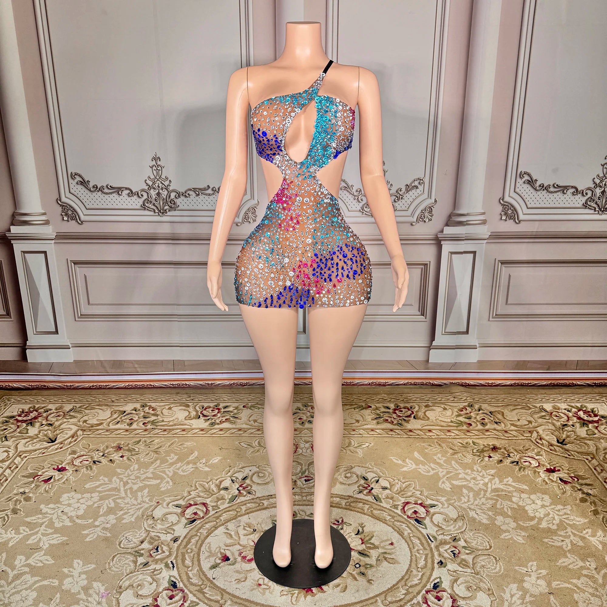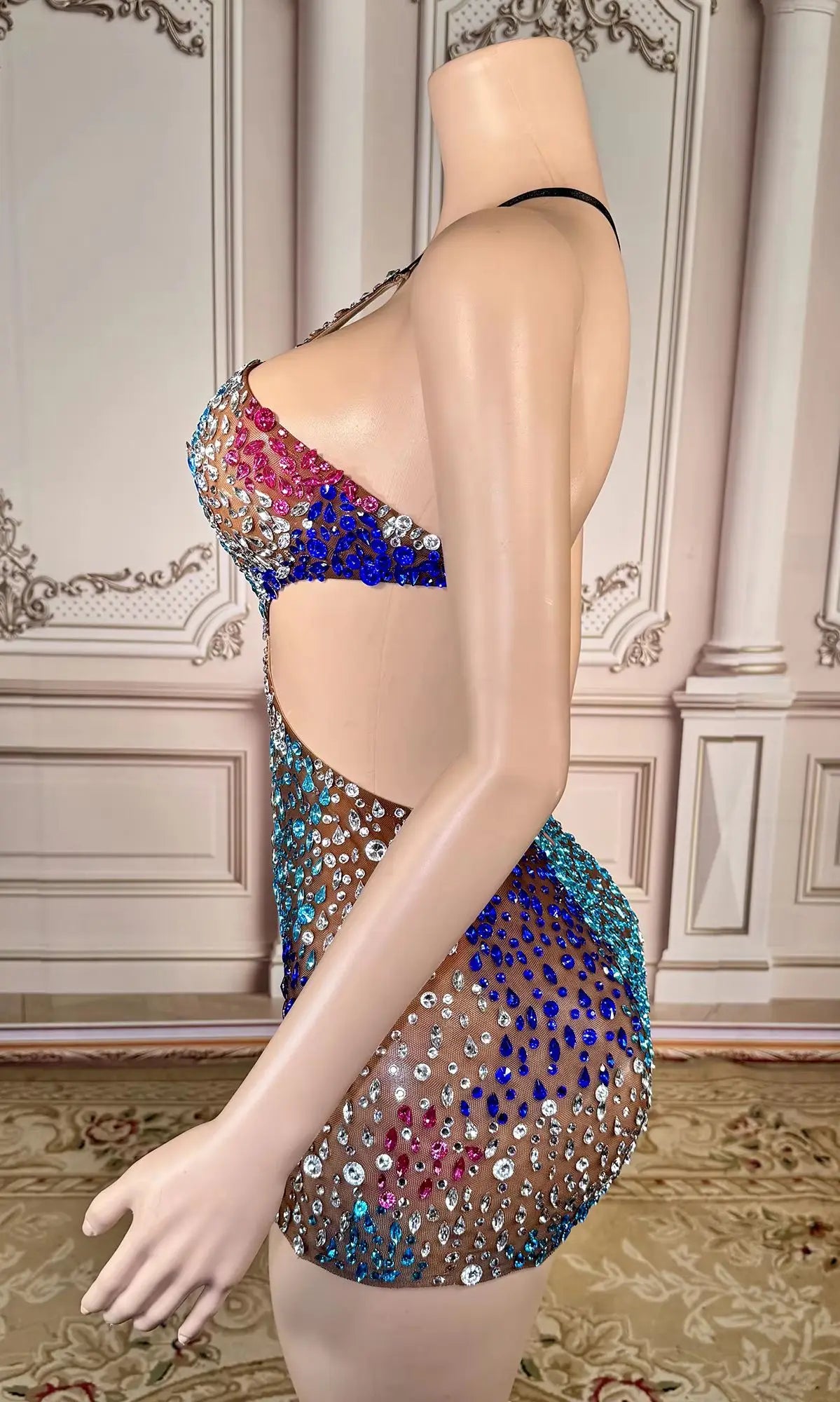 Sexy Transparent Rhinestone Sleeveless Mirror Mini Dresses Birthday Party Outfit