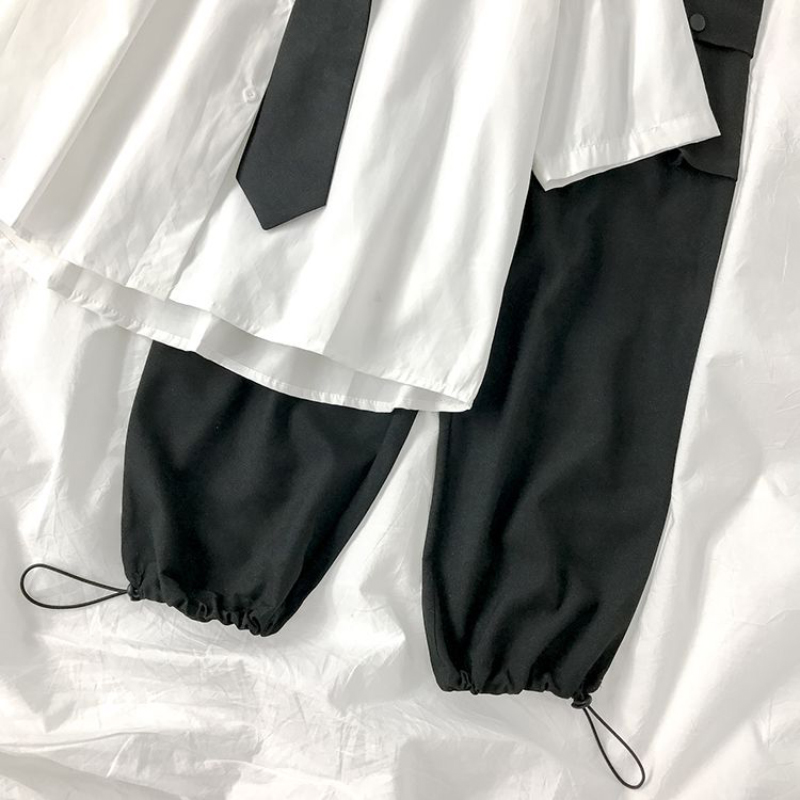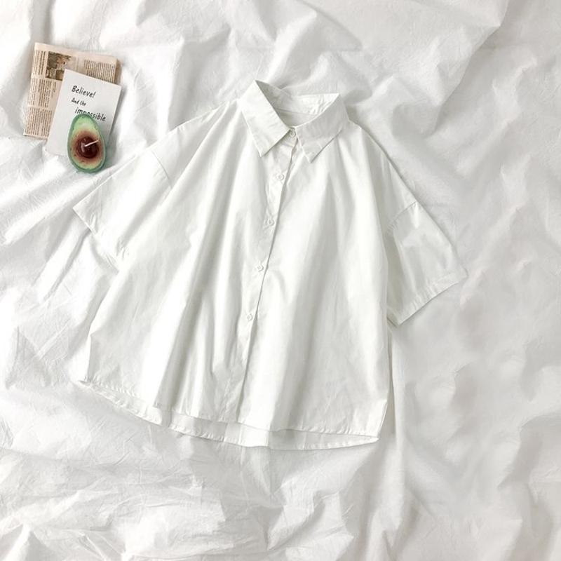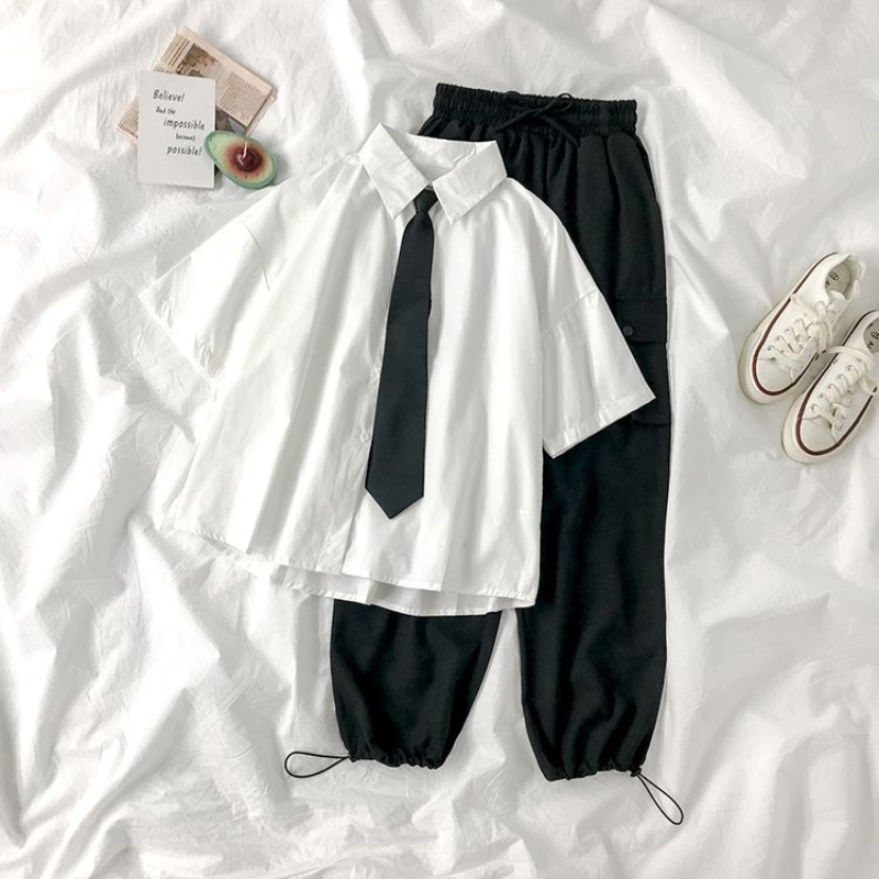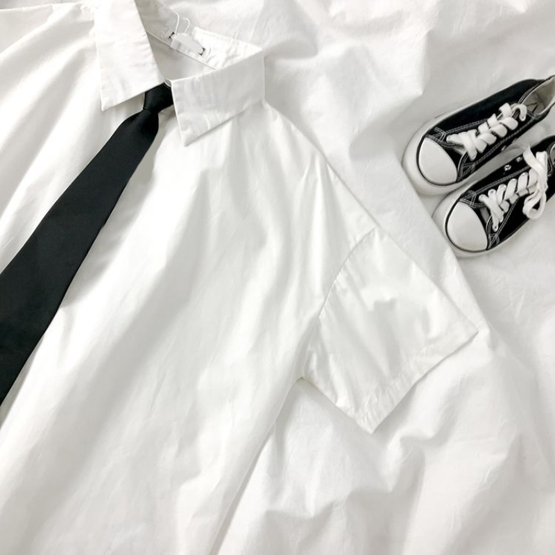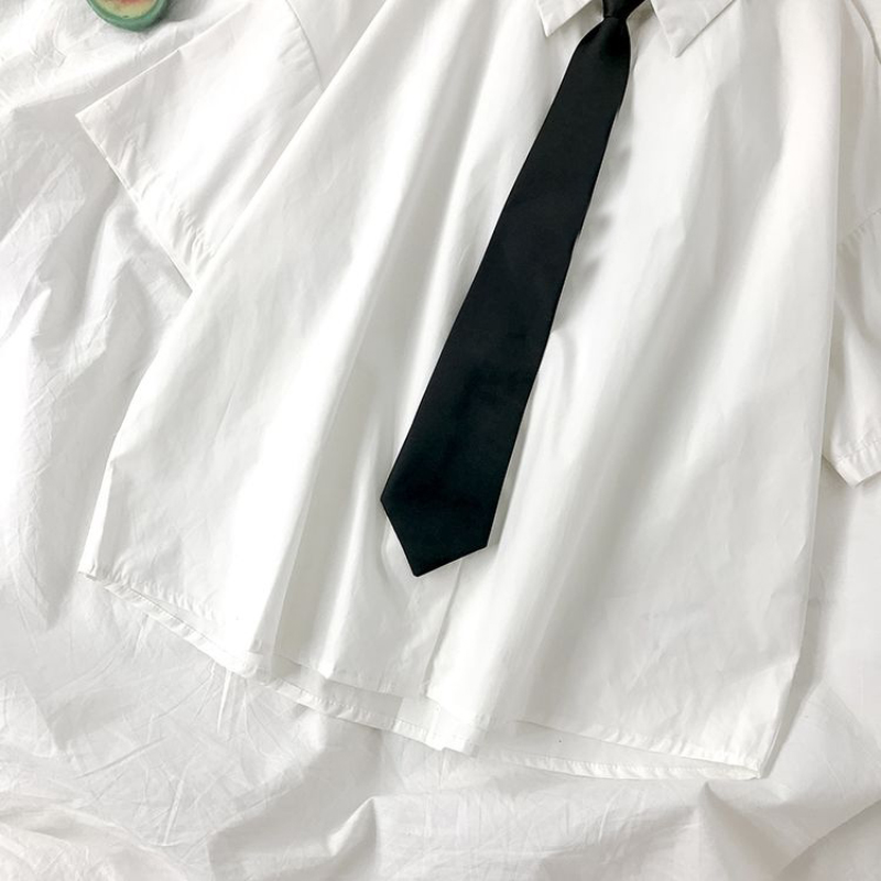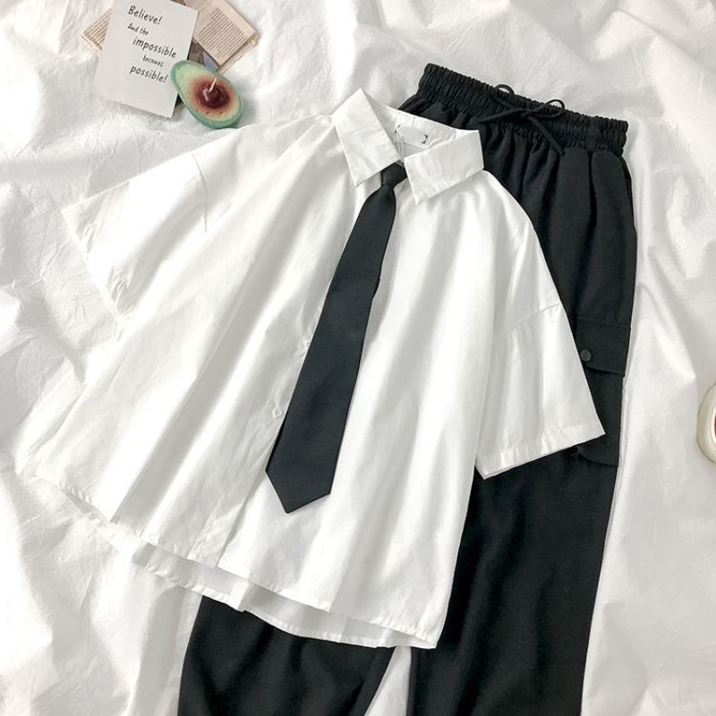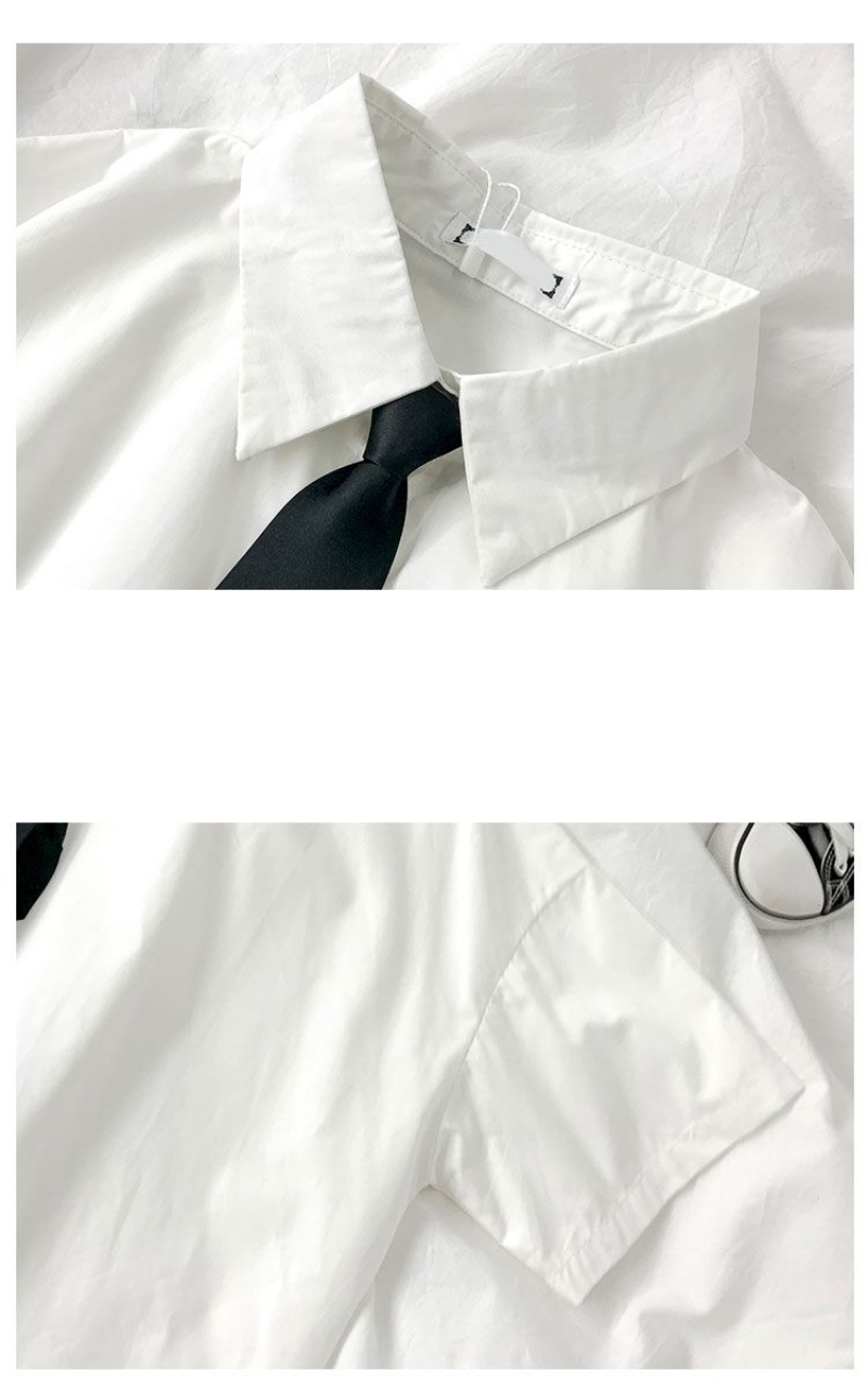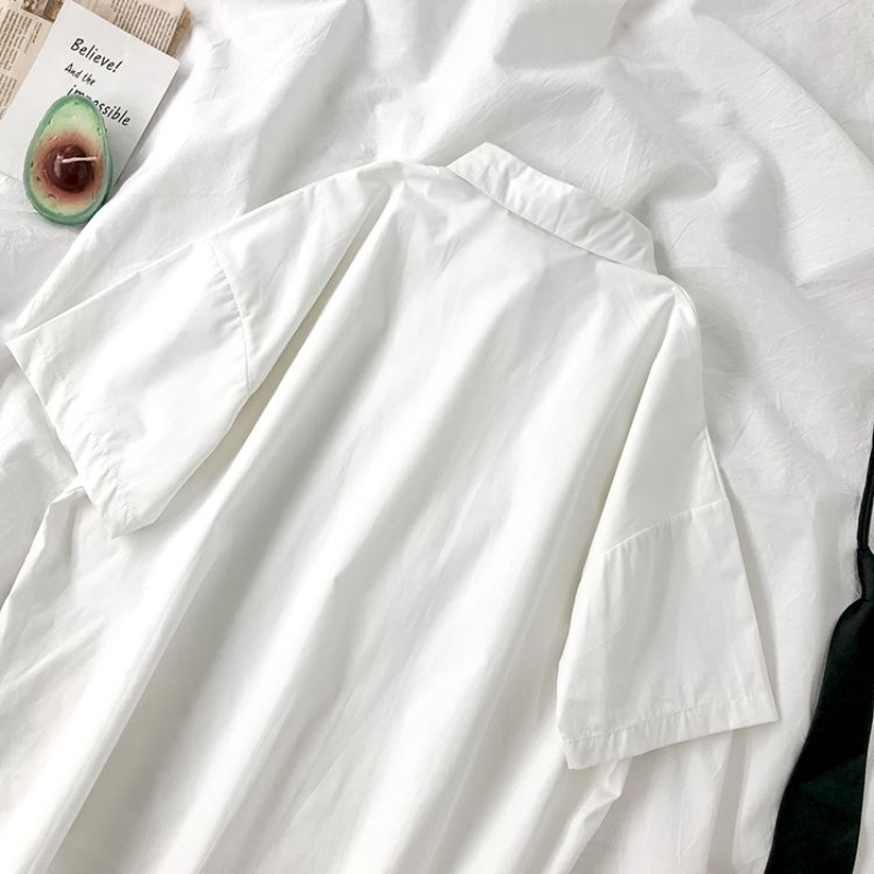 White Shirts Women Fashion Black Tie Japan Style Preppy Students JK Girls Blouse Simple Solid Loose Summer Button Up Tops